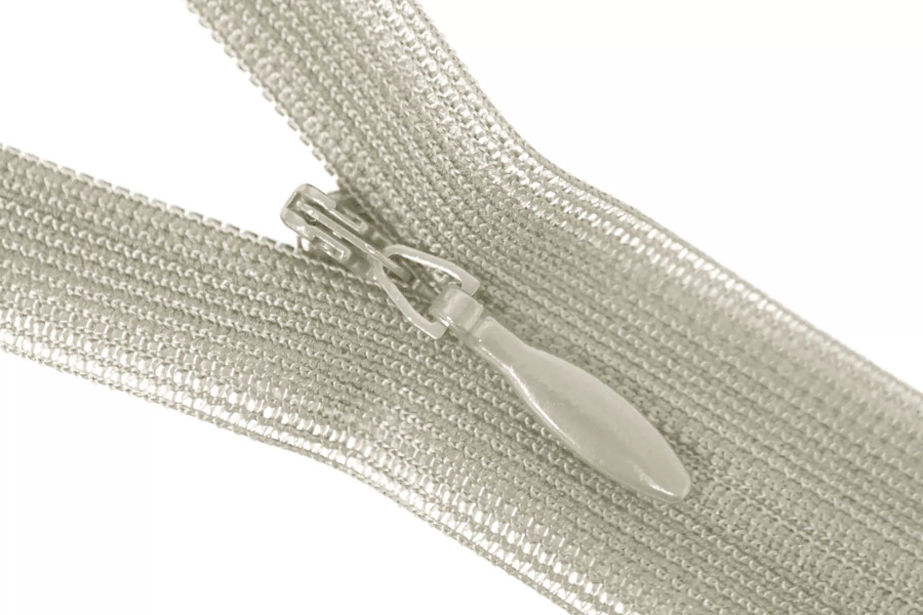 Потайная молния бежево-зеленого цвета , длина 22 см. Слайдер и пуллер - метал. в цвет молнии. Ширина молнии 2.2 см , ширина зубцов 4мм.