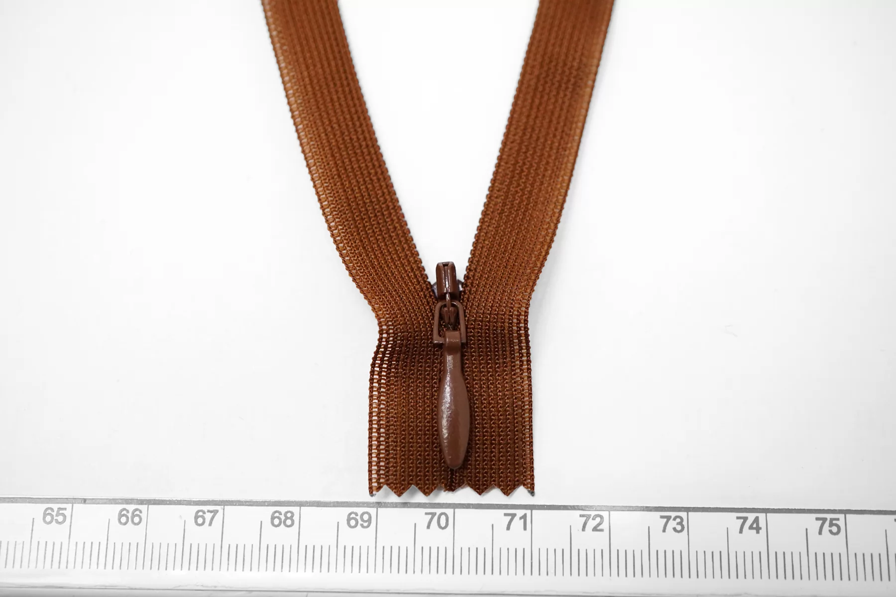 Потайная молния коричневого цвета от YKK, длина 44 см.