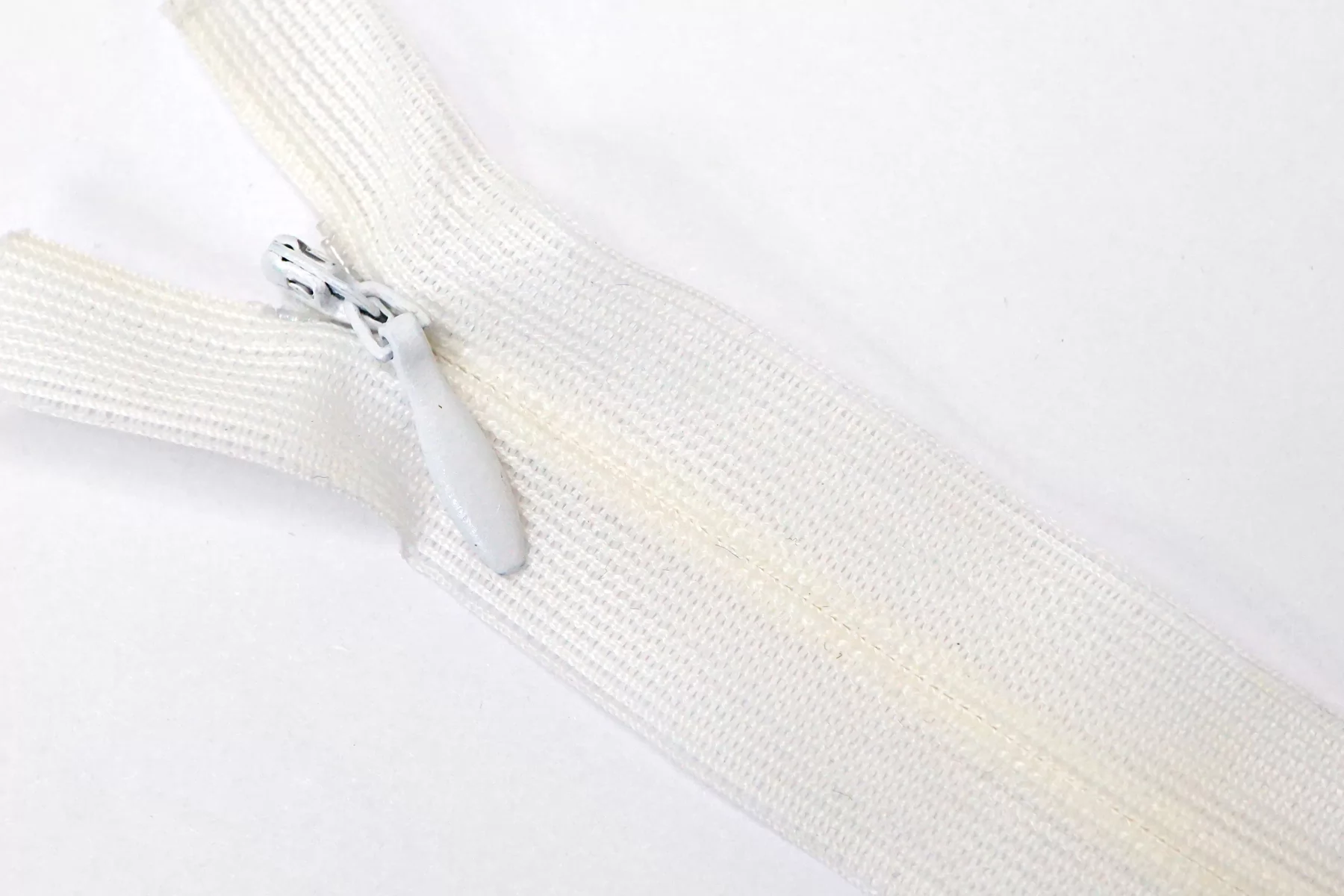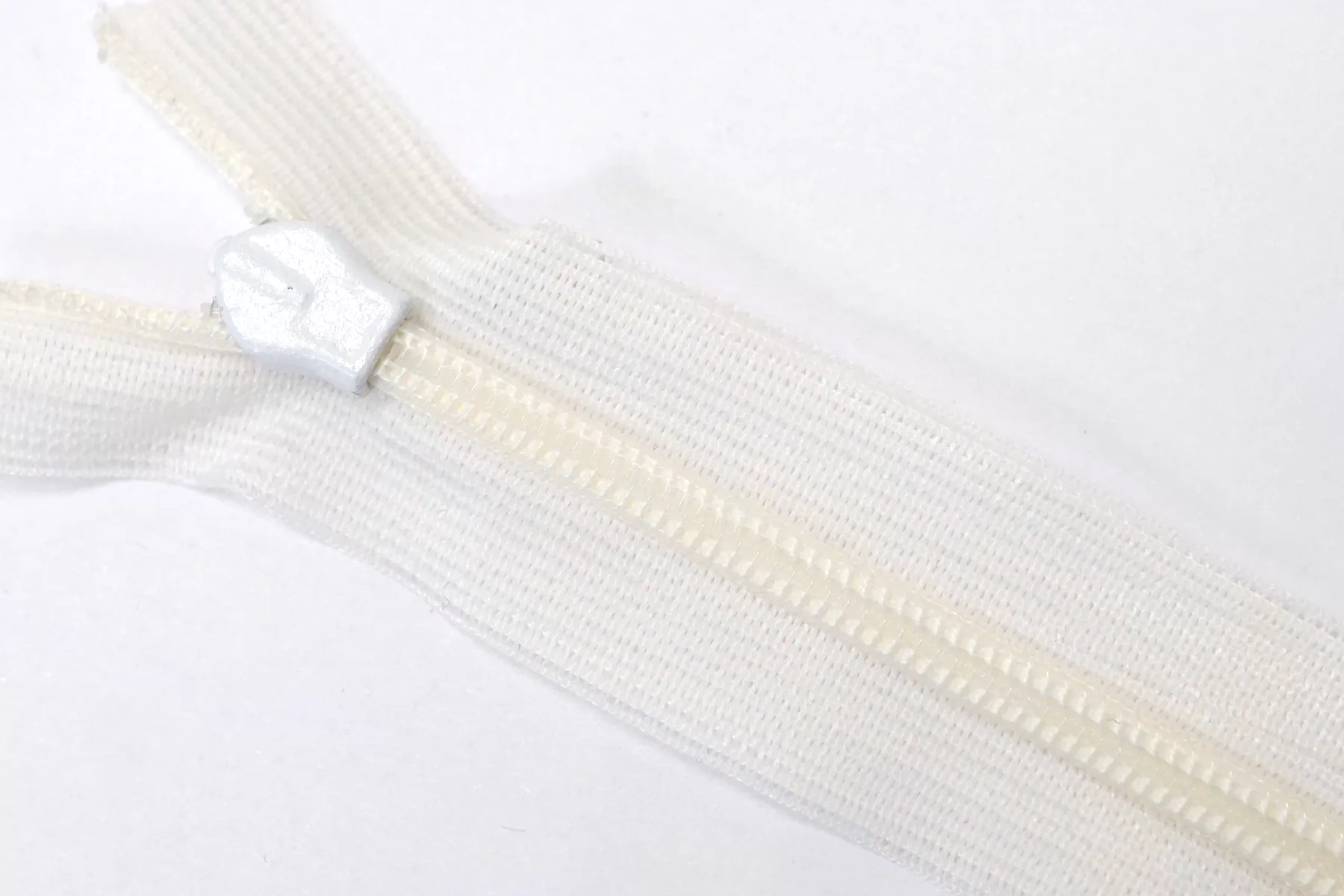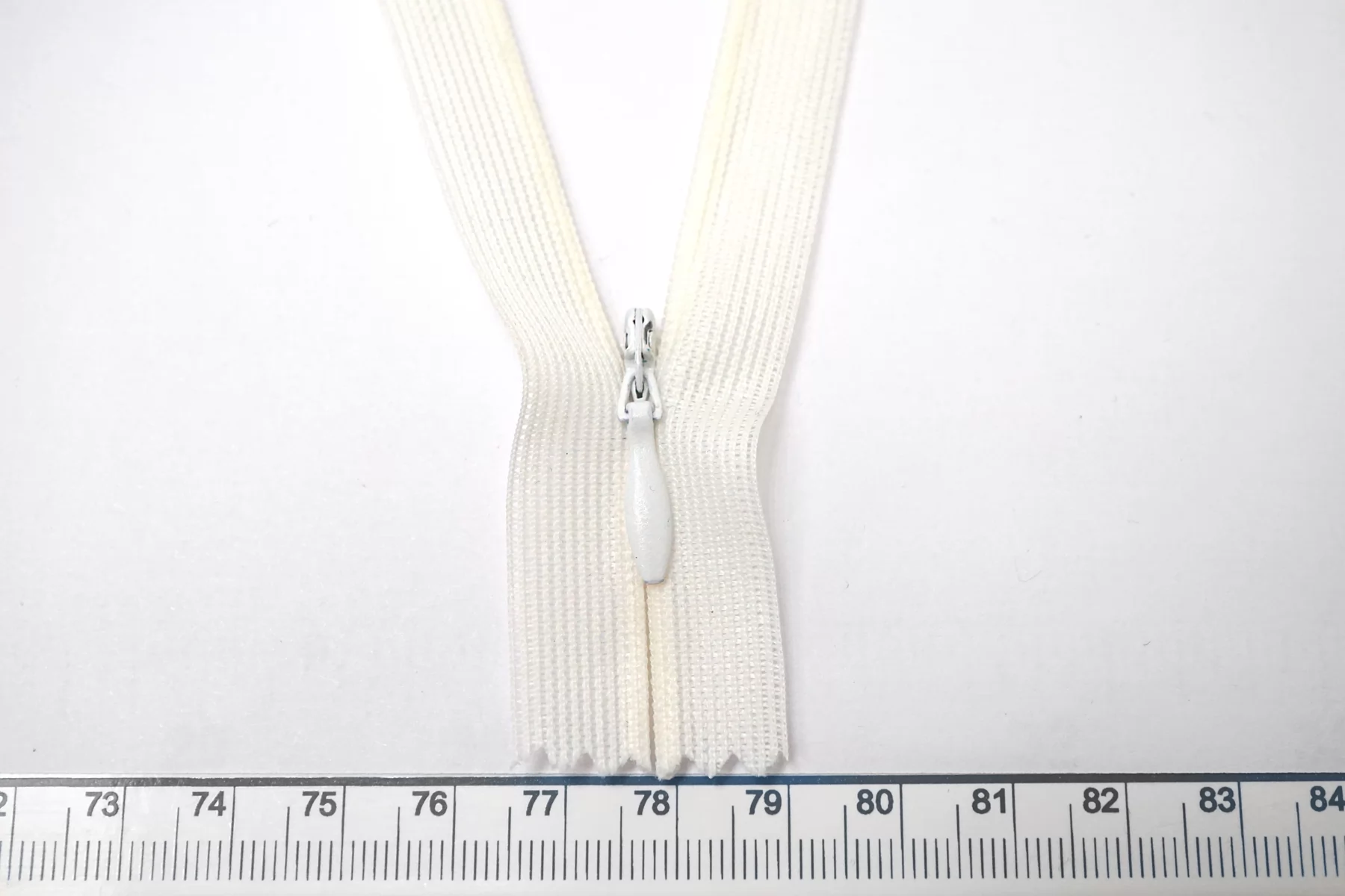 Потайная молния белого цвета с лёгким молочным подтоном, длина 20 см.