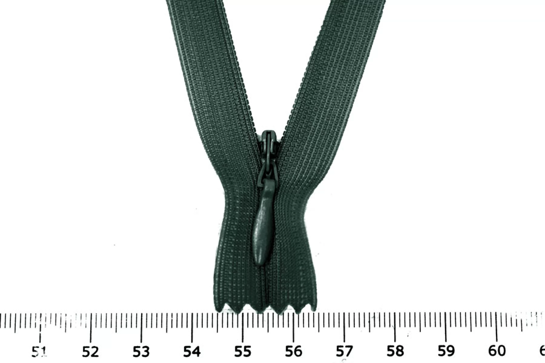 Потайная молния темно-изумрудного оттенка, длина 22 см. Слайдер и пуллер - метал. в цвет молнии. Ширина молнии 2.2 см , ширина зубцов 4мм.