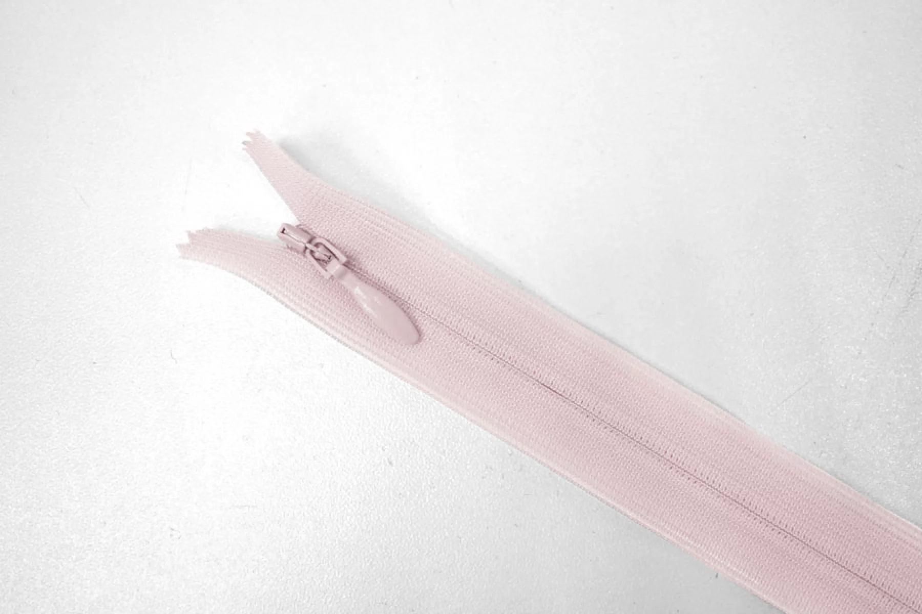 Потайная молния в пыльно-розовом оттенке от бренда YKK , длина 74 см. Неразъемная. Зубцы пластиковые, слайдер и пуллер - металл. Ширина молнии 2,2 см. Ширина зубцов 4 мм.