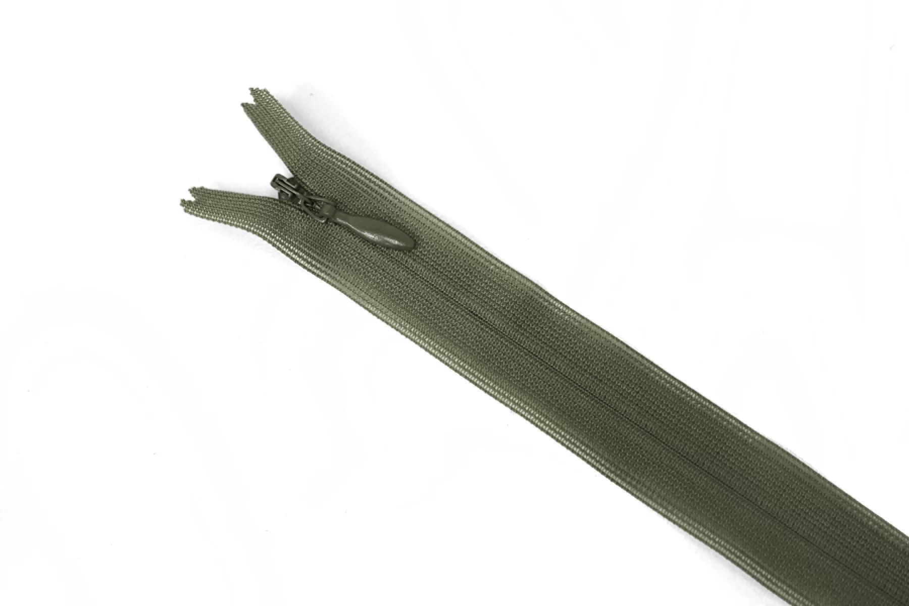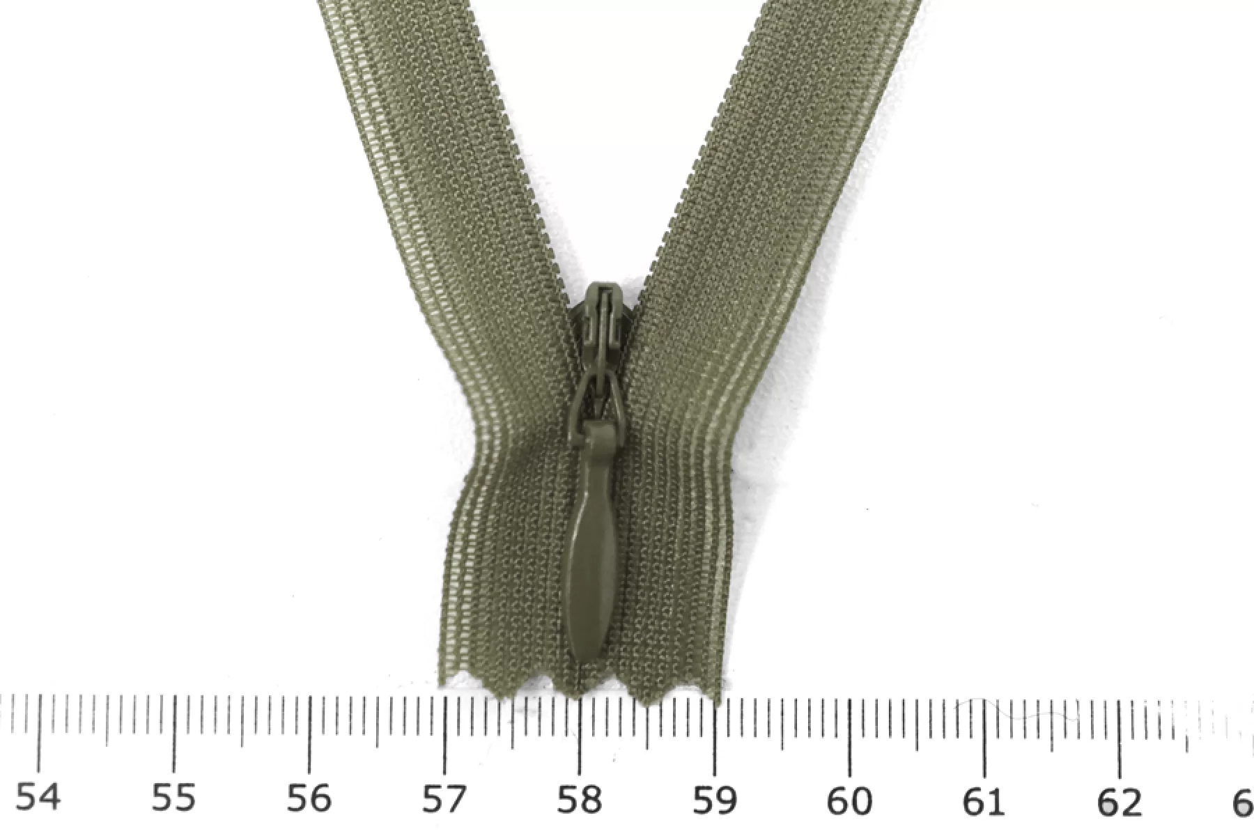 Потайная молния в оттенке пыльный хаки от бренда YKK , длина 21 см. Неразъемная. Зубцы пластиковые, слайдер и пуллер - металл. в цвет молнии. Ширина молнии 2 см. Ширина зубцов 4 мм.