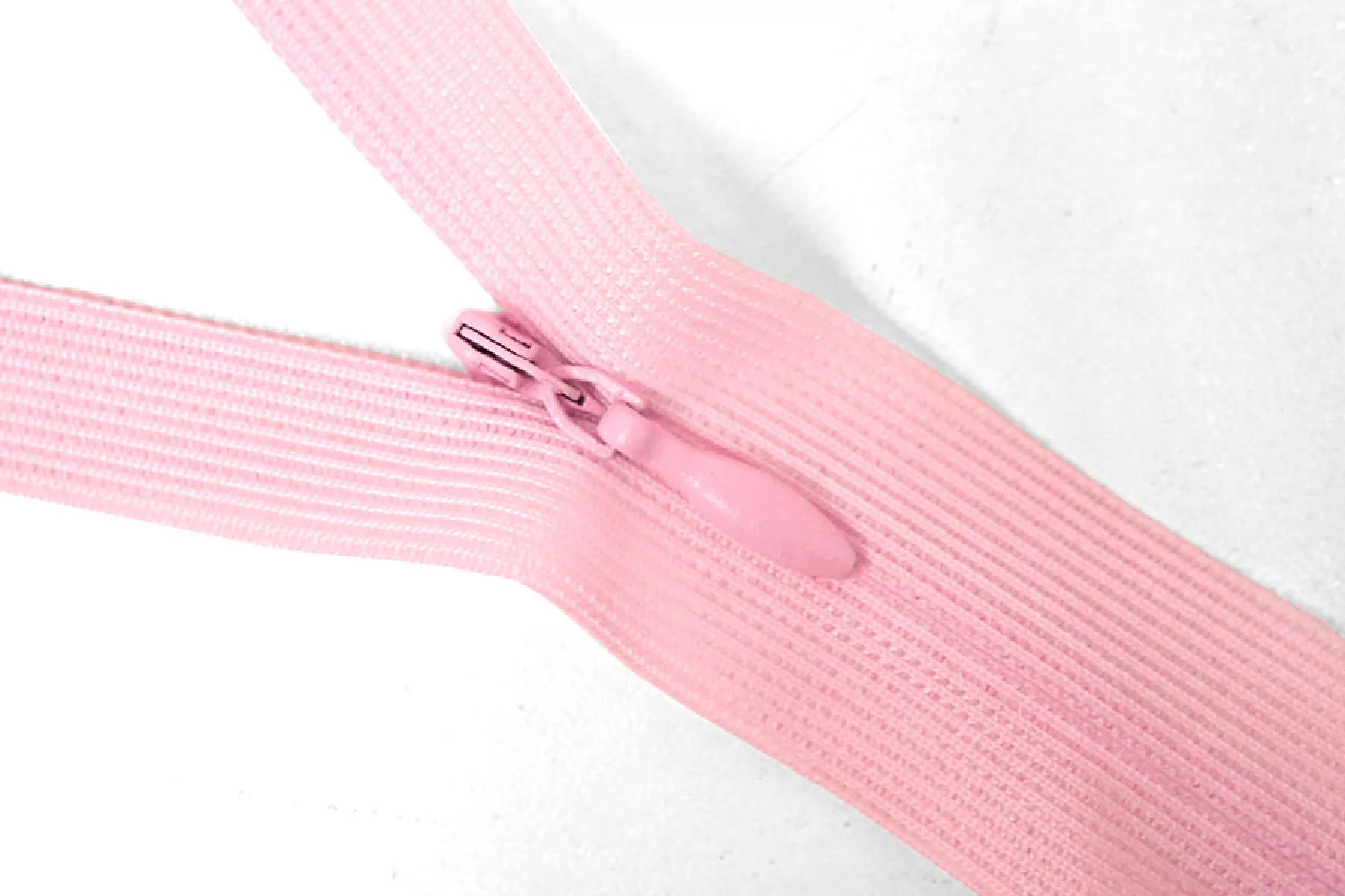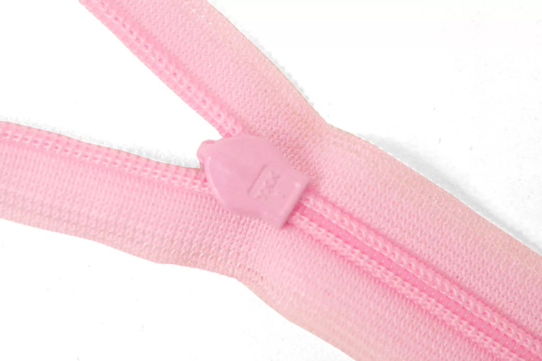 Потайная молния в розовом оттенке от бренда YKK , длина 16 см. Неразъемная. Зубцы пластиковые, слайдер и пуллер - металл. Ширина молнии 2,2 см. Ширина зубцов 4 мм.
