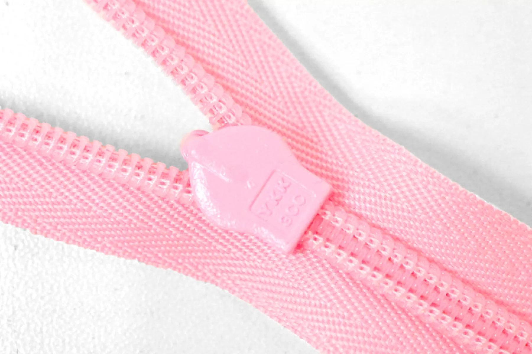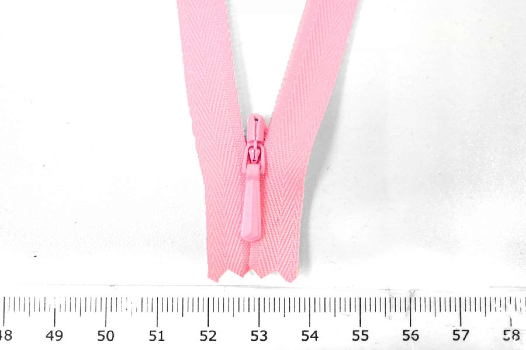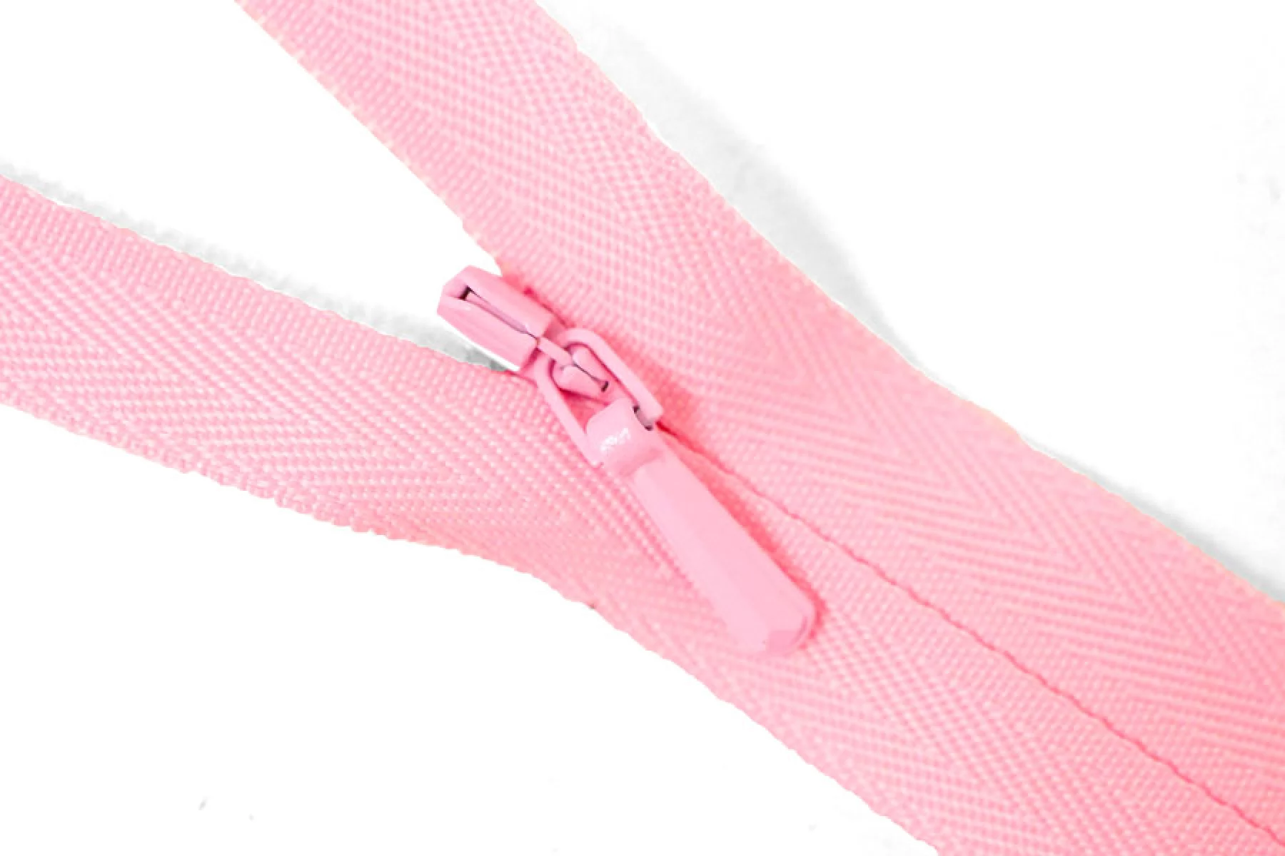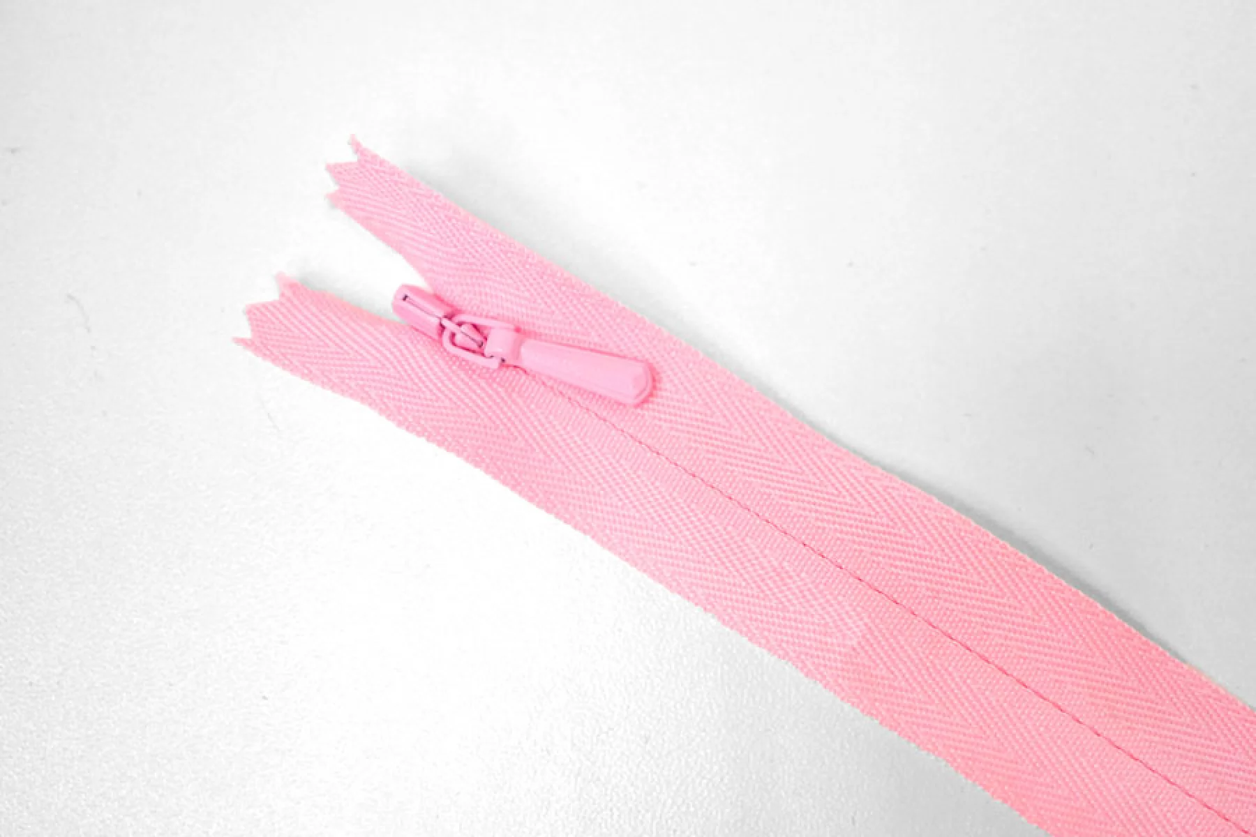Потайная молния в розовом оттенке от бренда YKK , длина 18 см. Неразъемная. Зубцы пластиковые, слайдер и пуллер - металл. Ширина молнии 2,2 см. Ширина зубцов 4 мм.