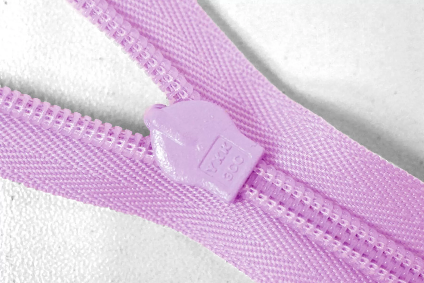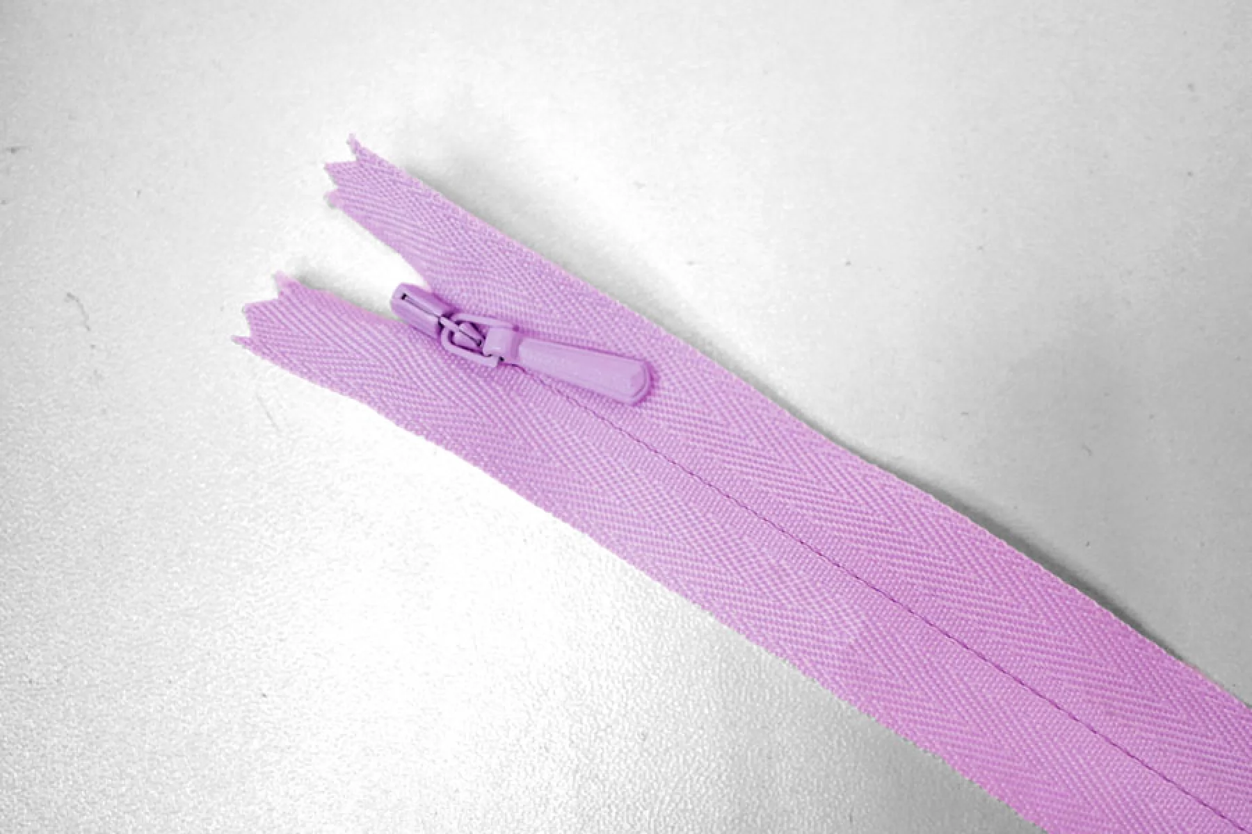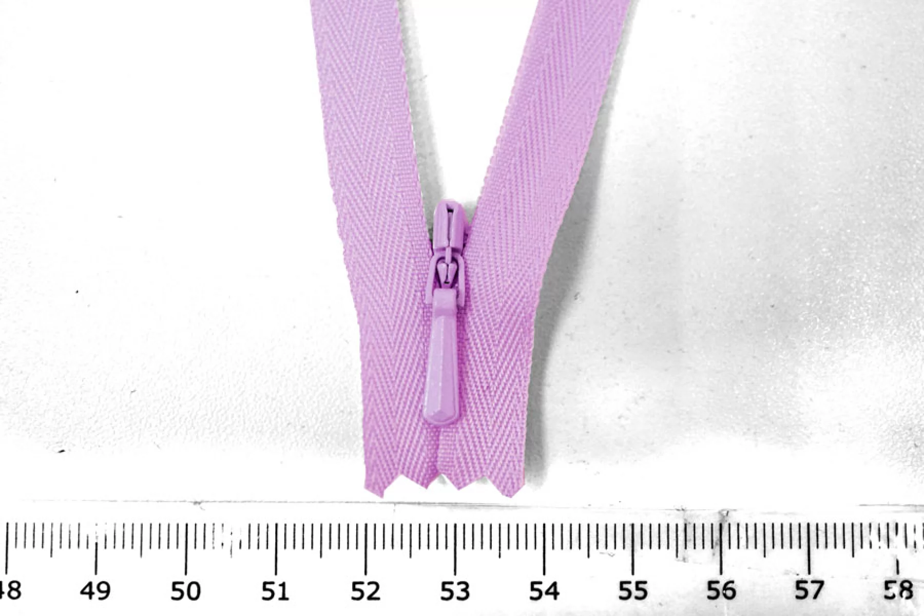 Потайная молния в розовато-сиреневатом оттенке от бренда YKK , длина 74 см. Неразъемная. Зубцы пластиковые, слайдер и пуллер - металл. Ширина молнии 2,2 см. Ширина зубцов 4 мм.