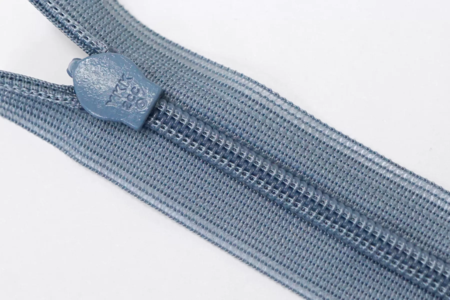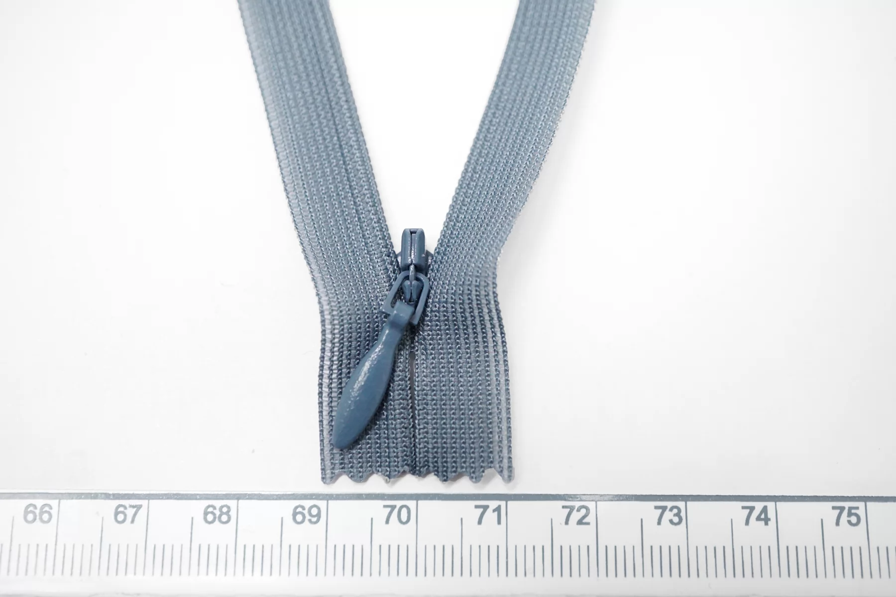 Потайная молния серого цвета (с голубоватым подтоном) от YKK, длина 44 см.