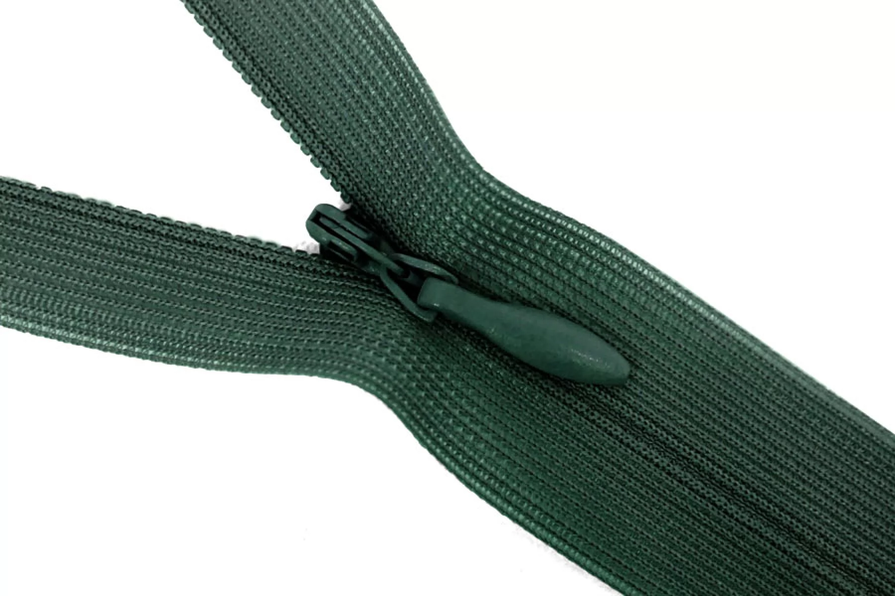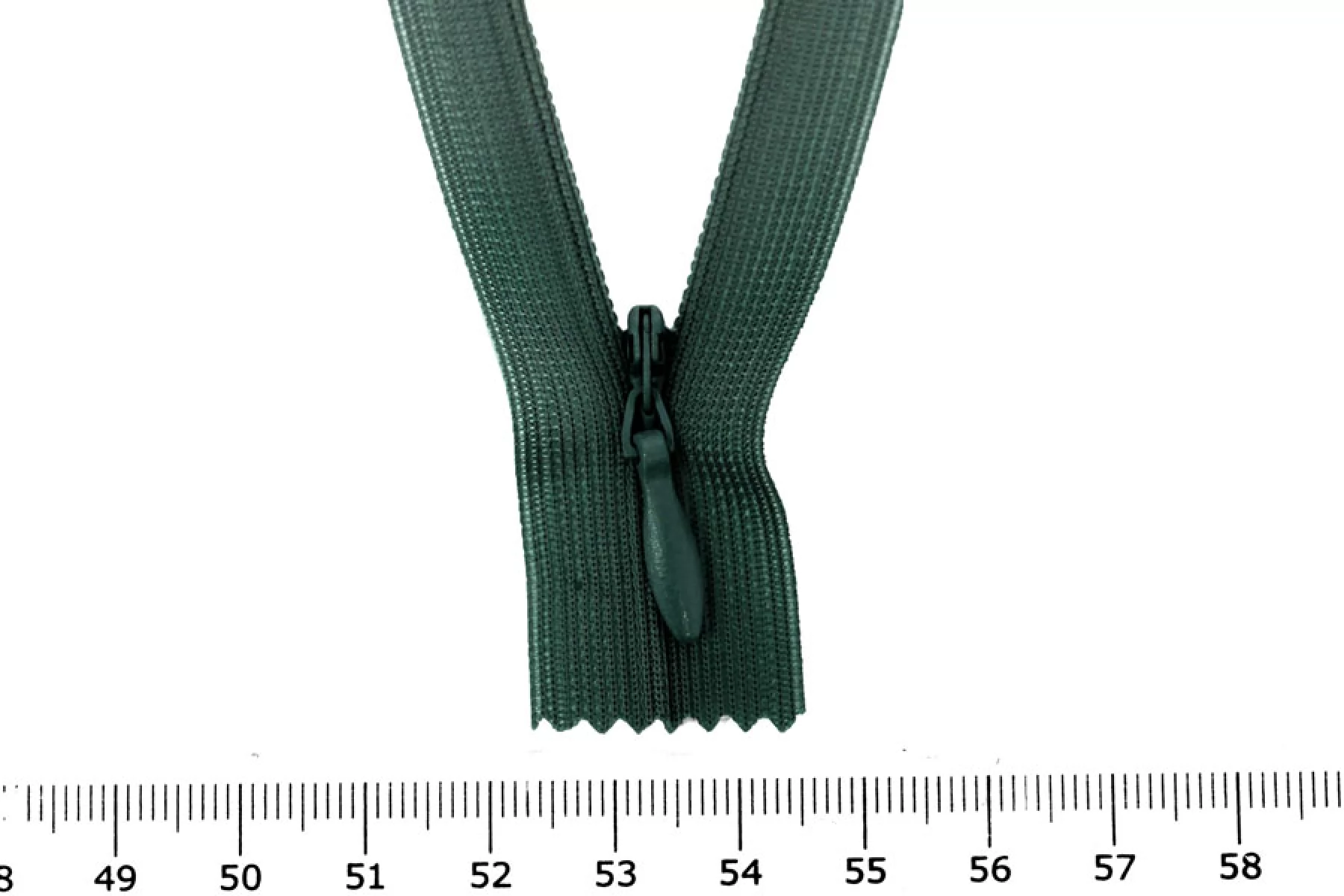 Потайная молния темно-зеленого цвета YKK , длина 22 см. Слайдер и пуллер - метал. в цвет молнии. Ширина молнии 2.2 см , ширина зубцов 4мм.