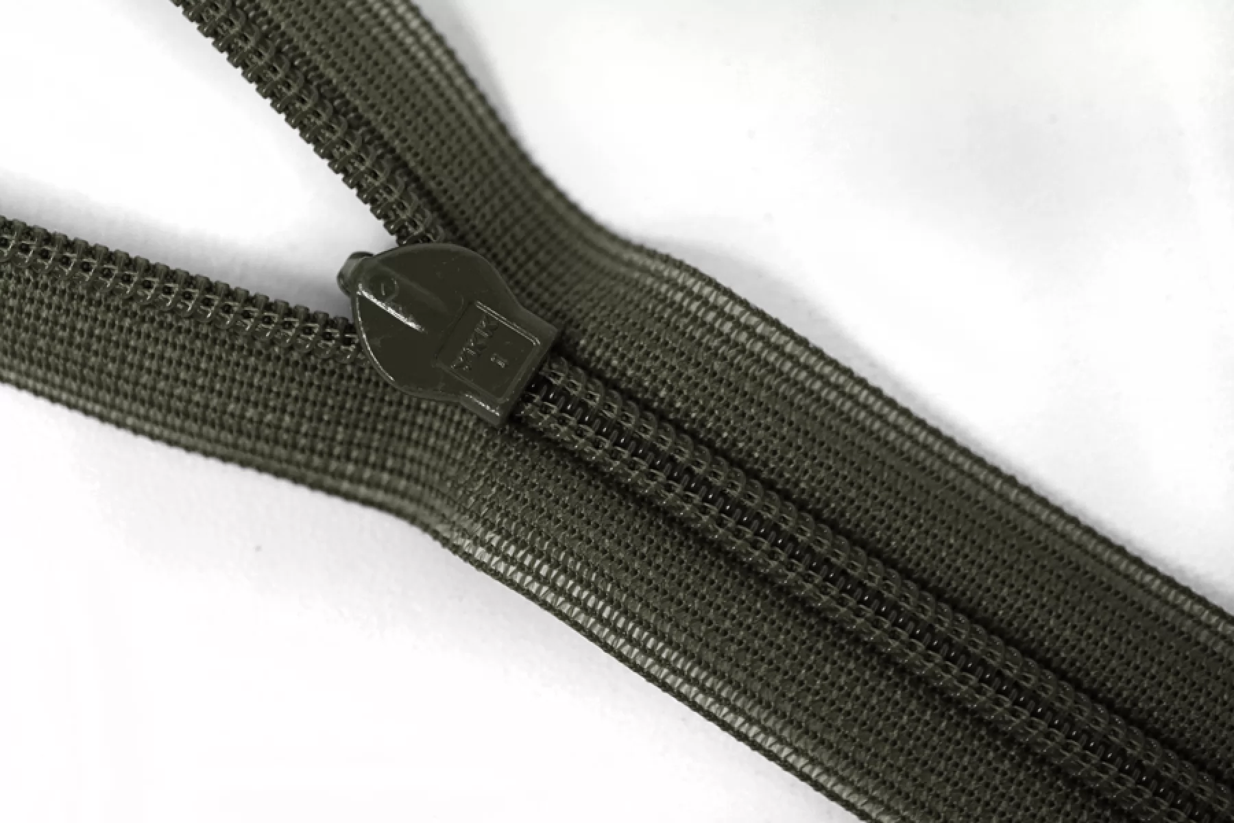 Потайная молния оттенка темно-зеленого хаки YKK , длина 30 см. Слайдер и пуллер - метал. в цвет молнии. Ширина молнии 2.2 см , ширина зубцов 4мм.