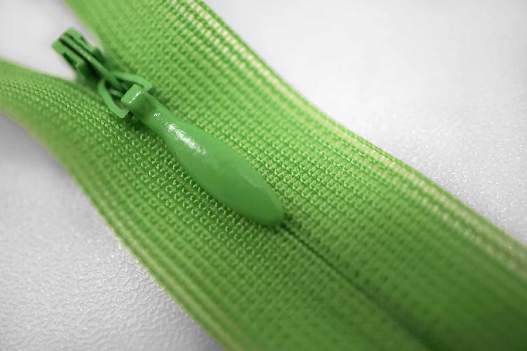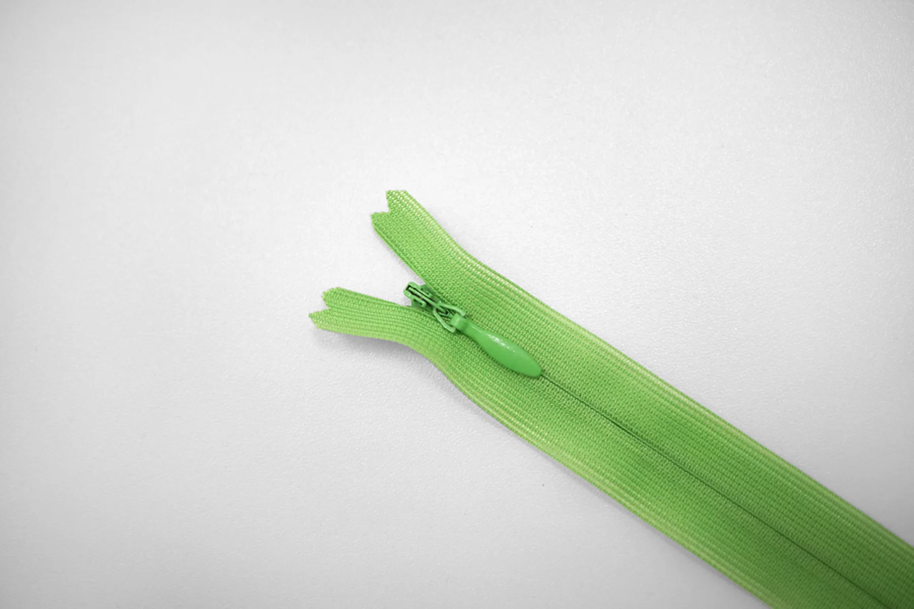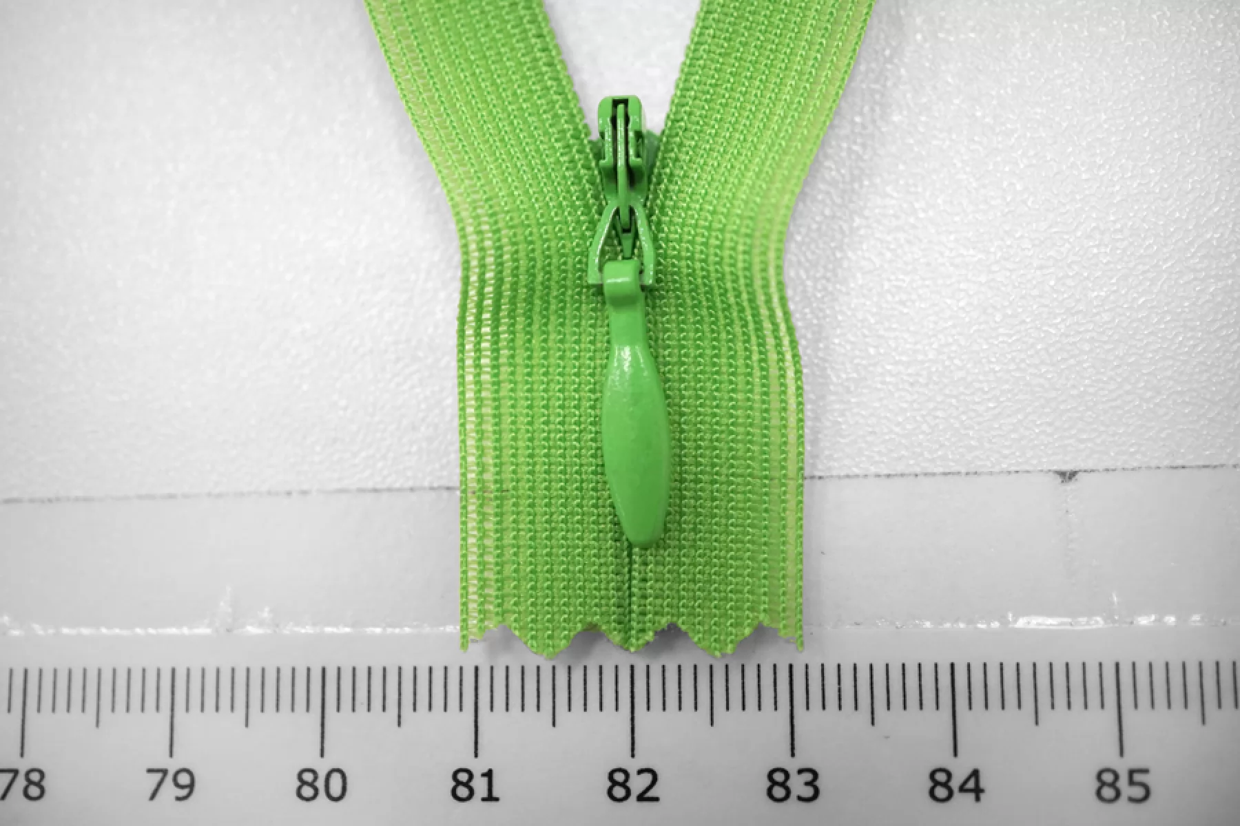 Потайная молния зеленого цвета от YKK, длина 14 см.