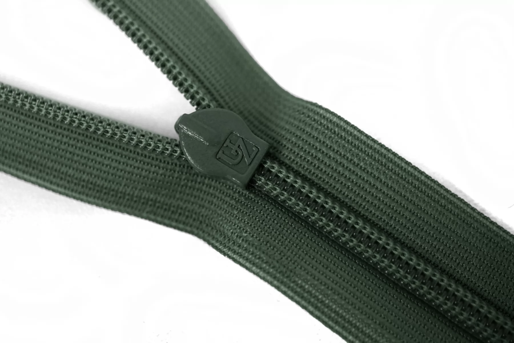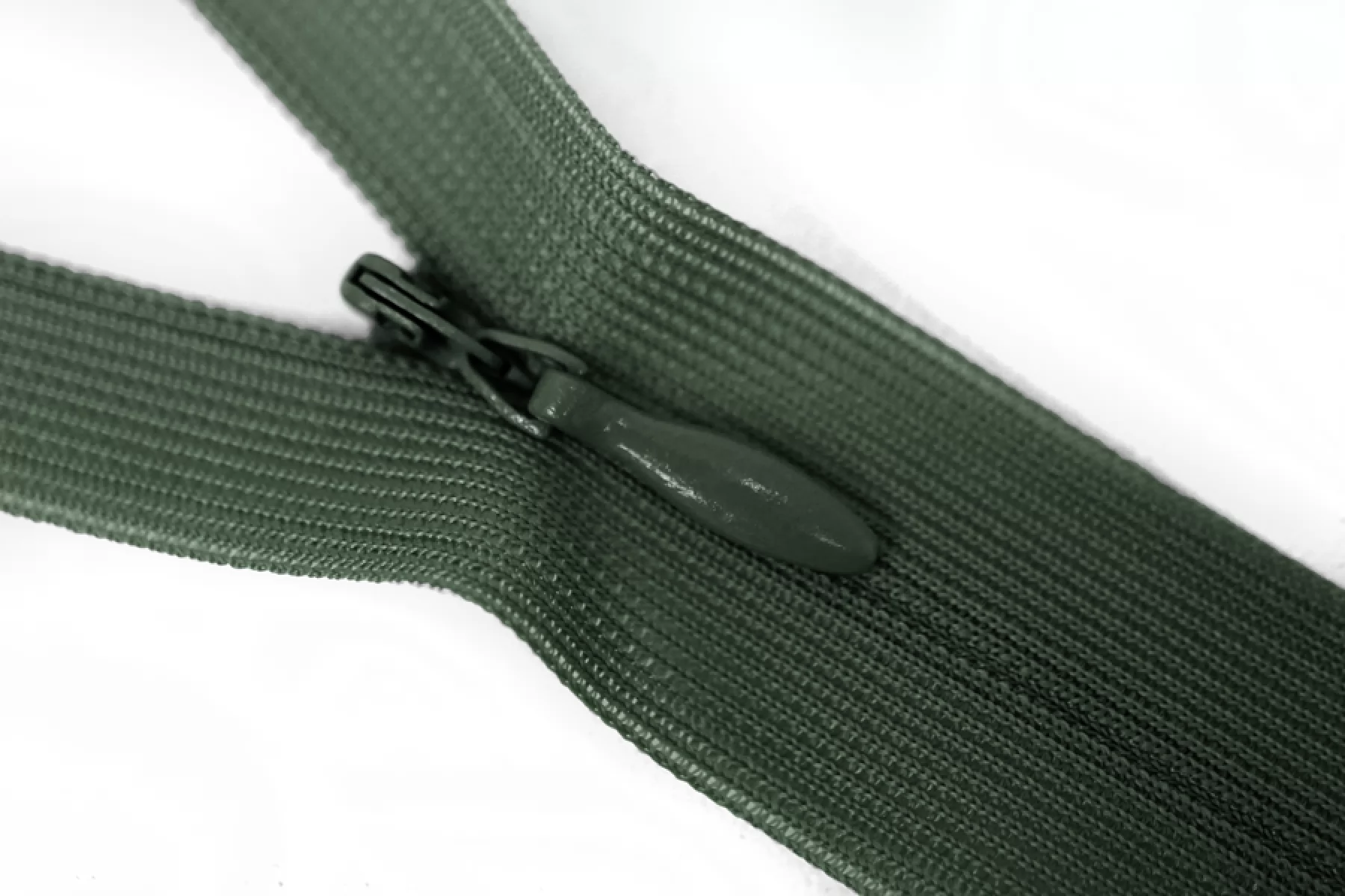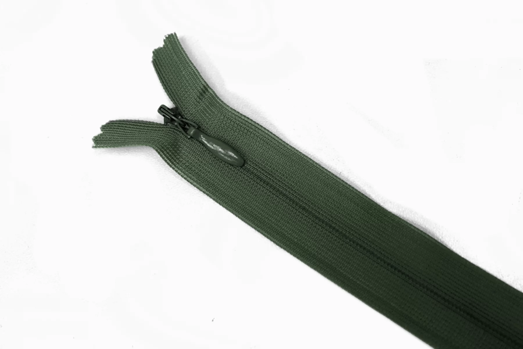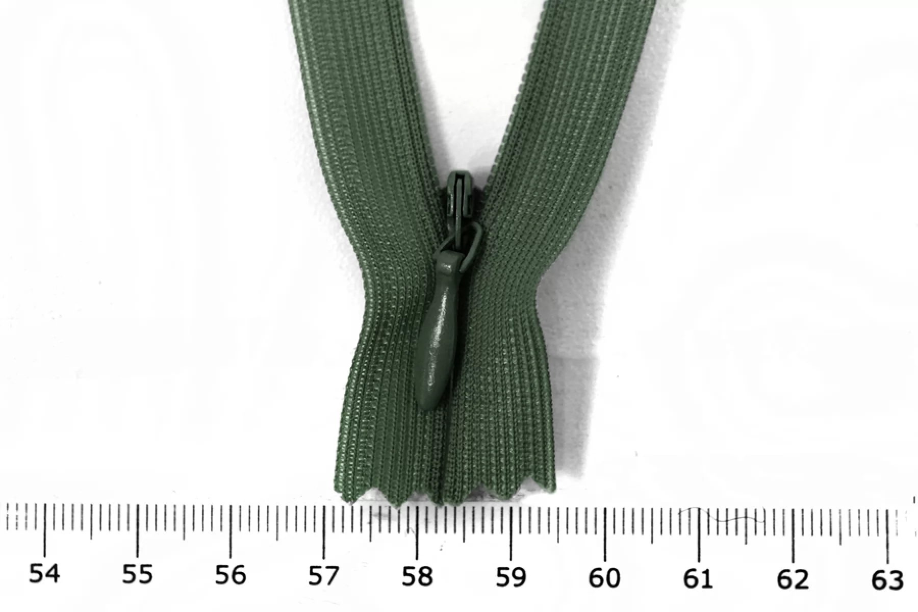 Потайная молния зеленого цвета , длина 20 см. Слайдер и пуллер - метал. в цвет молнии. Ширина молнии 2.2 см , ширина зубцов 4мм.