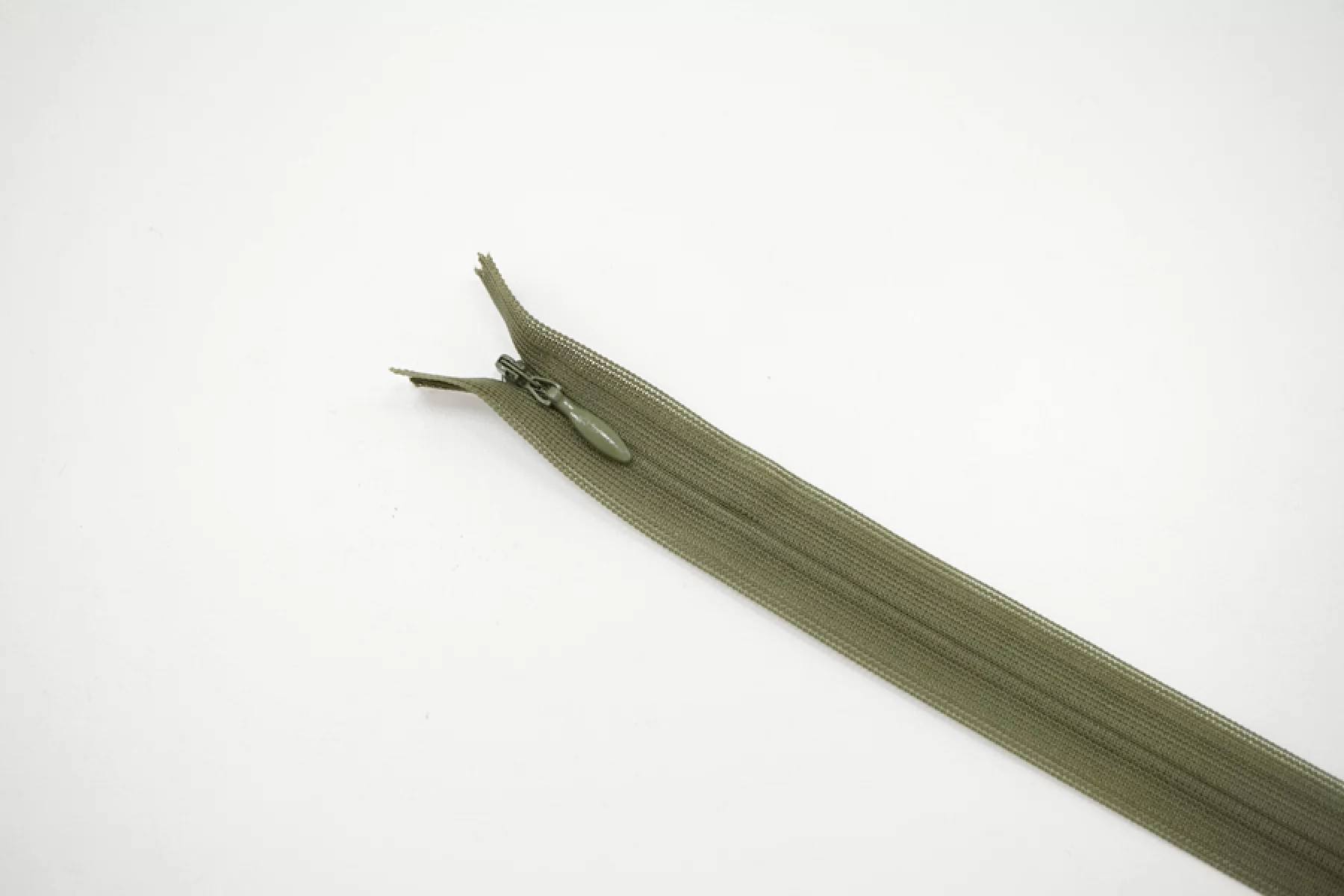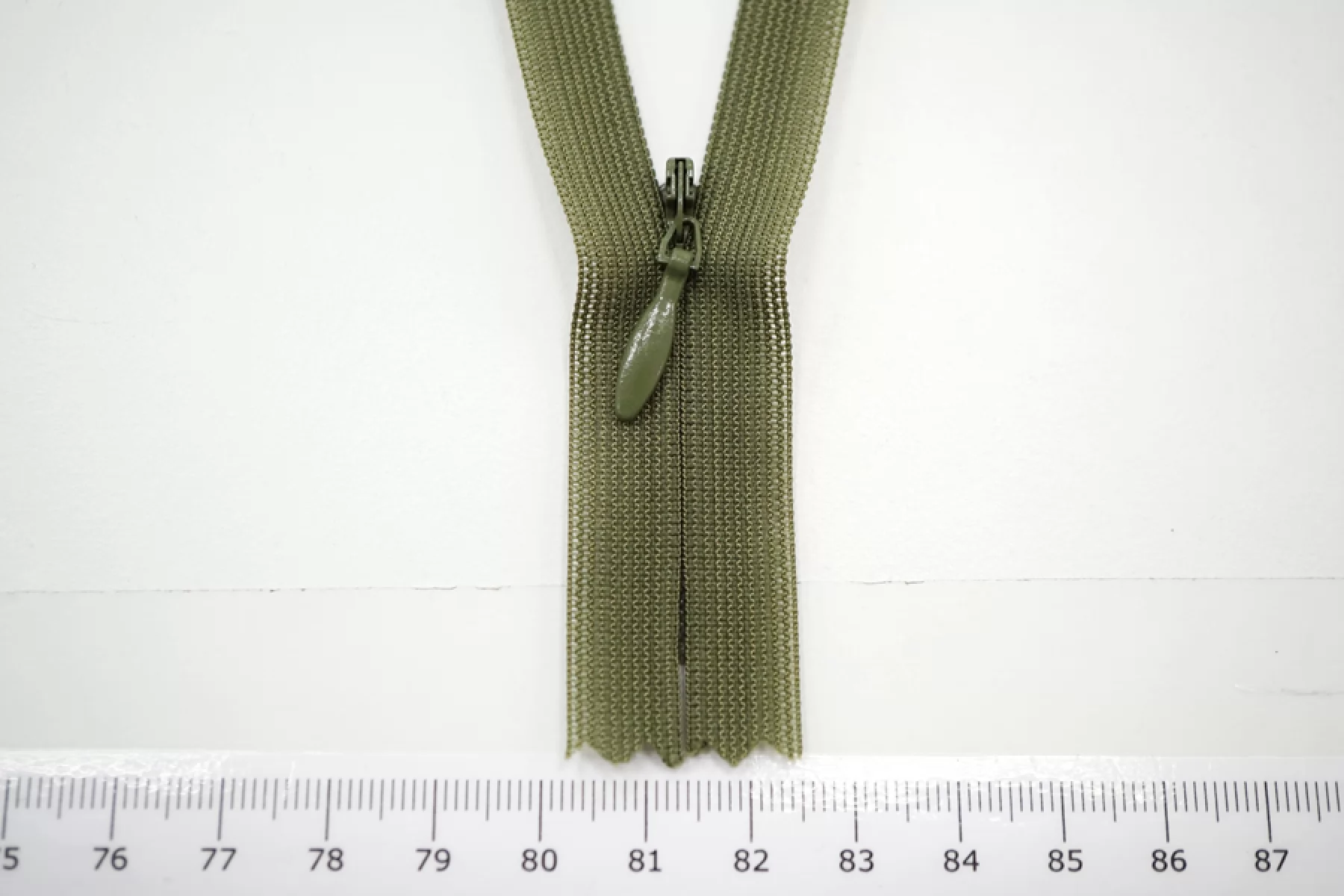 Потайная молния зеленого цвета от YKK, длина 39 см.