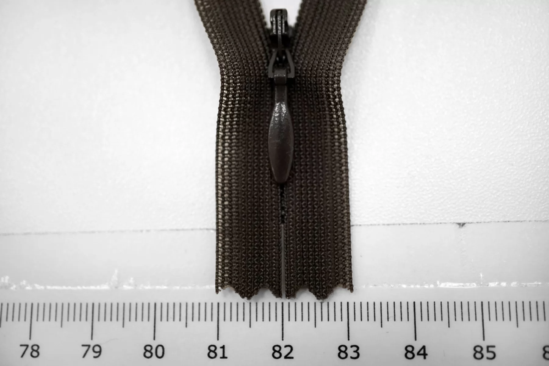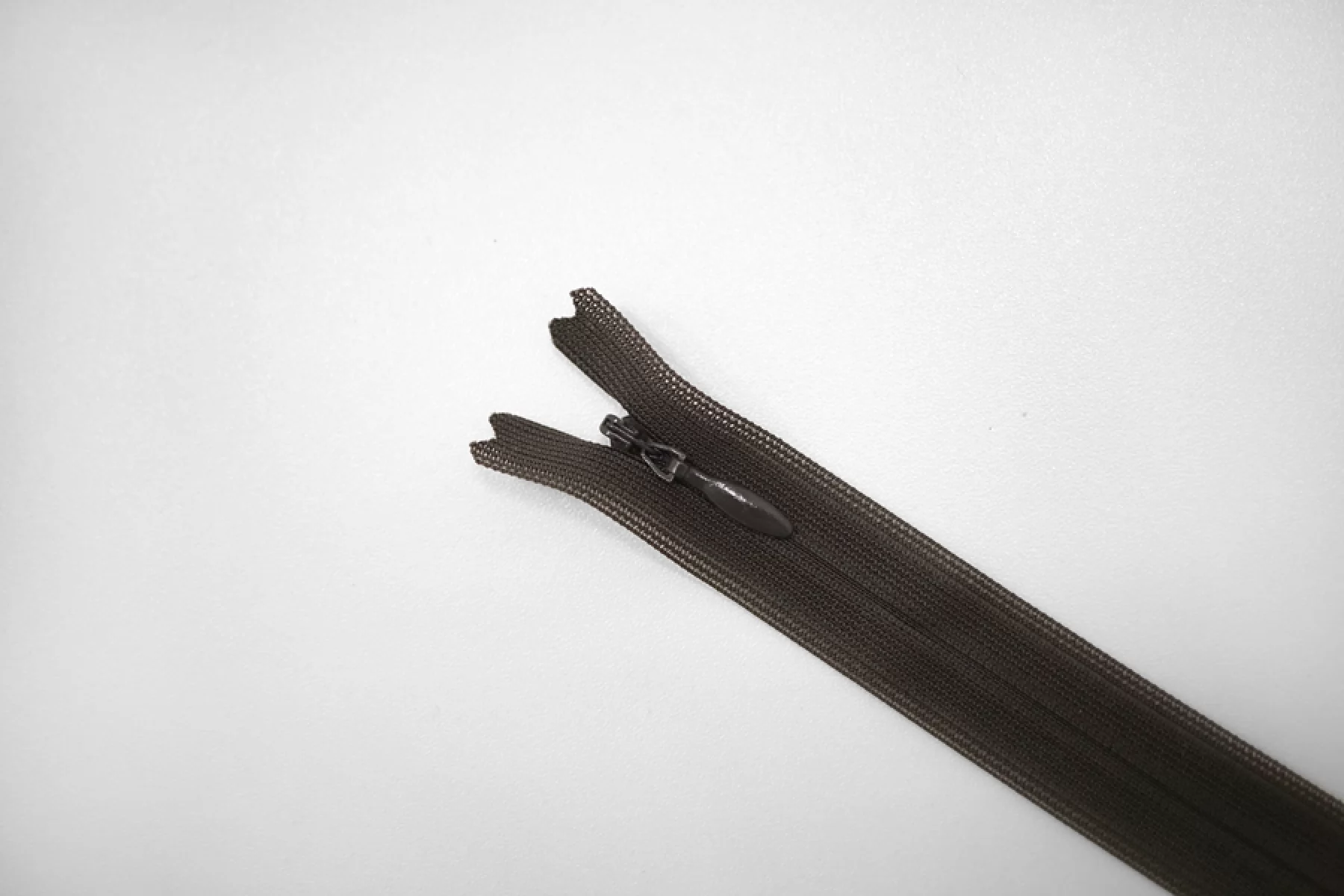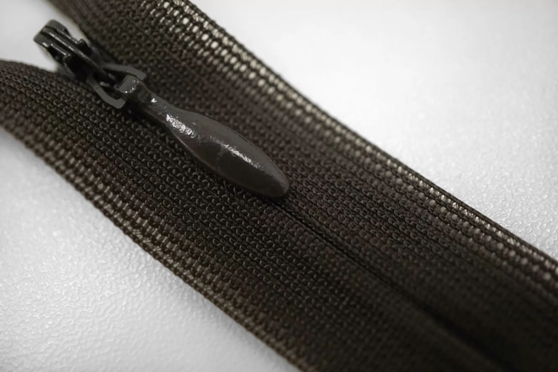 Потайная молния темного, зеленовато-коричневого цвета от YKK, длина 12 см.