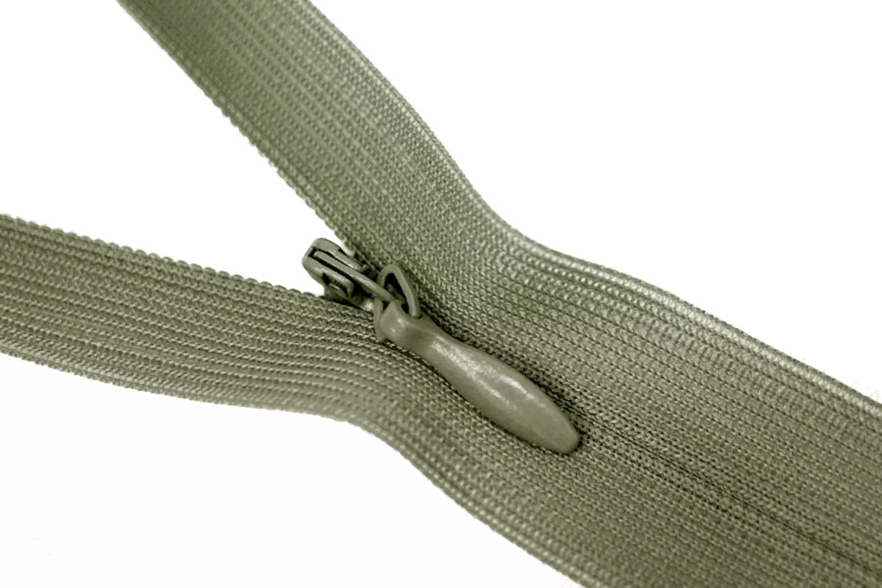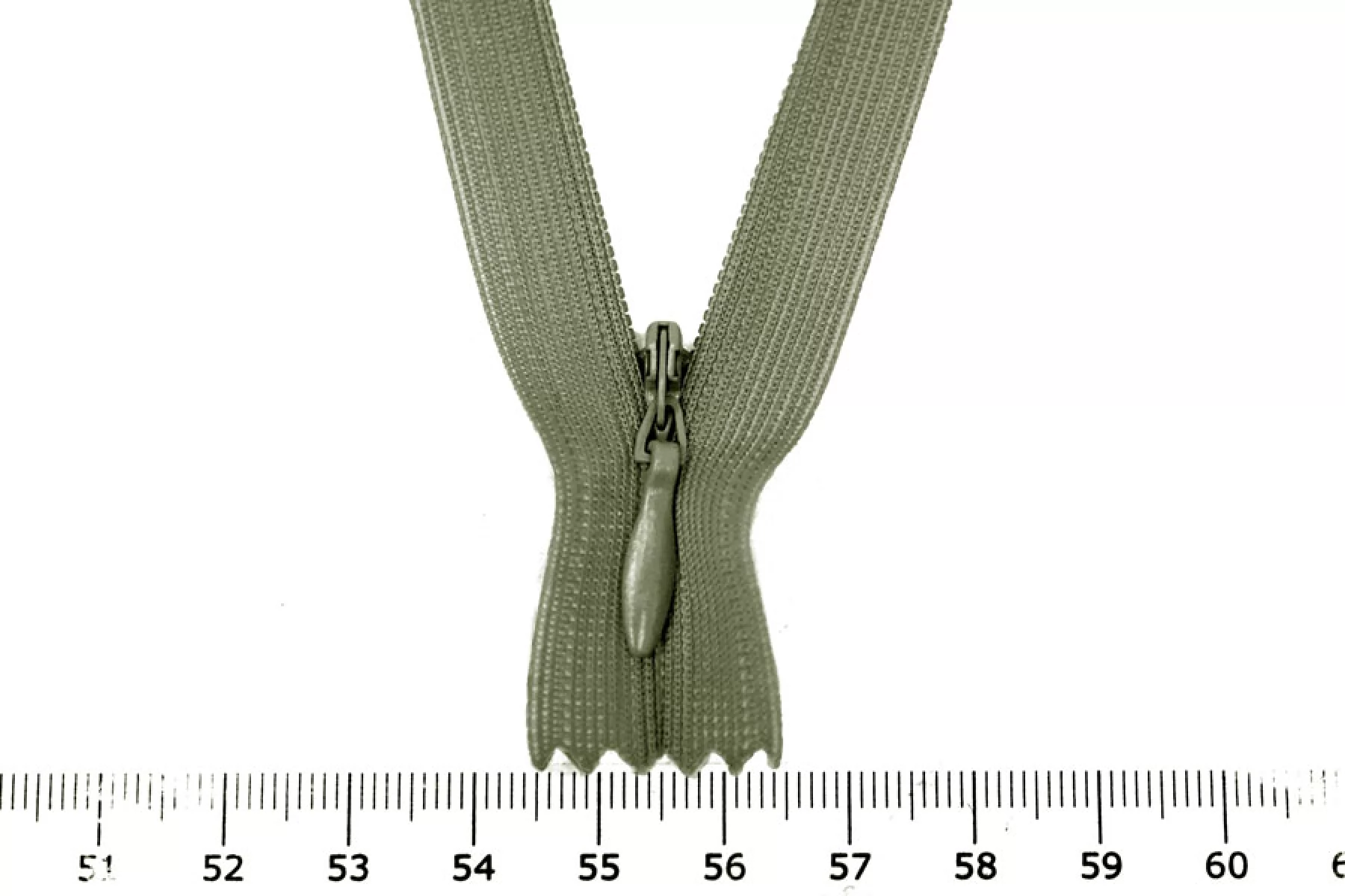 Потайная молния зеленого цвета , длина 20 см. Слайдер и пуллер - метал. в цвет молнии. Ширина молнии 2.2 см , ширина зубцов 4мм.