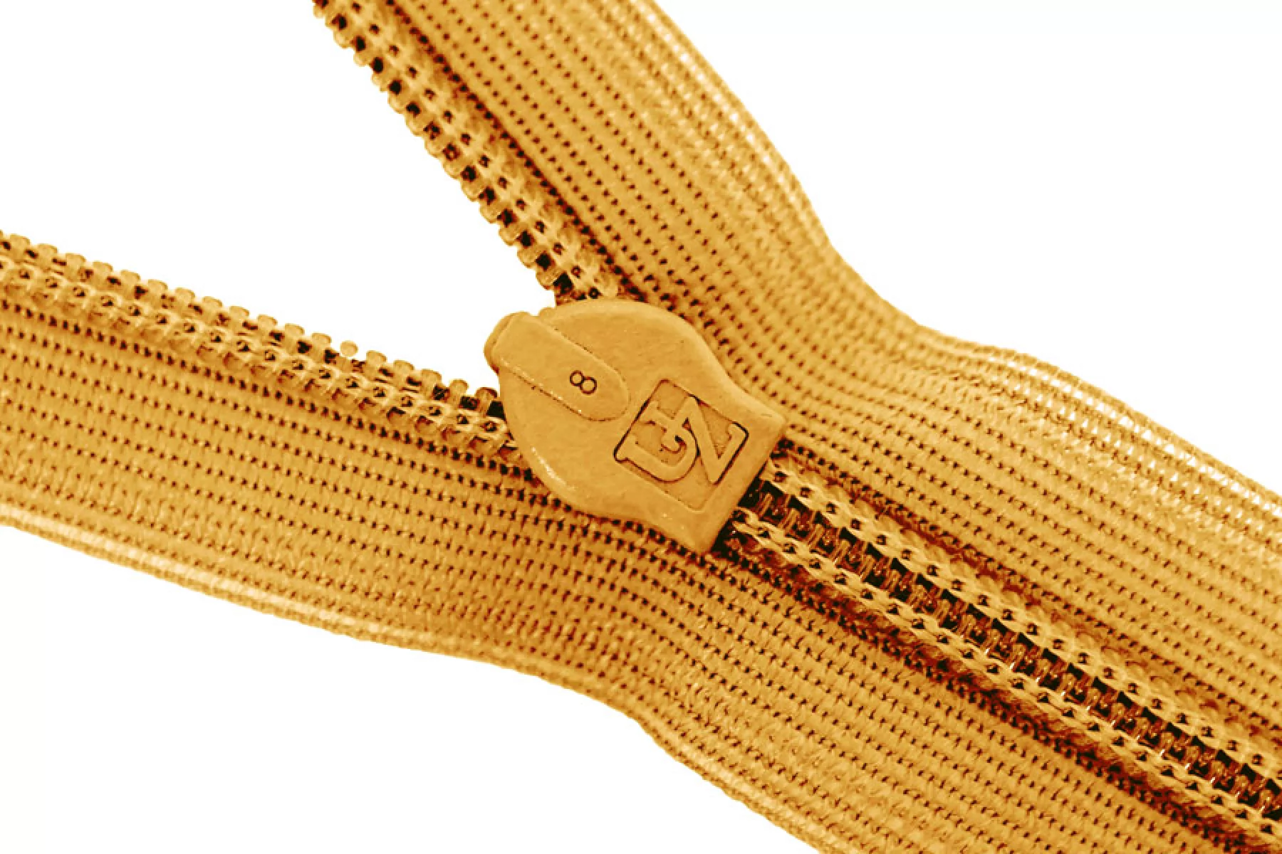 Потайная молния желтого оттенка , длина 25 см. Неразъемная. Зубцы пластиковые, слайдер и пуллер - металл. Ширина молнии 2 см. Ширина зубцов 4 мм.