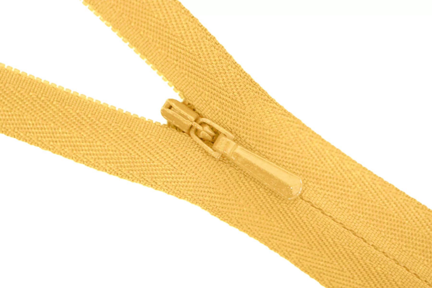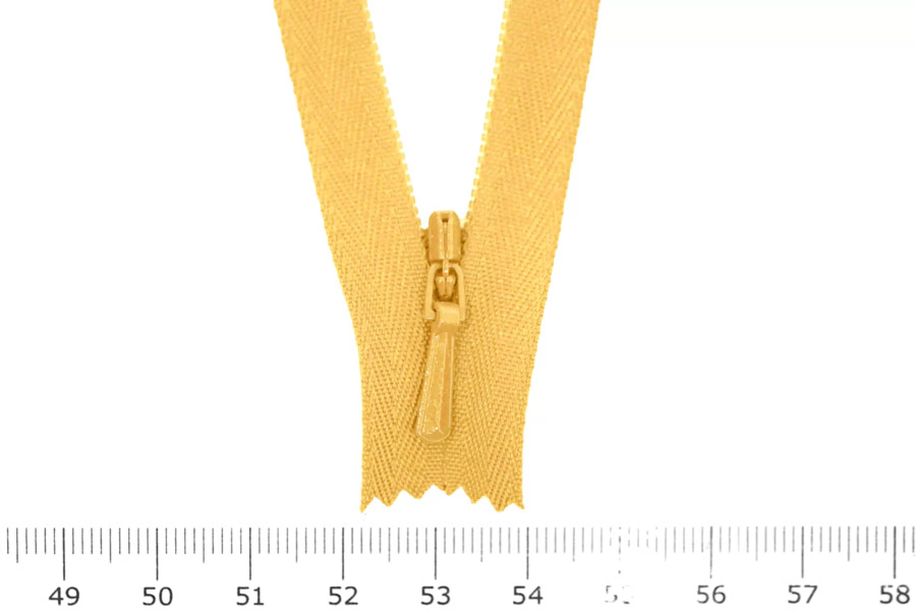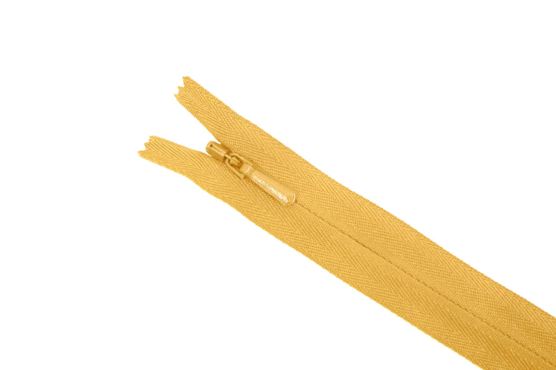 Потайная молния желтого оттенка от бренда YKK , длина 30 см. Неразъемная. Зубцы пластиковые, слайдер и пуллер - металл. Ширина молнии 2 см. Ширина зубцов 4 мм.
