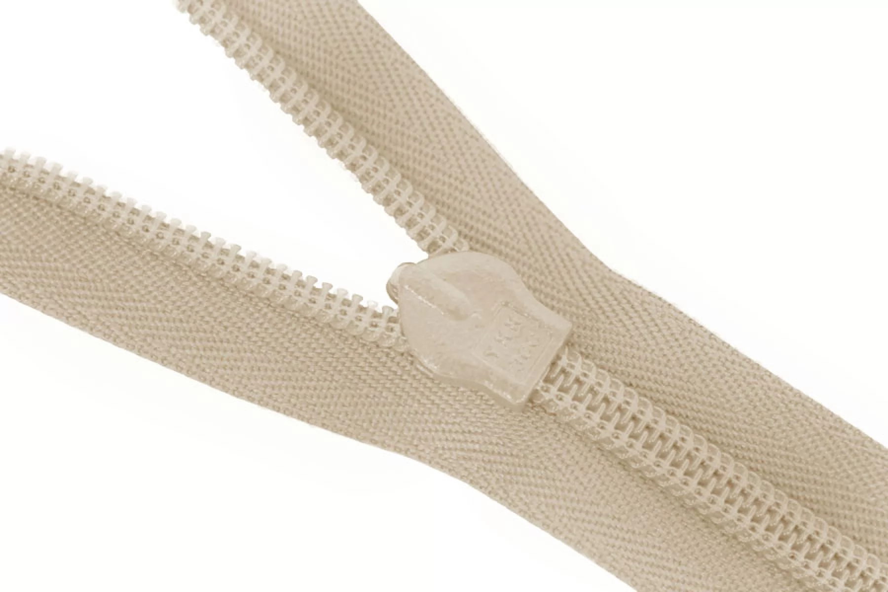 Потайная молния бежевого цвета, длина 22 см. Неразъемная. Зубцы пластиковые, слайдер и пуллер - металл.