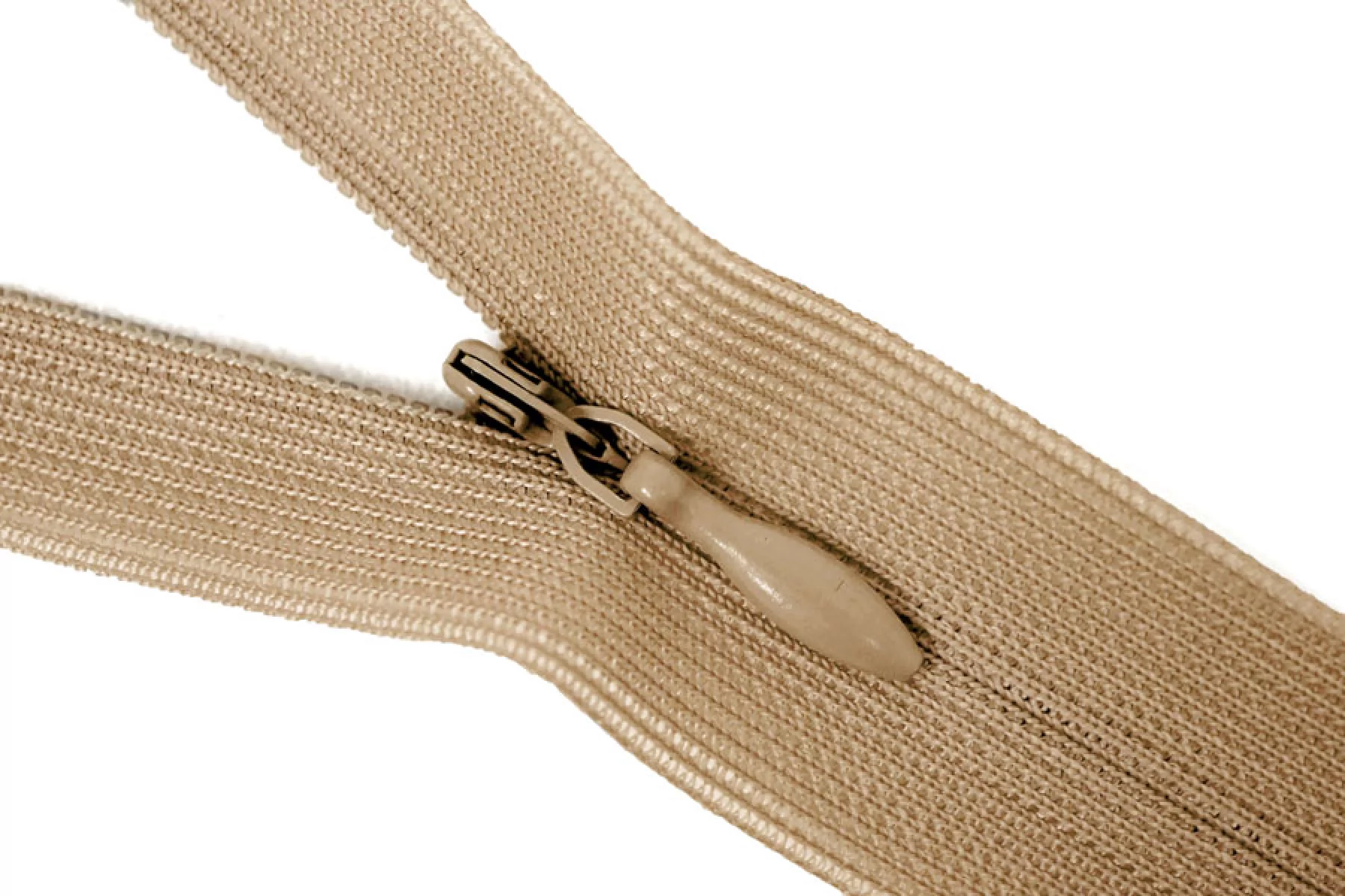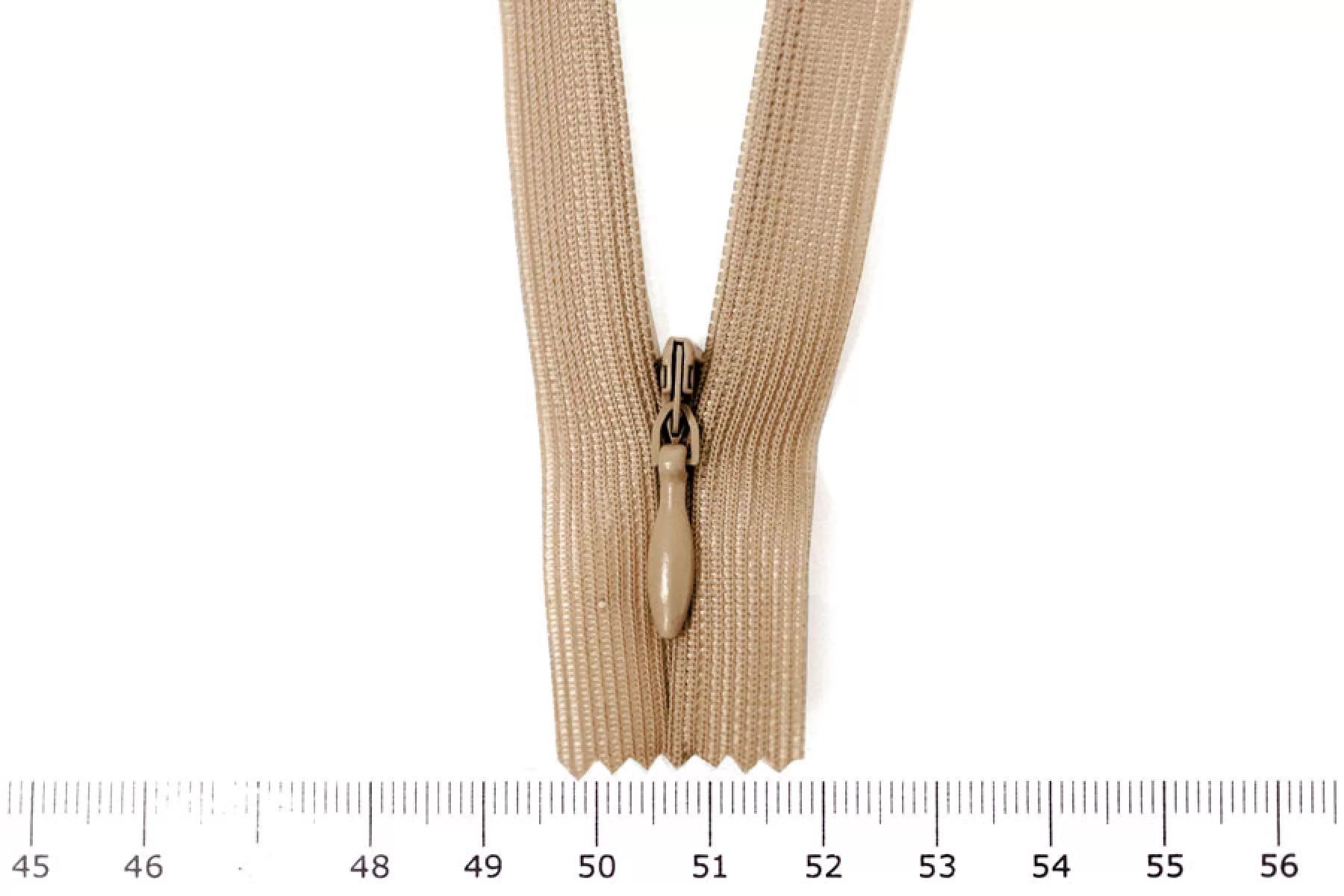 Потайная молния коричневого цвета, длина 21 см. Неразъемная. Зубцы пластиковые, слайдер и пуллер - металл.