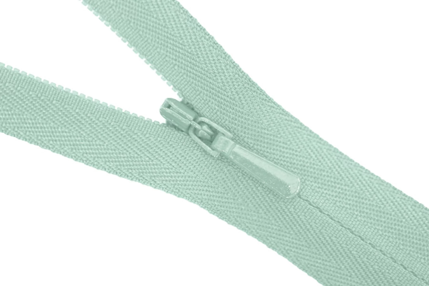 Молния потайная мятная, длина 24 см. Слайдер и пуллер - метал. в цвет молнии. Ширина молнии 2.2 см , ширина зубцов 4мм.