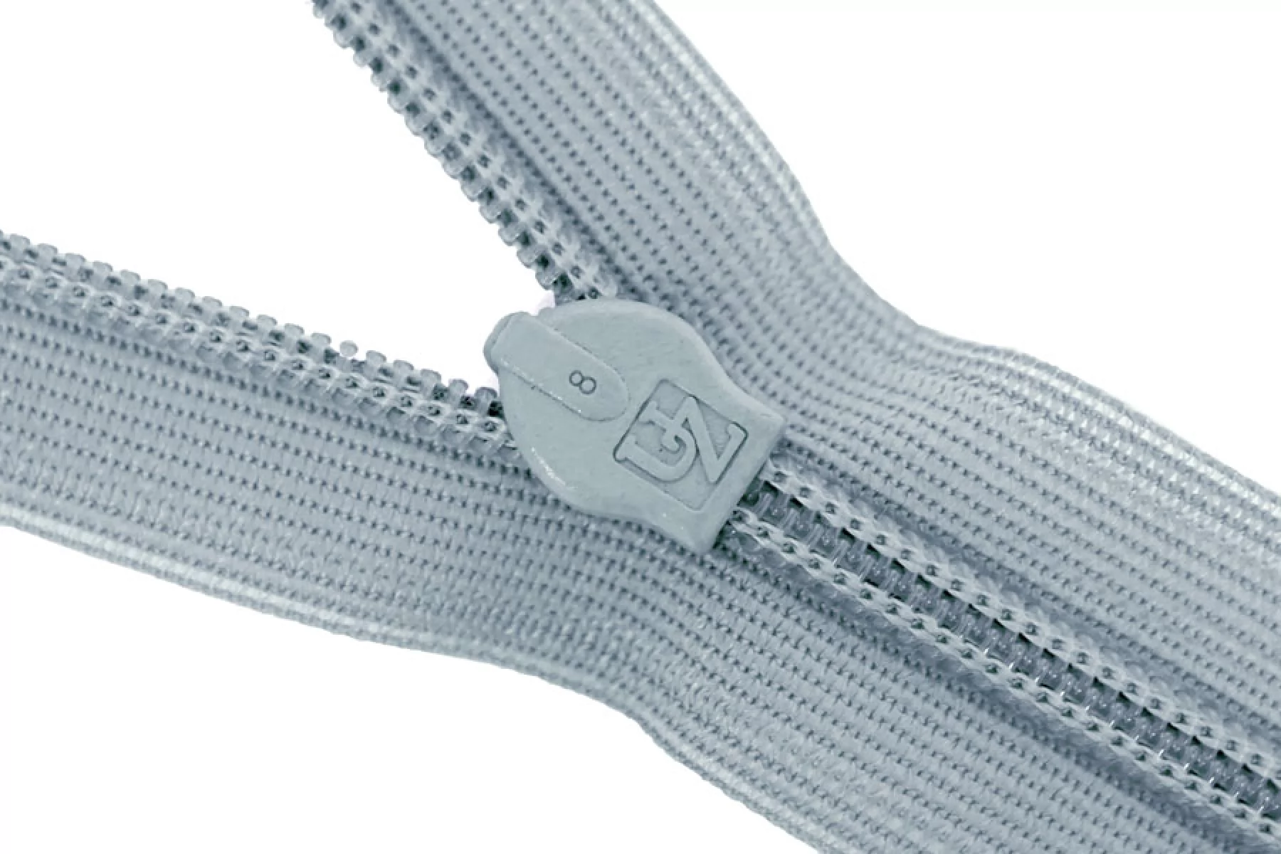 Потайная молния пыльно-голубого цвета, длина 24 см. Неразъемная. Зубцы пластиковые, слайдер и пуллер - металл.