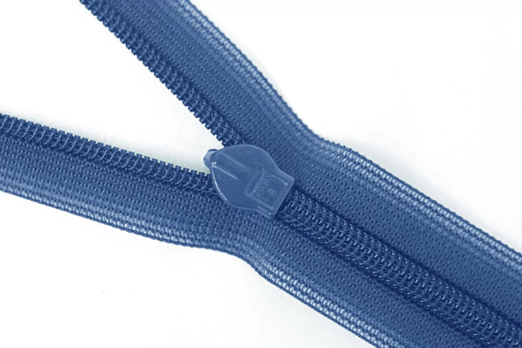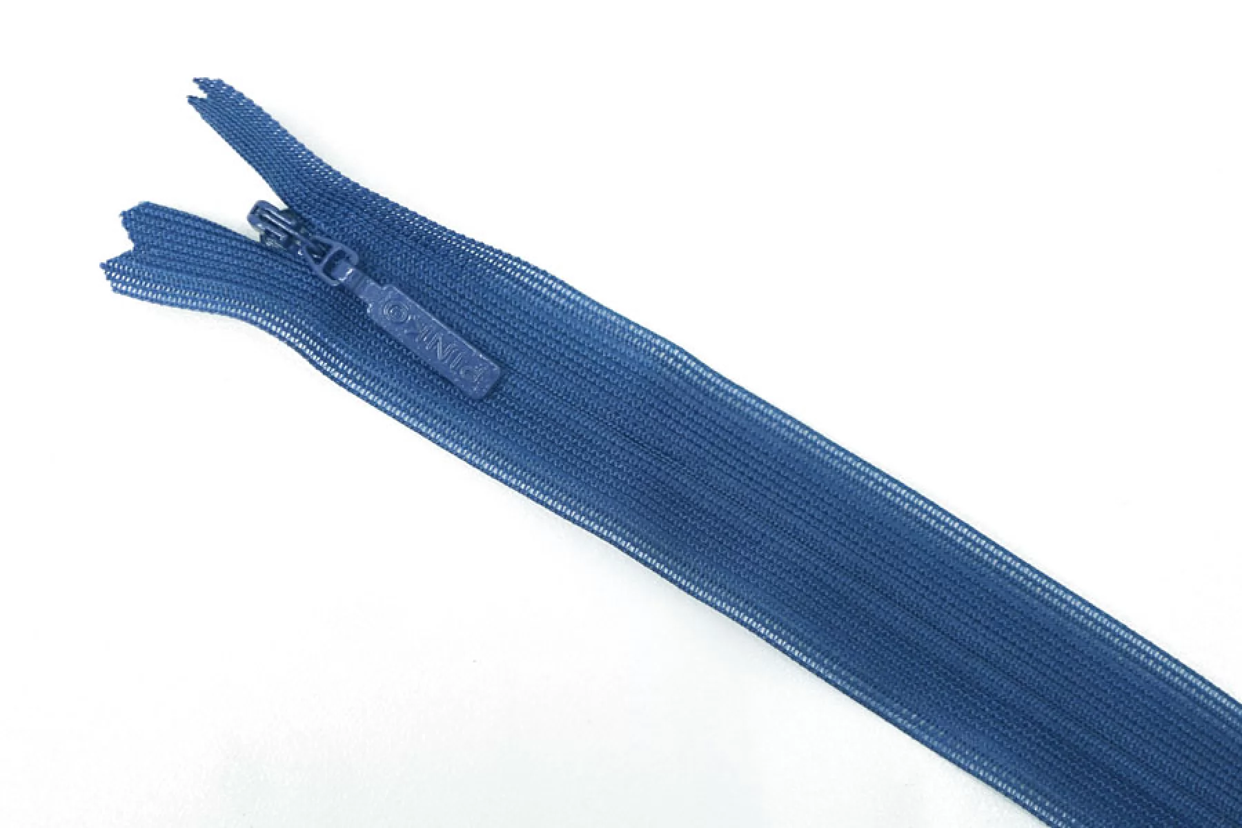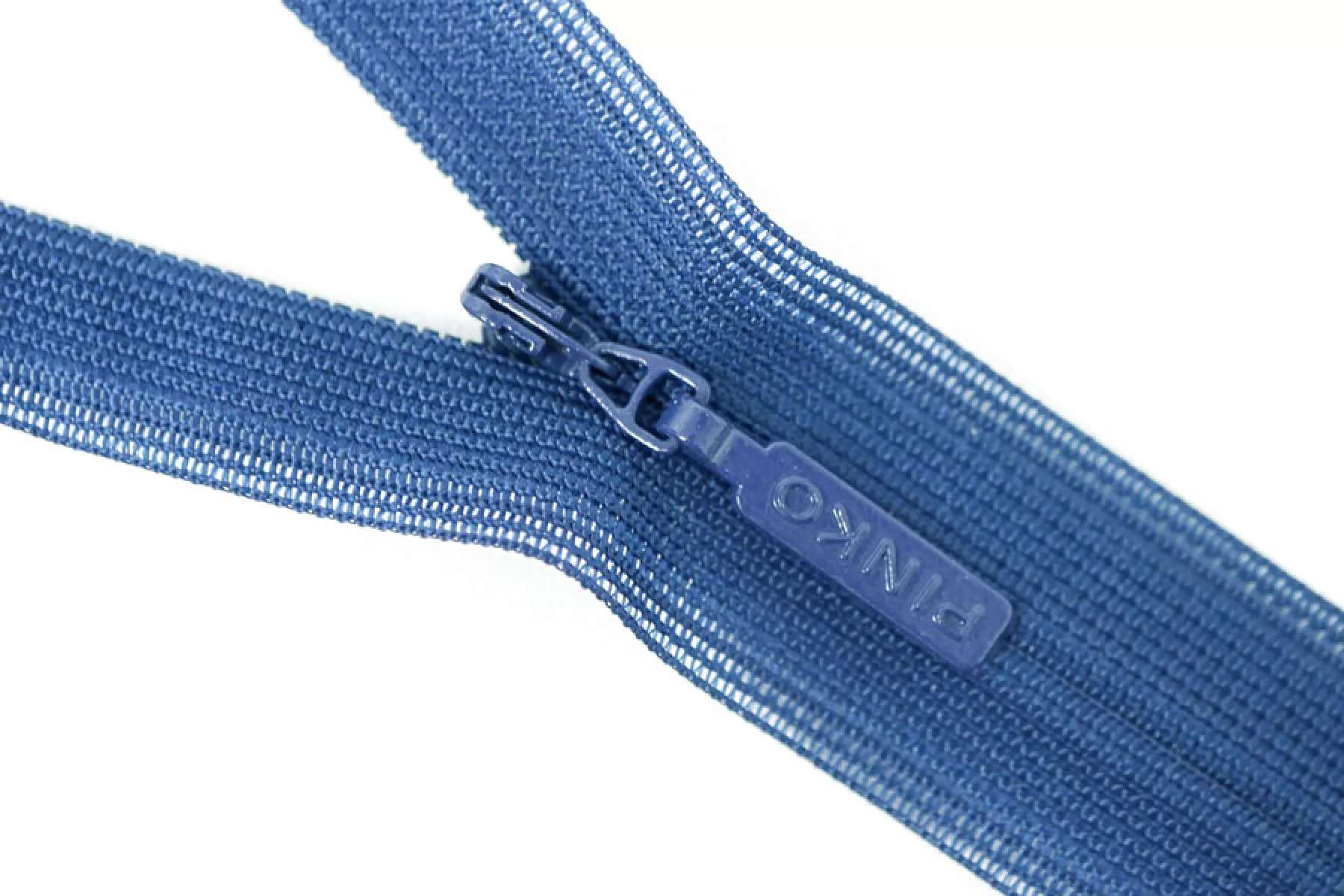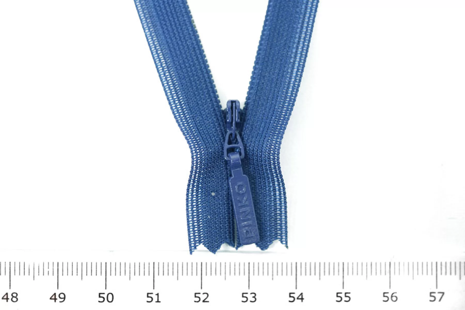 Потайная молния PINKO синего цвета, длина 19 см. Неразъемная. Зубцы пластиковые, слайдер и пуллер - металл.