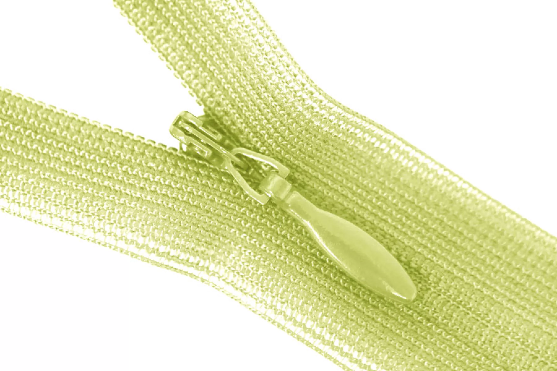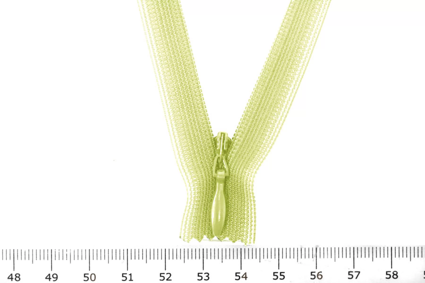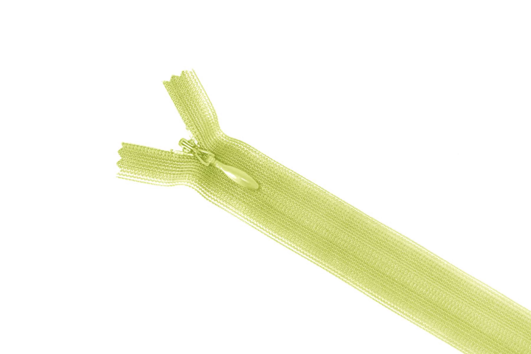 Молния потайная светло салатовая, длина 22 см. Слайдер и пуллер - метал. в цвет молнии. Ширина молнии 2.2 см , ширина зубцов 4мм.