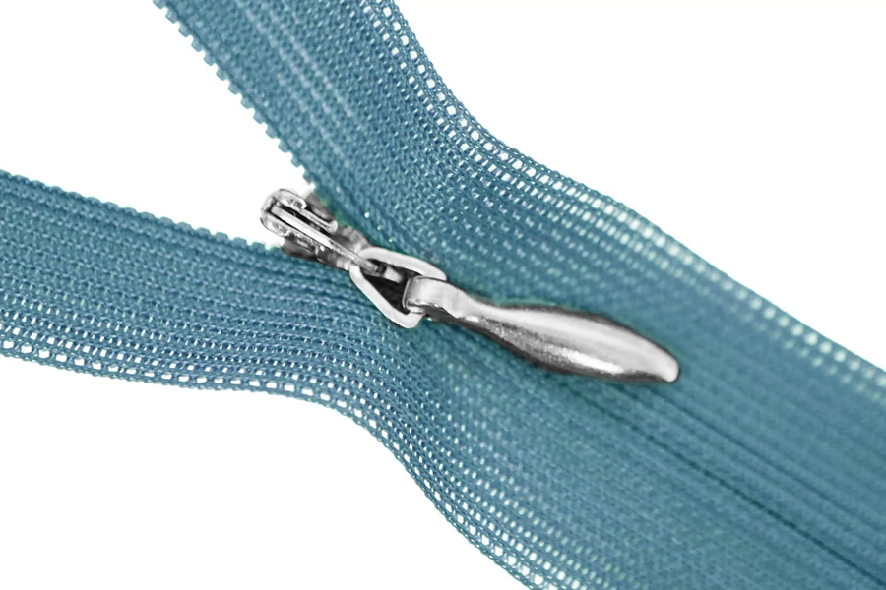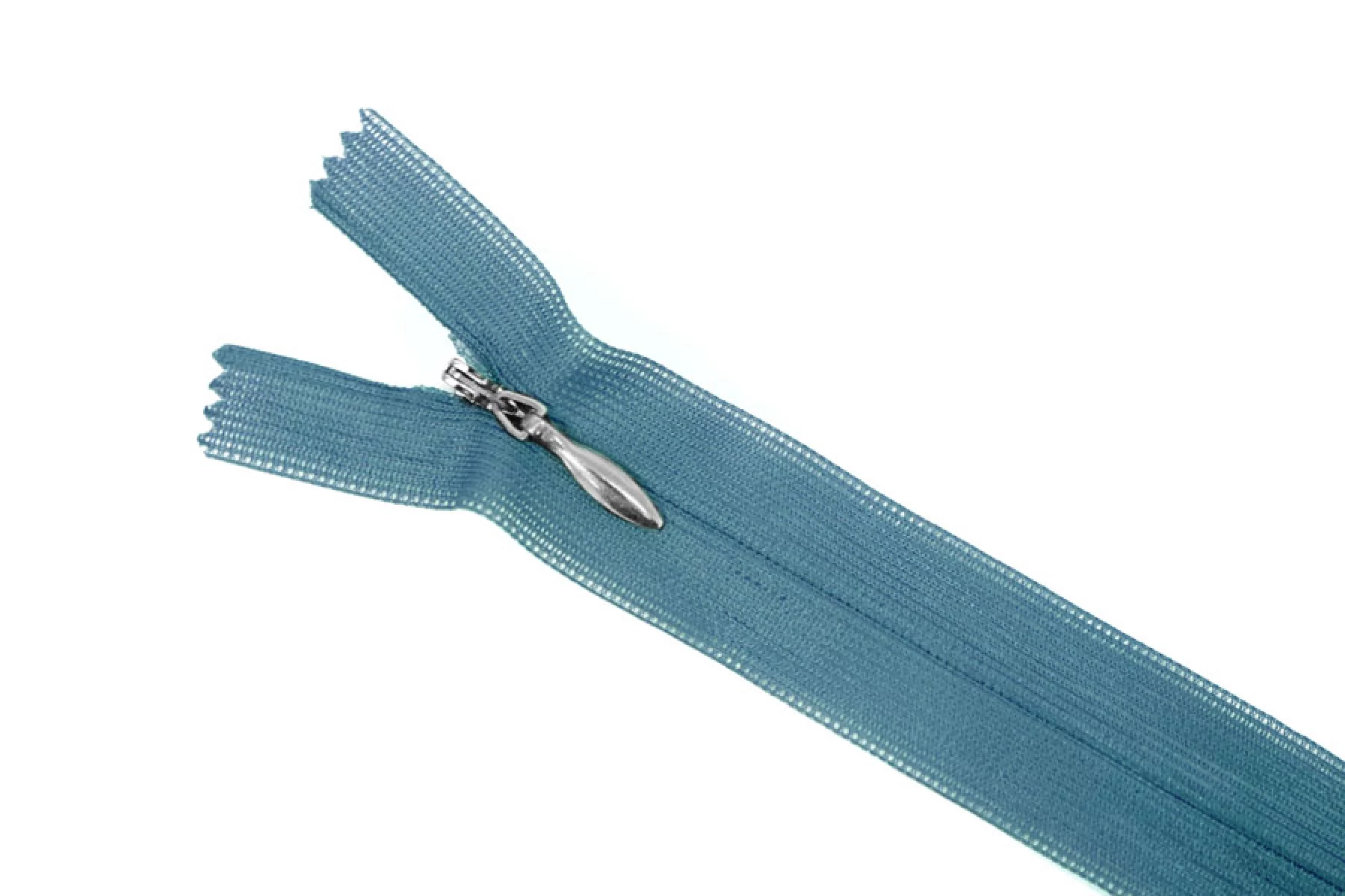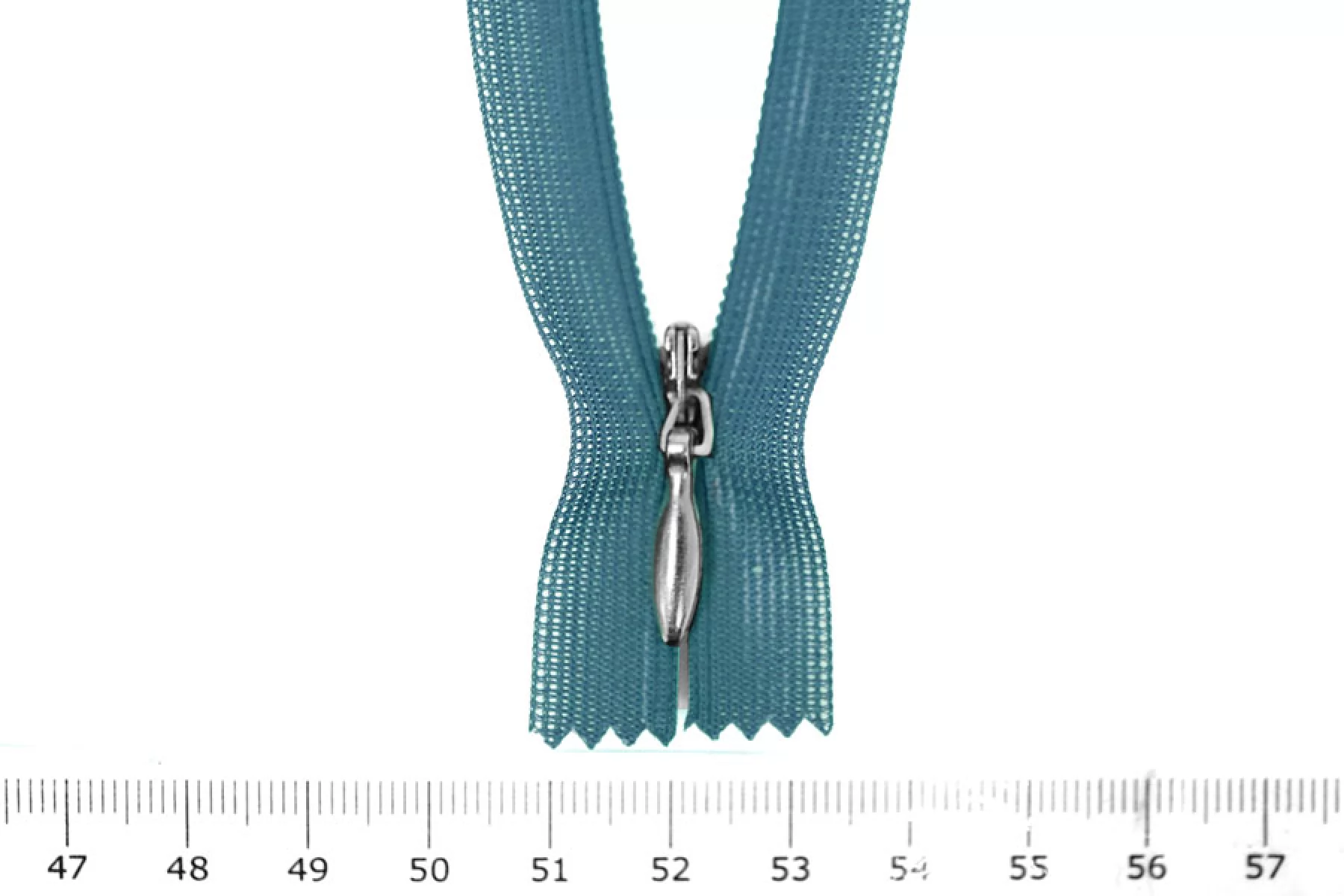 Потайная молния темно-синего цвета, длина 21 см. Неразъемная. Зубцы пластиковые, слайдер и пуллер - металл.