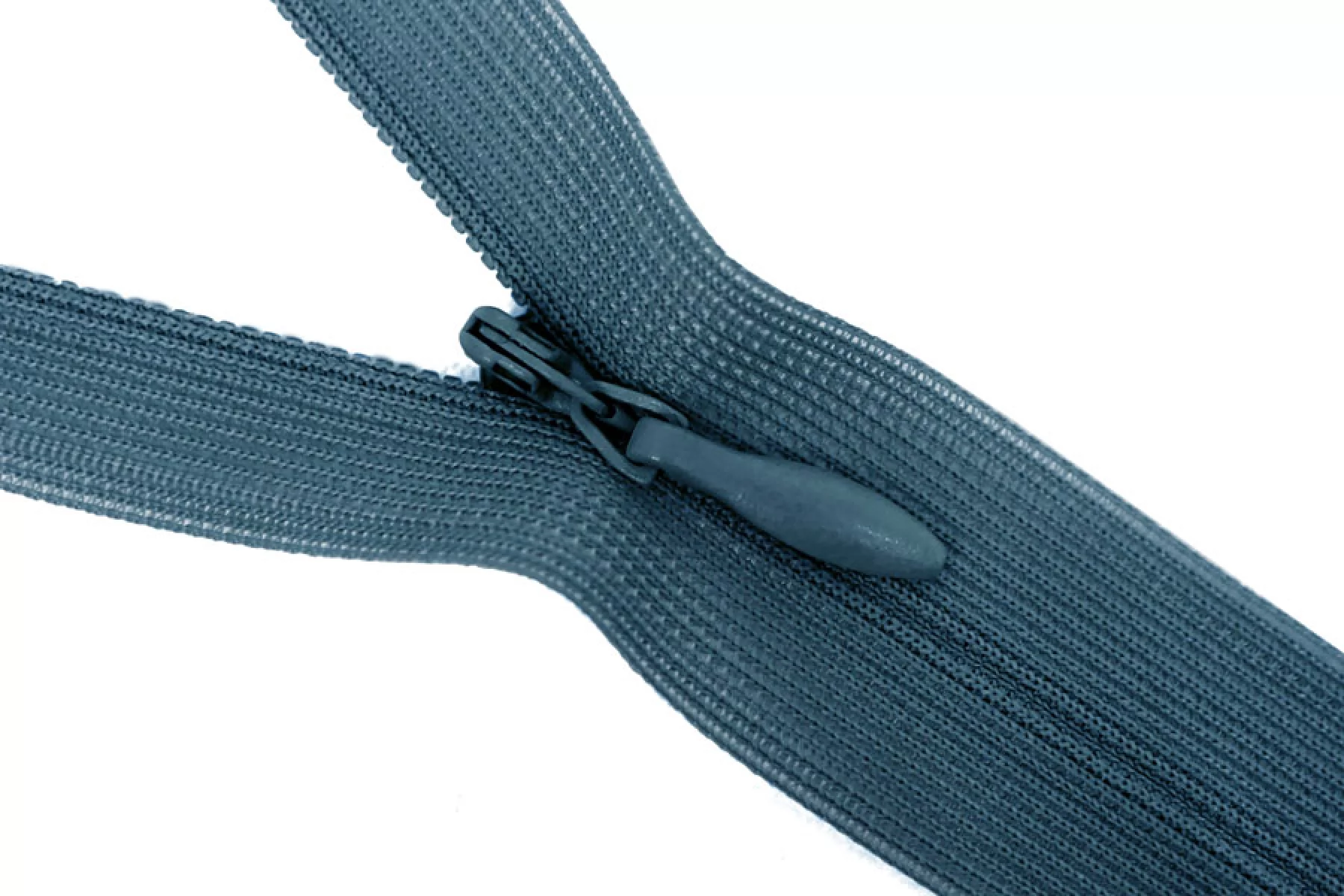 Потайная молния темно-синего цвета, длина 22 см. Неразъемная. Зубцы пластиковые, слайдер и пуллер - металл.