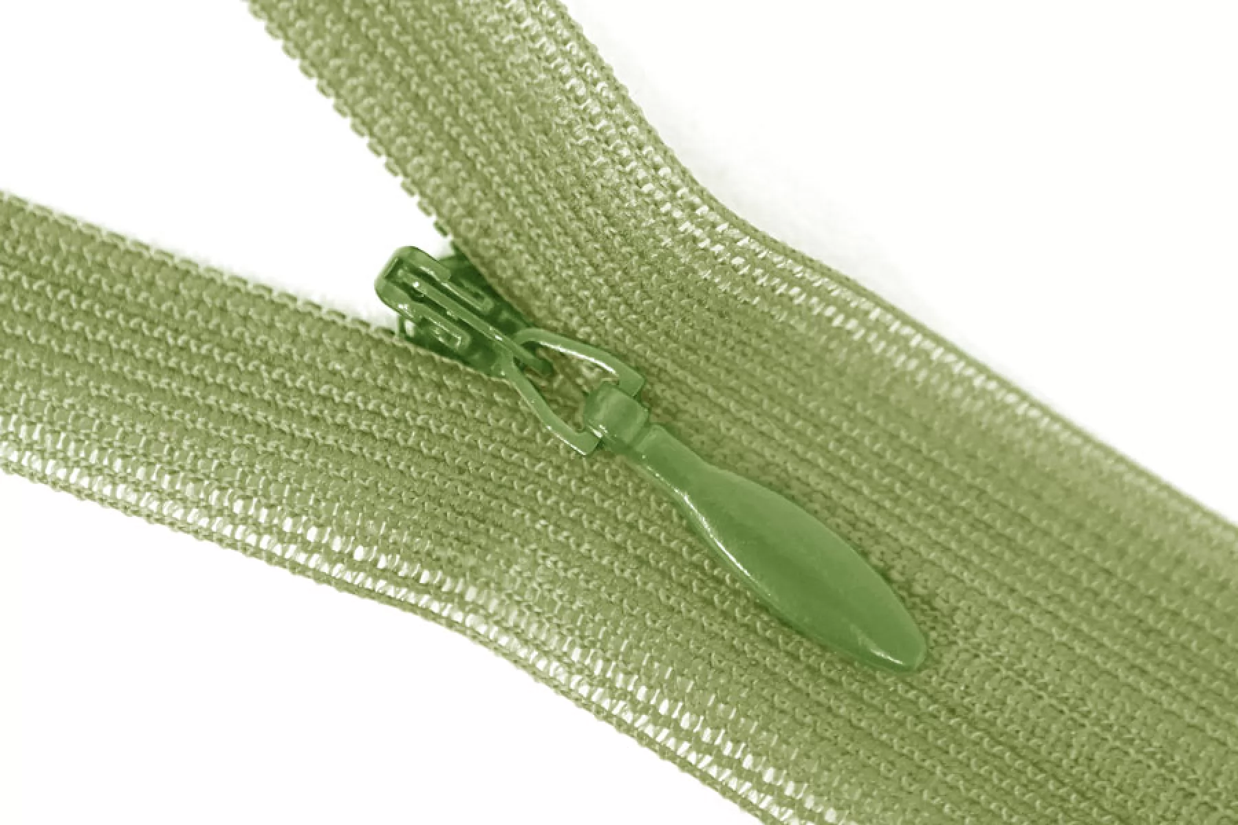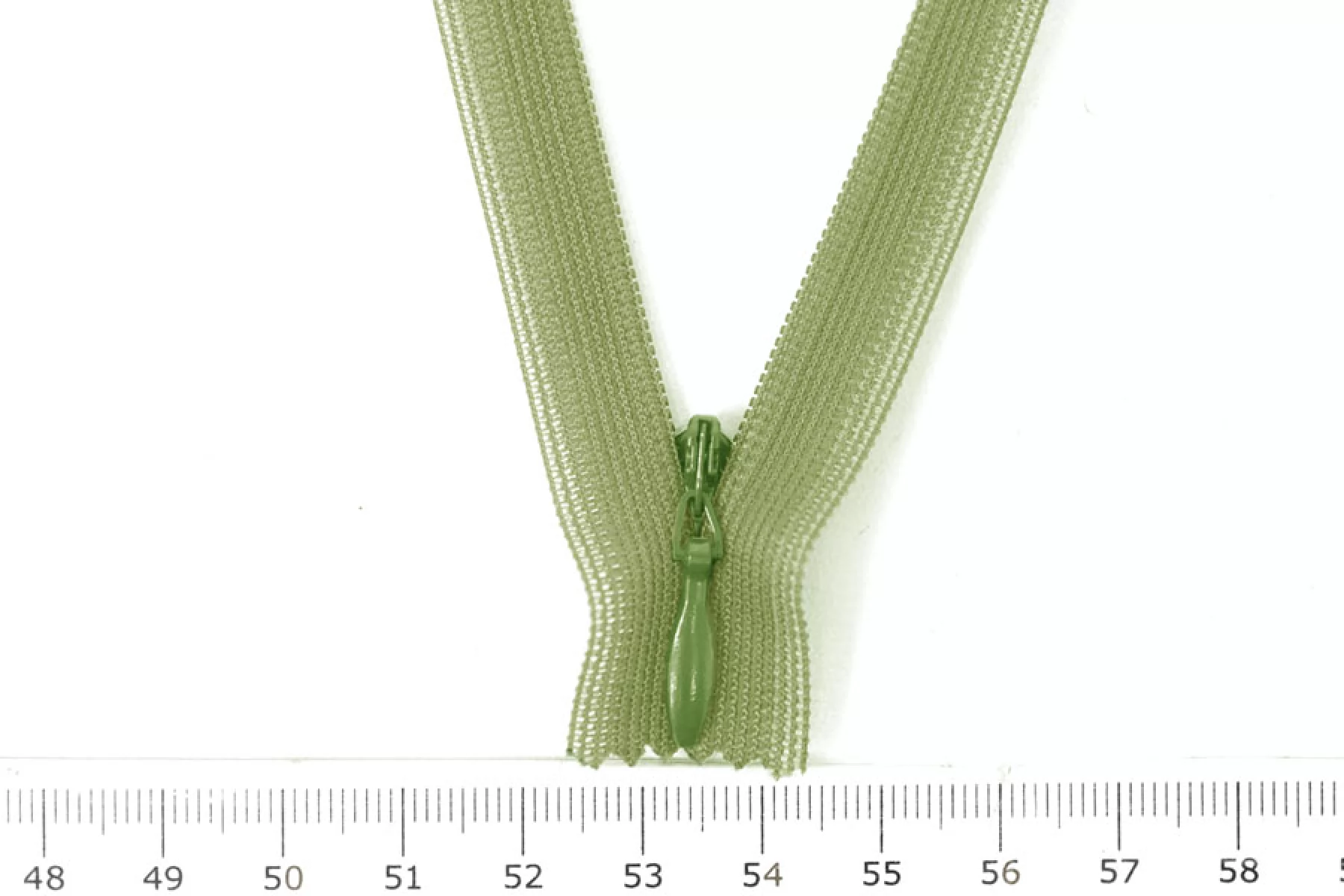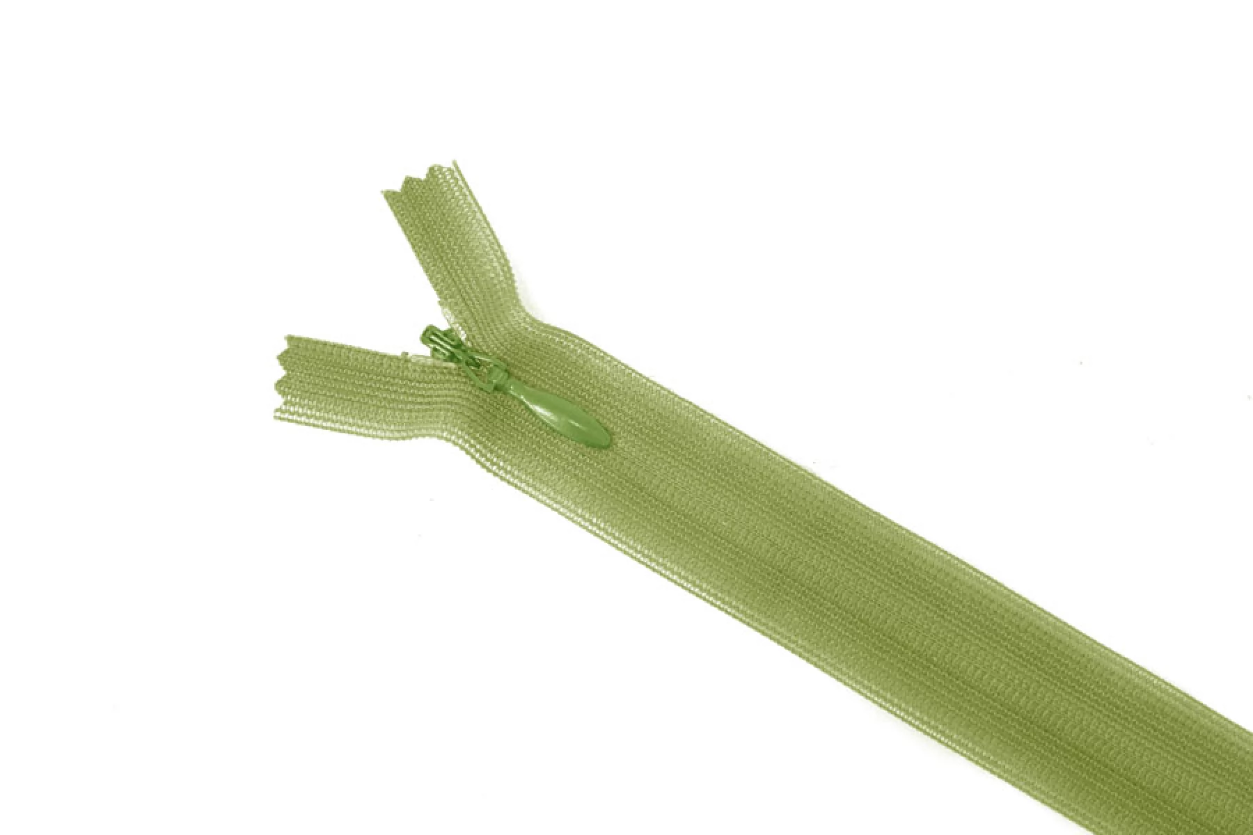 Молния потайная зеленая, длина 26 см. Слайдер и пуллер - метал. в цвет молнии. Ширина молнии 2.2 см , ширина зубцов 4мм.
