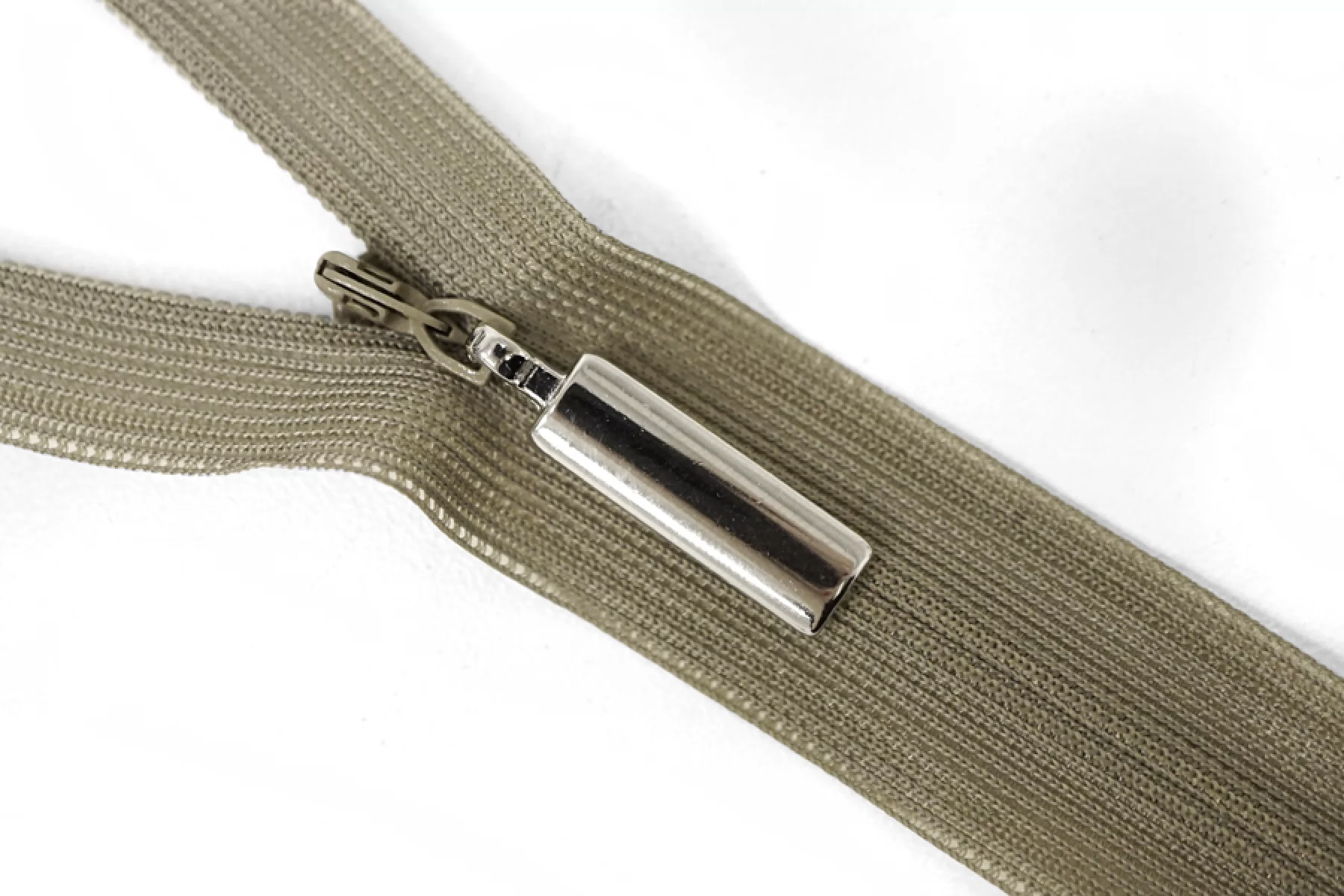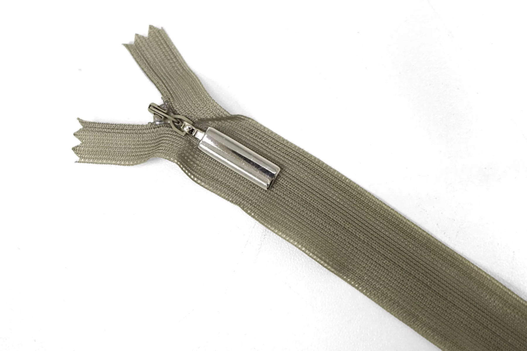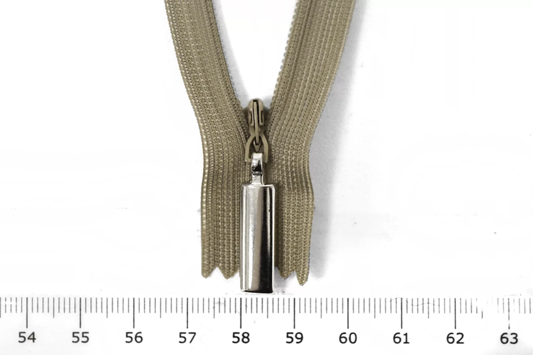 Потайная молния серо-бежевого цвета от SBS , длина 22 см. Слайдер металл в цвет молнии , пуллер метал.никель. Ширина молнии 2.2 см , ширина зубцов 4мм.