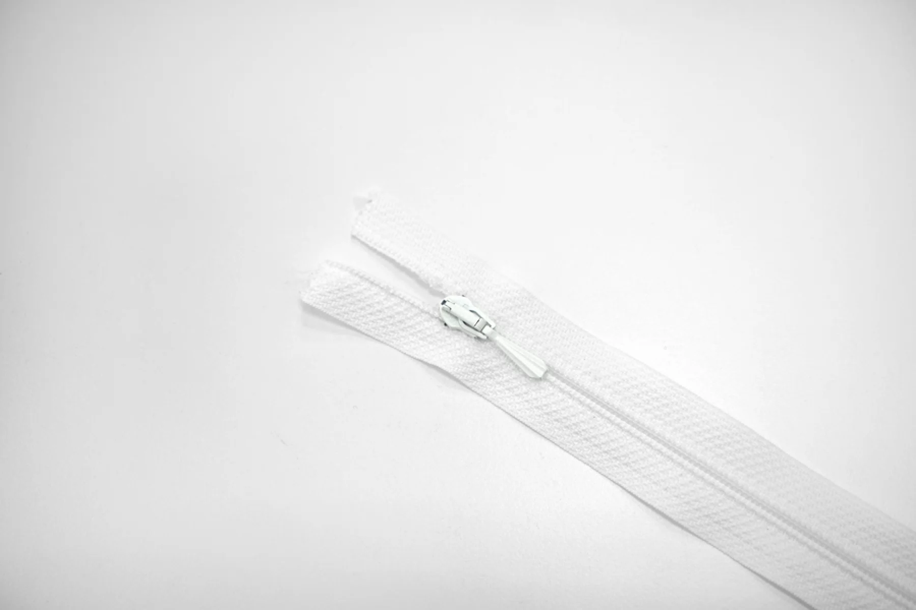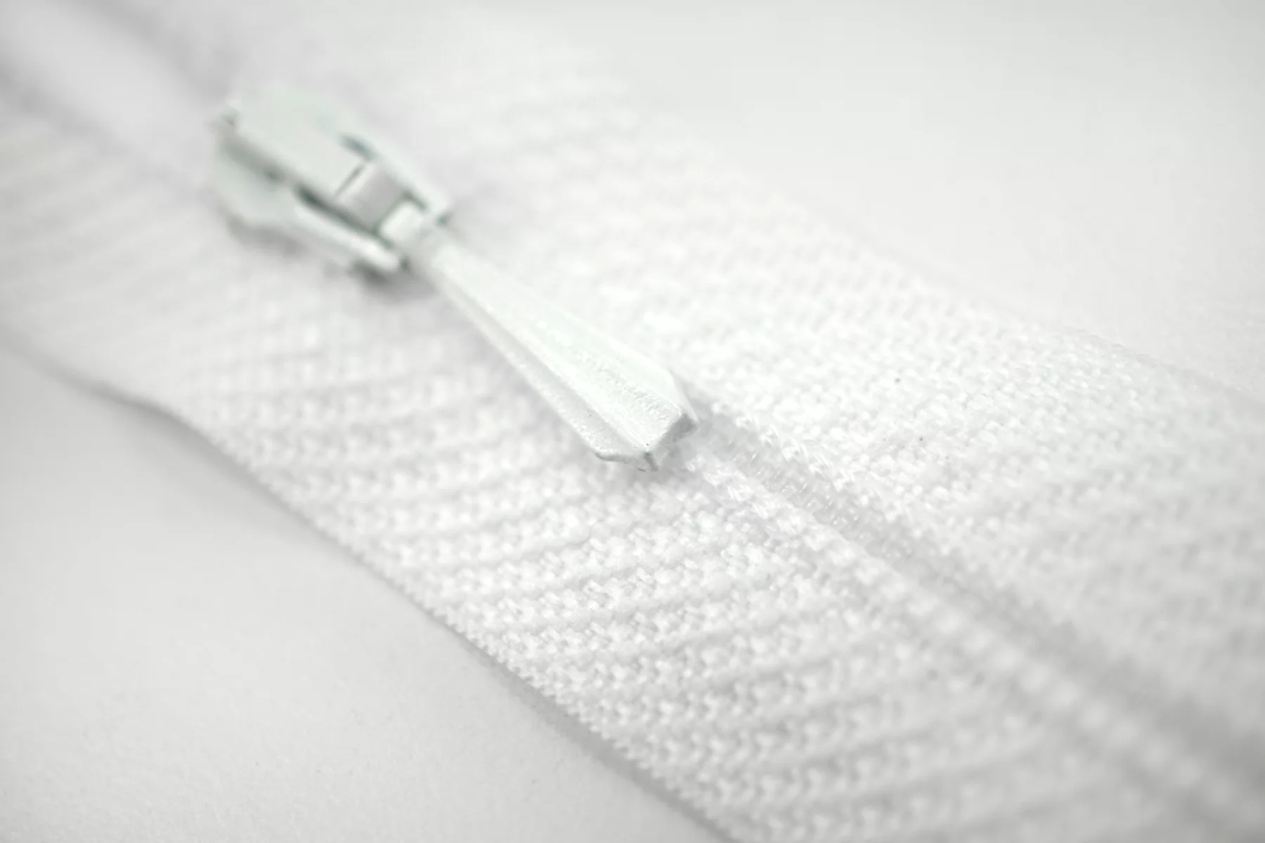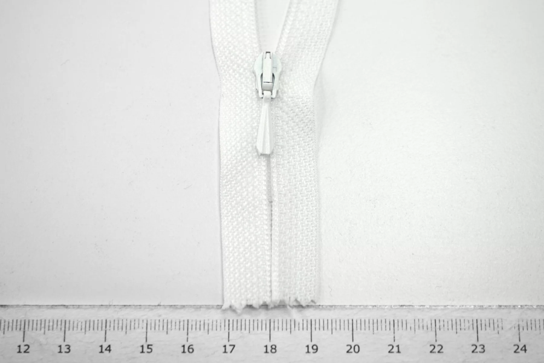 Молния брючная спиральная неразъёмная, однозамковая, белого цвета, от Lampo. Длина 20 см.