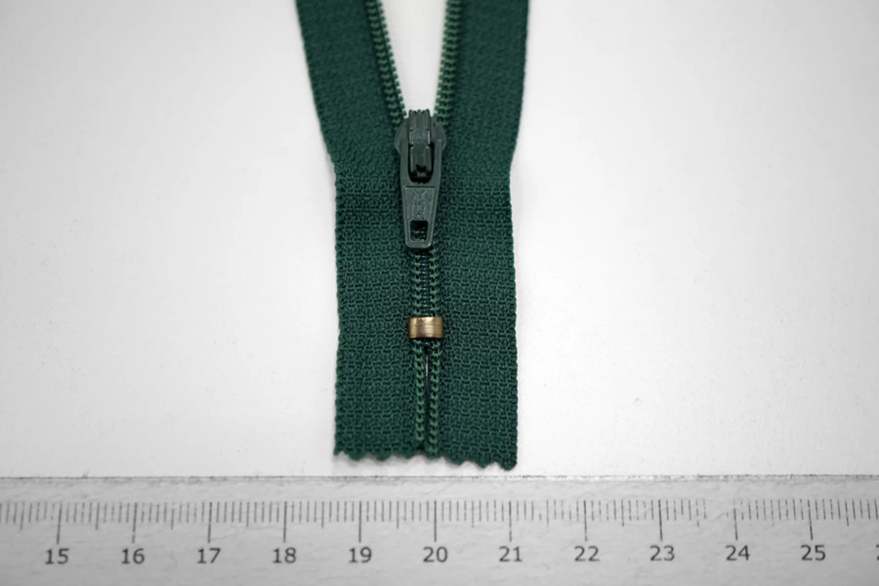 Молния брючная спиральная неразъёмная, однозамковая, в изумрудном цвете, от YKK. Длина 12 см.