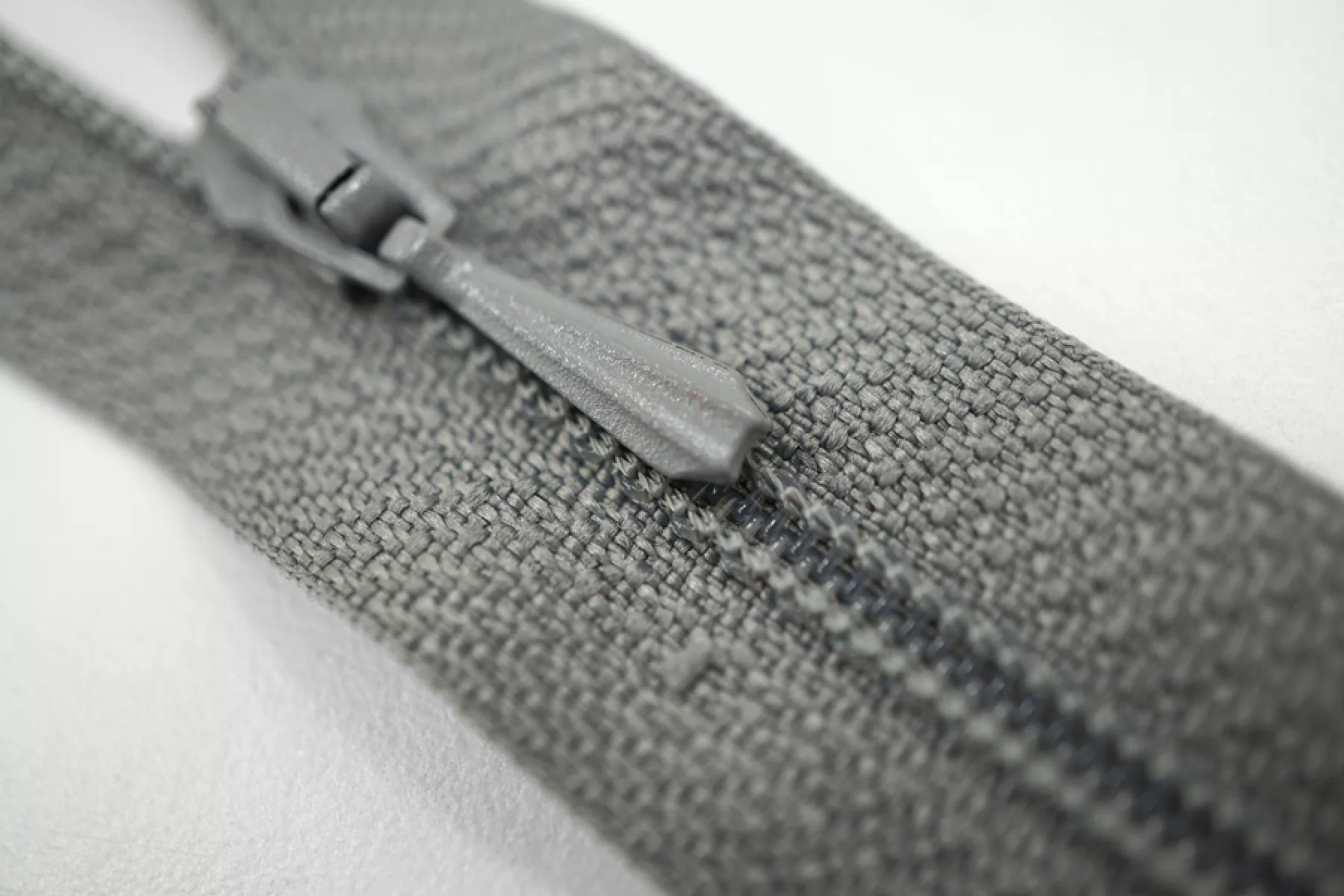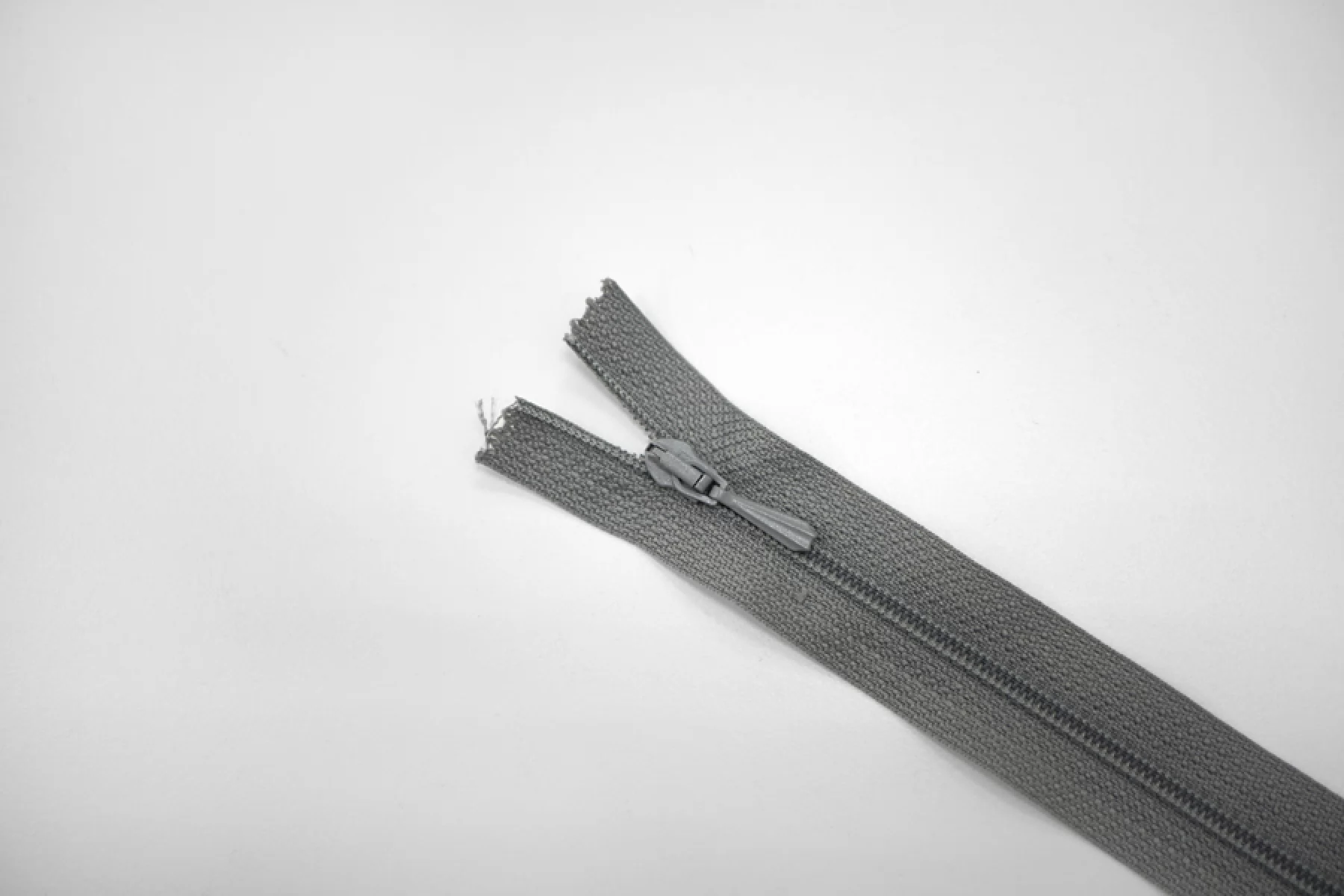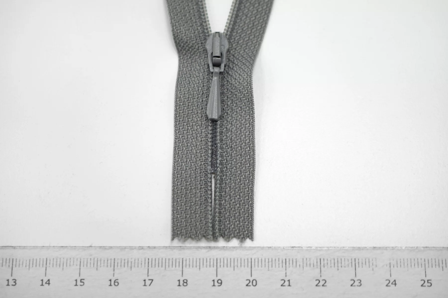 Молния брючная спиральная неразъёмная, однозамковая, серого цвета, от Lampo. Длина 16,5 см.