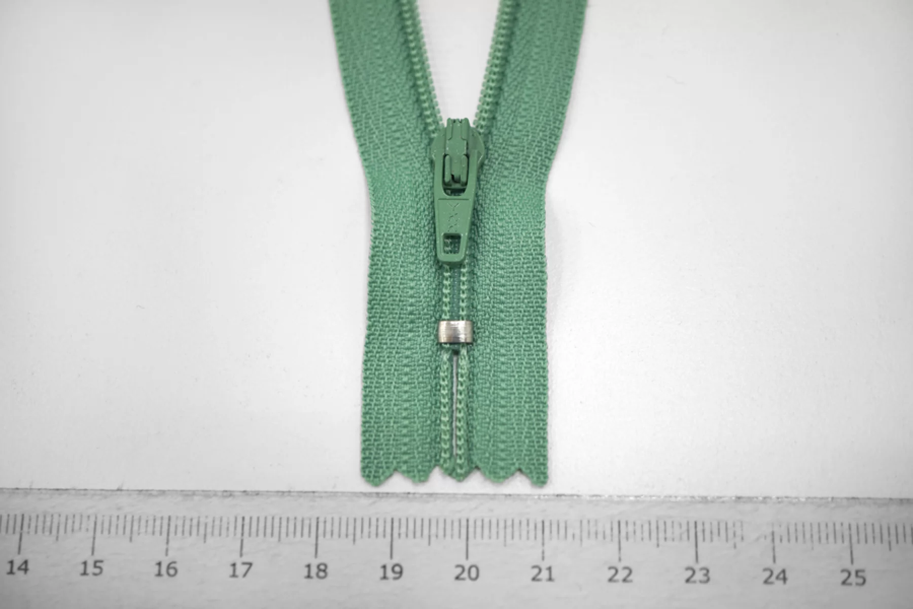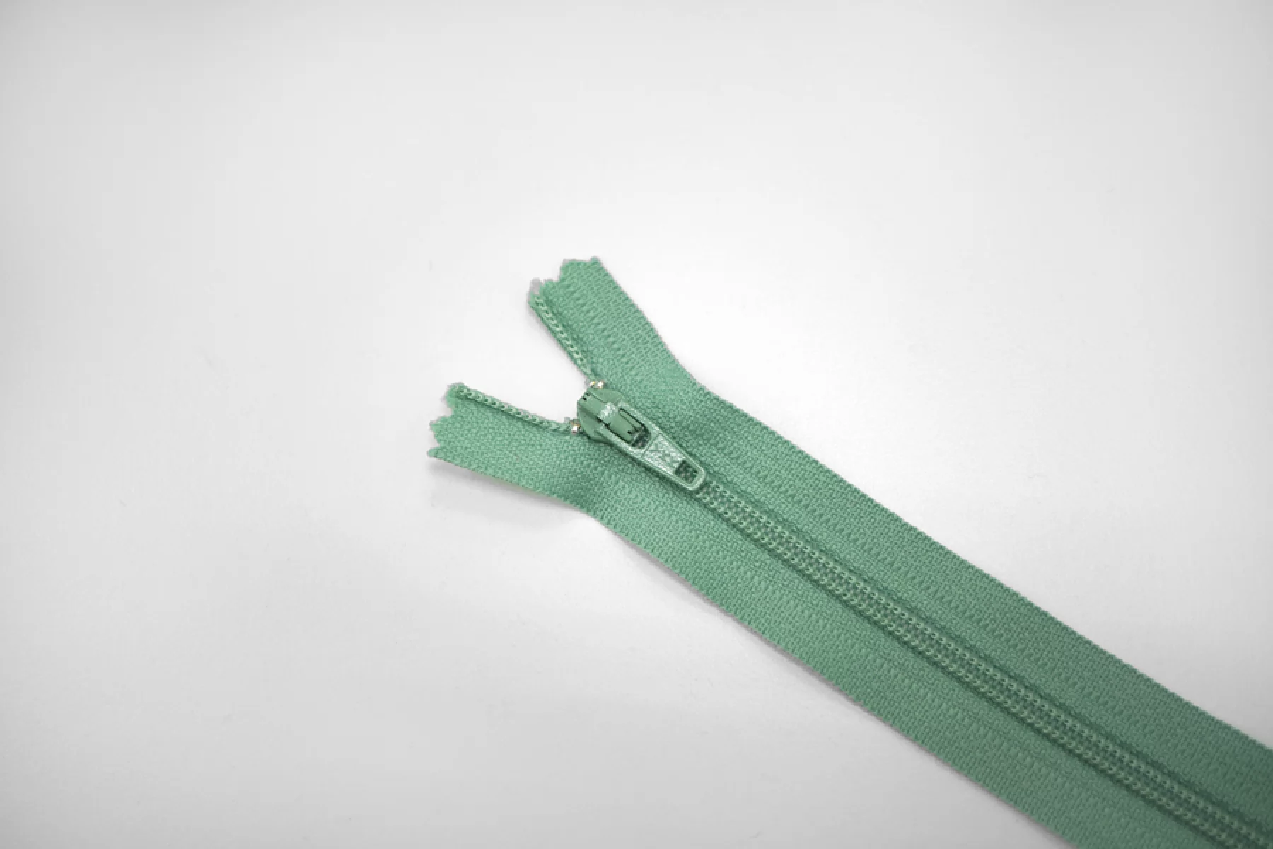 Молния брючная спиральная неразъёмная, однозамковая, в оттенке шалфея, от YKK. Длина 12 см.