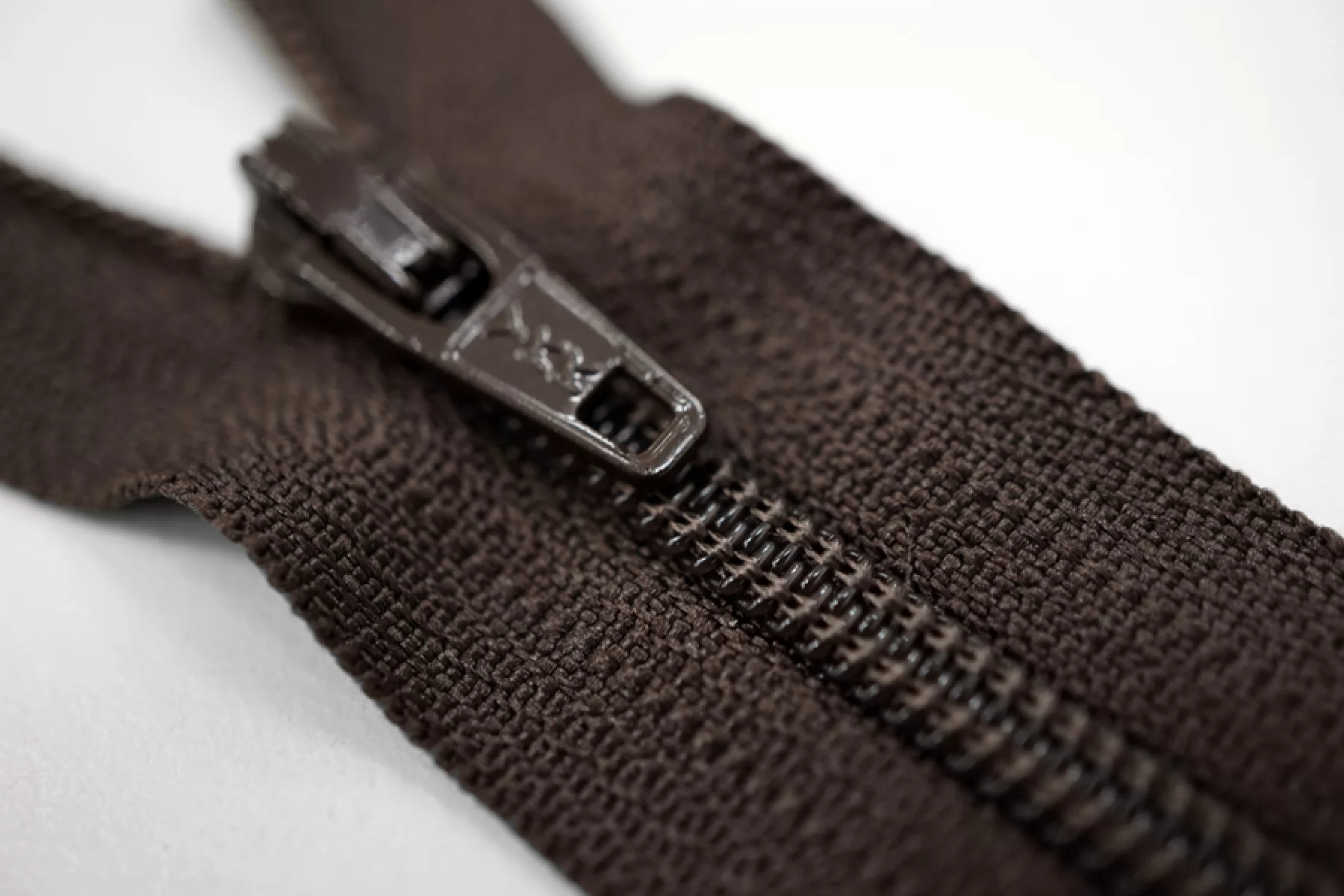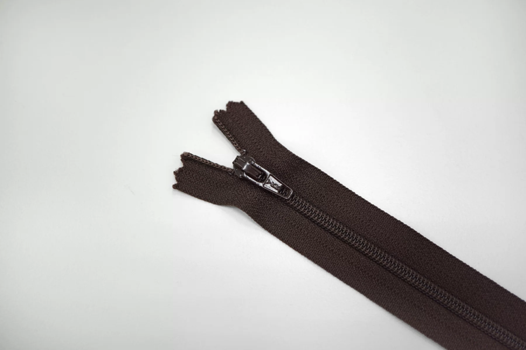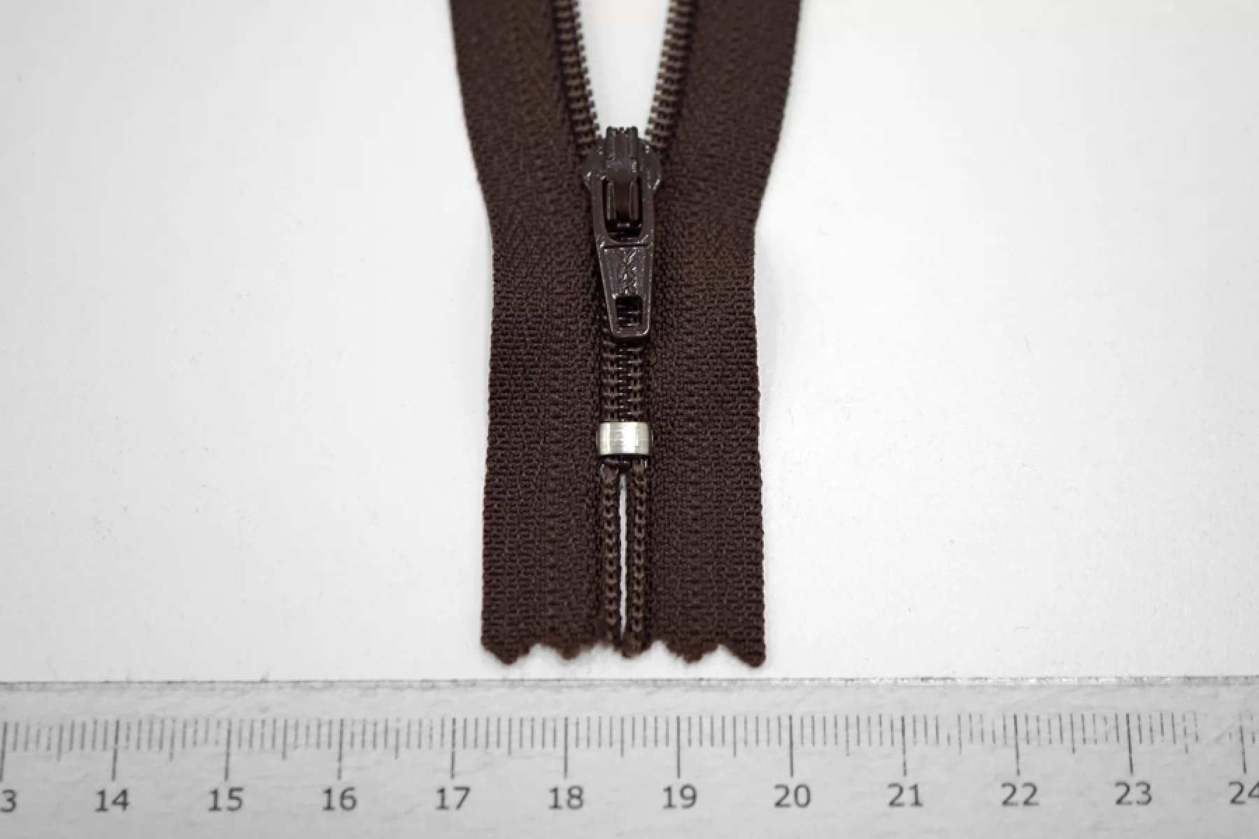 Молния брючная спиральная неразъёмная, однозамковая, в темном коричневом цвете, от YKK. Длина 12 см.
