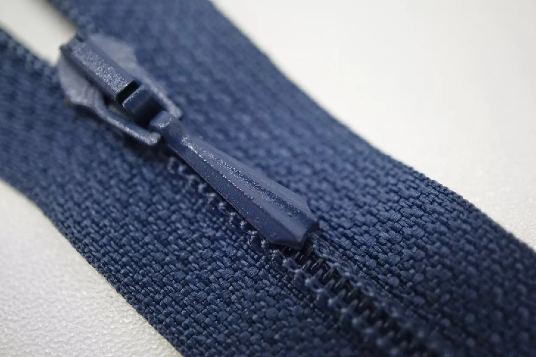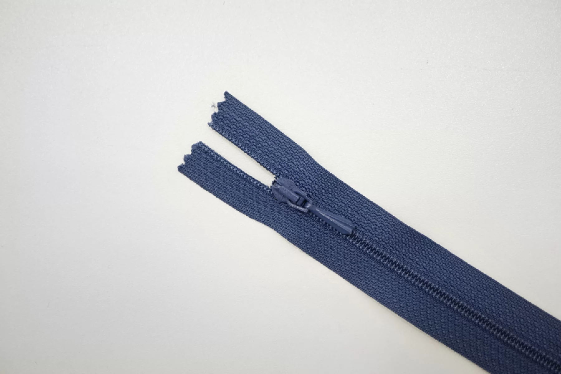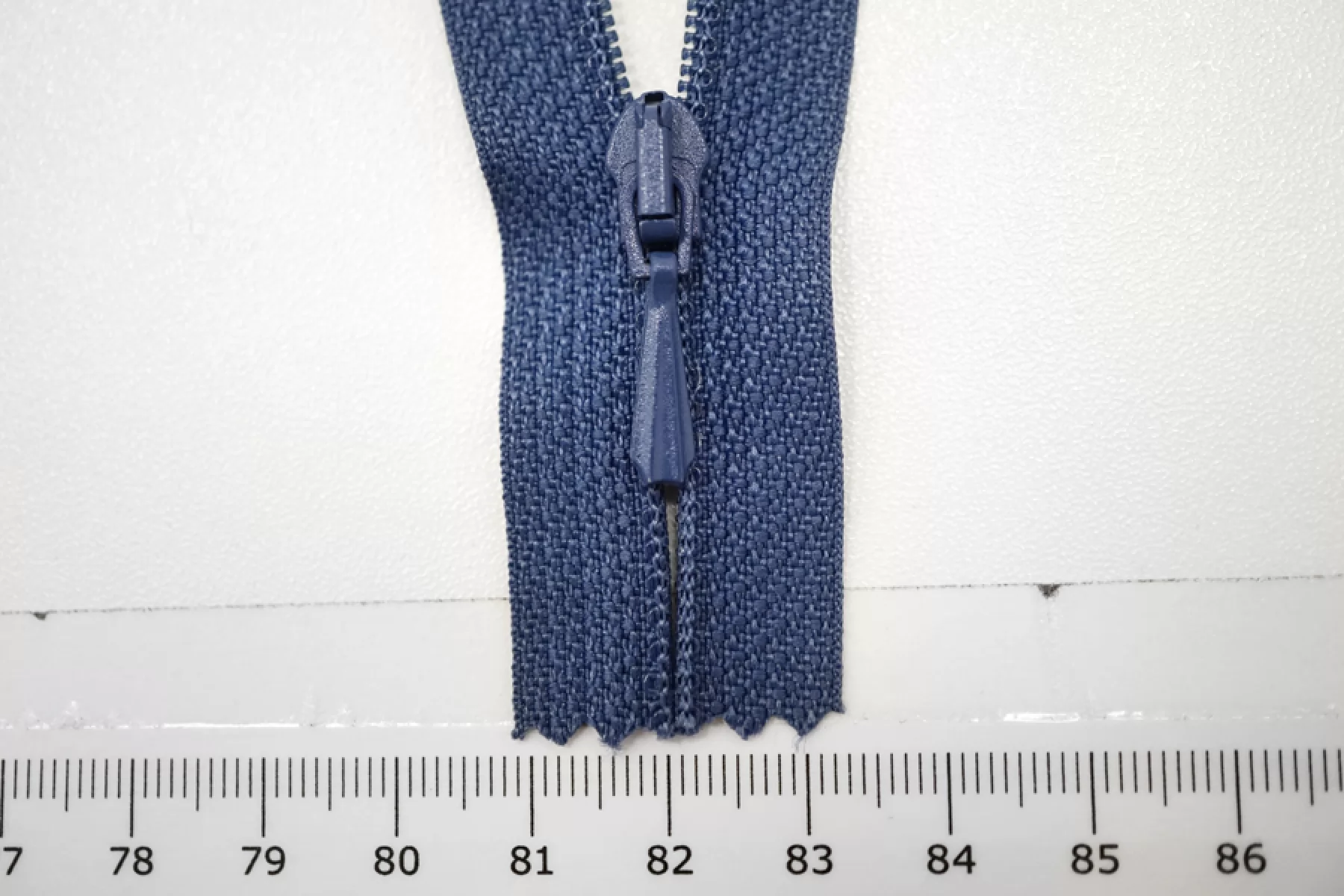 Молния брючная спиральная неразъёмная, однозамковая, синего цвета с фиолетовым подтоном, от Lampo. Длина 11 см.