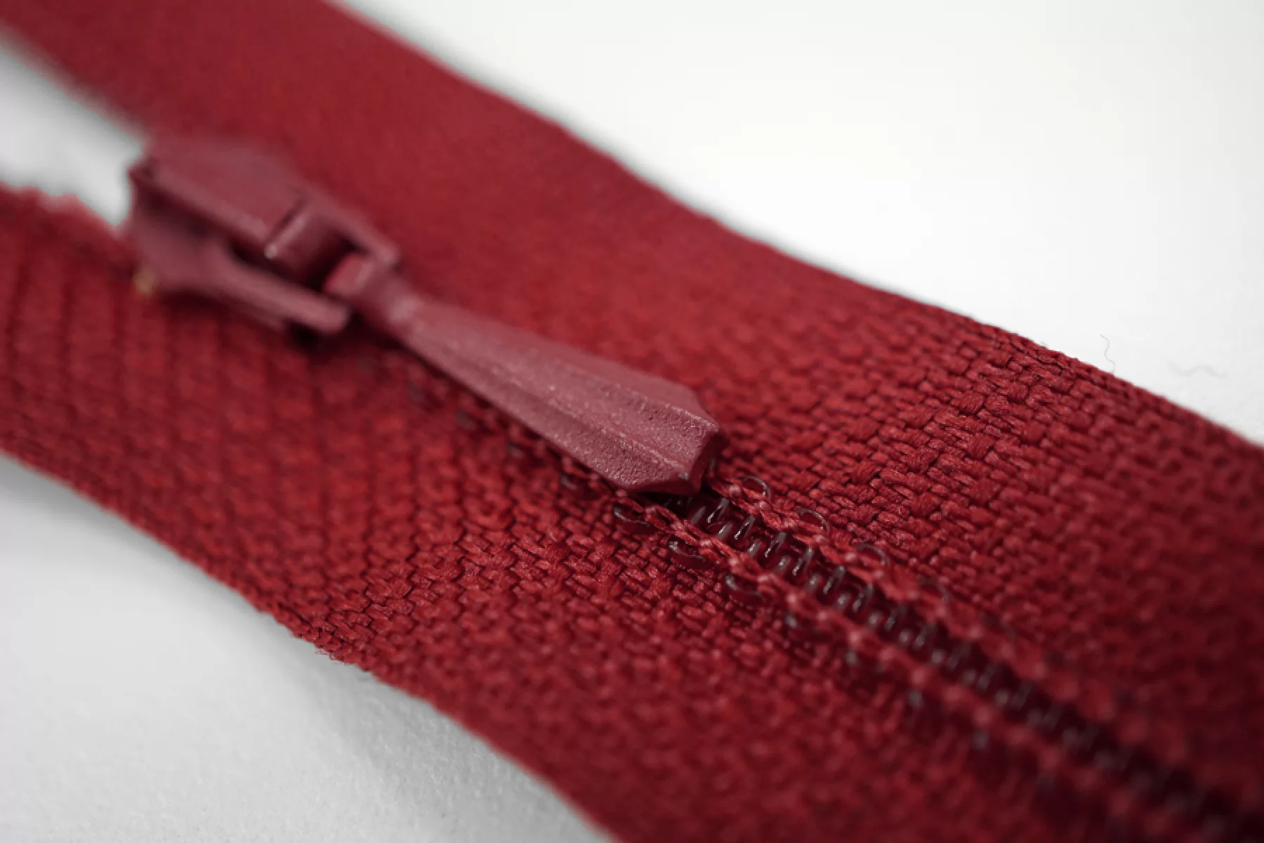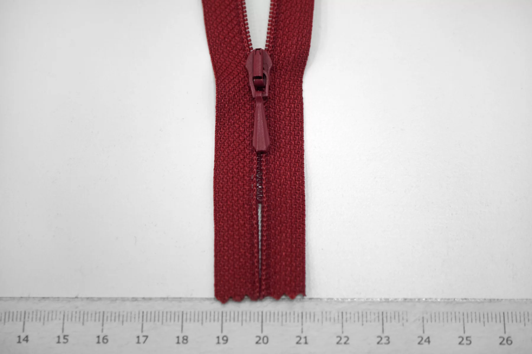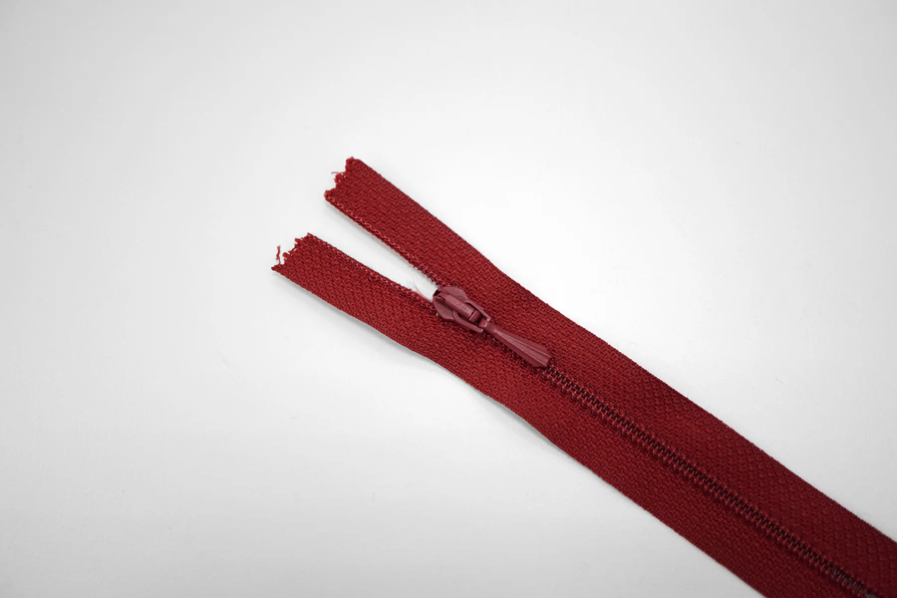 Молния брючная спиральная неразъёмная, однозамковая, темно-красного цвета, от Lampo. Длина 10 см.