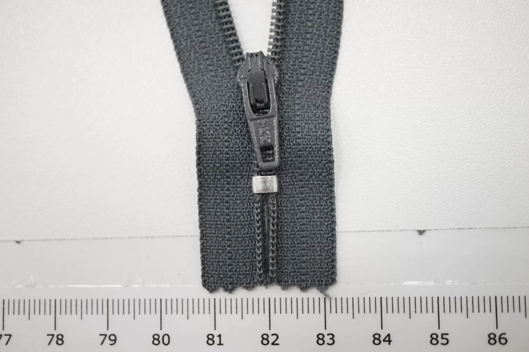 Молния брючная спиральная неразъёмная, однозамковая, темно-серого цвета, от YKK. Длина 18 см.