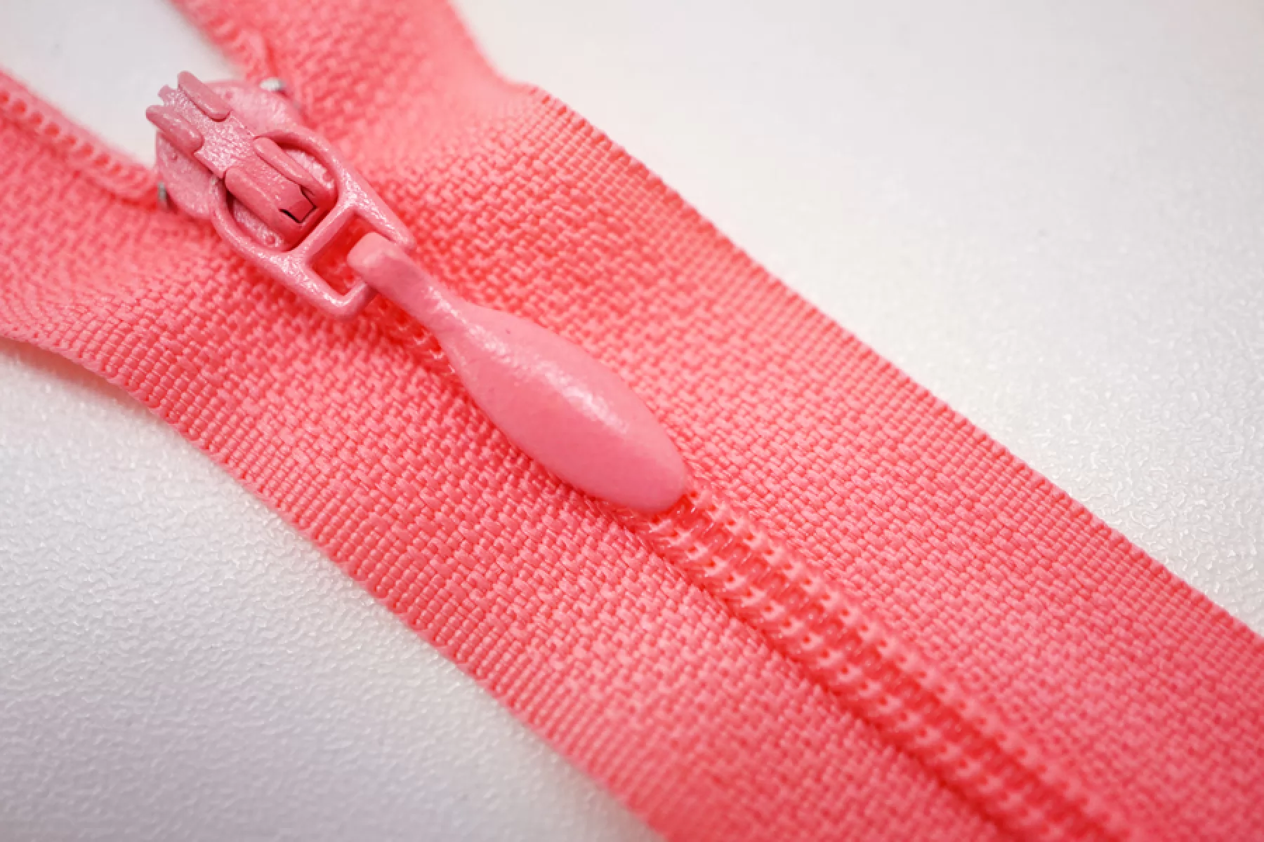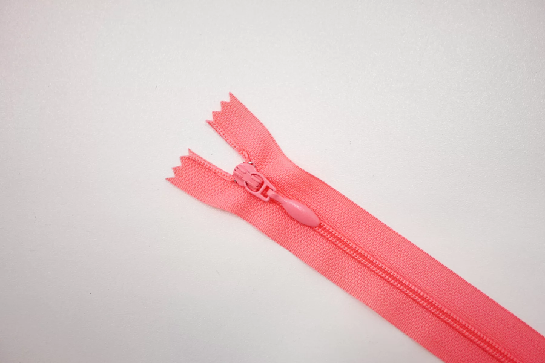 Молния брючная спиральная неразъёмная, однозамковая, ярко-розового цвета. Длина 14 см.