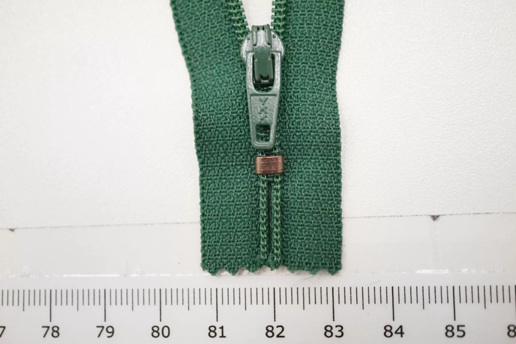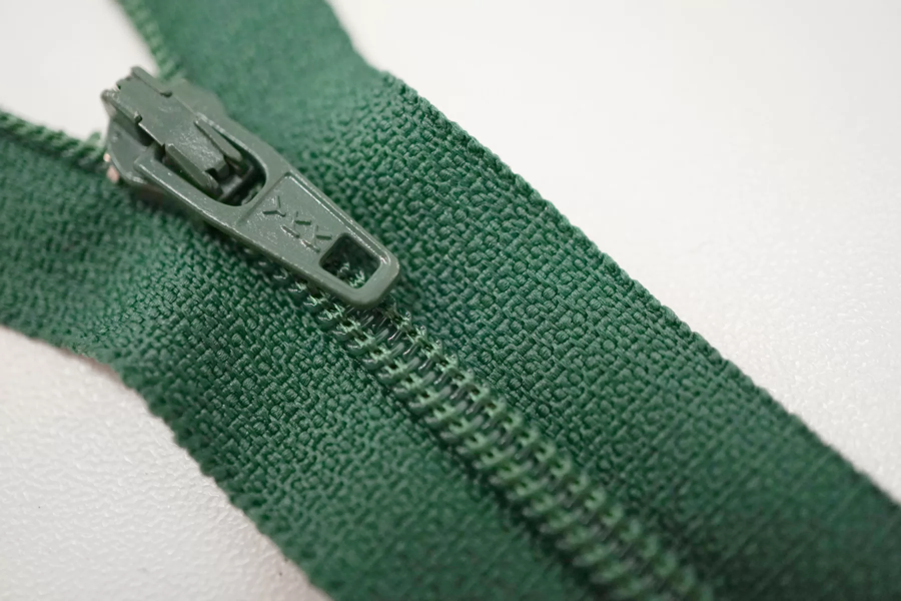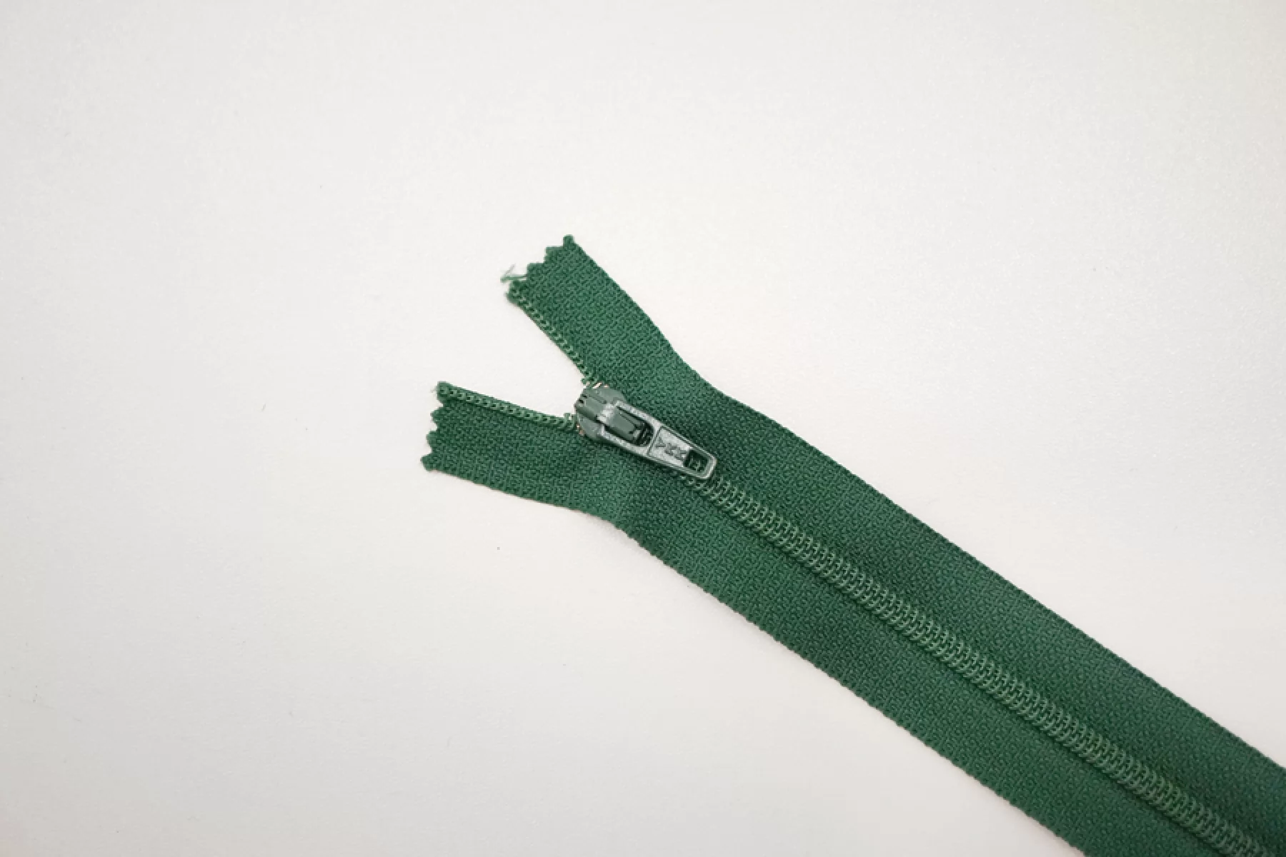 Молния брючная спиральная неразъёмная, однозамковая, зеленого цвета, от YKK. Длина 18 см.