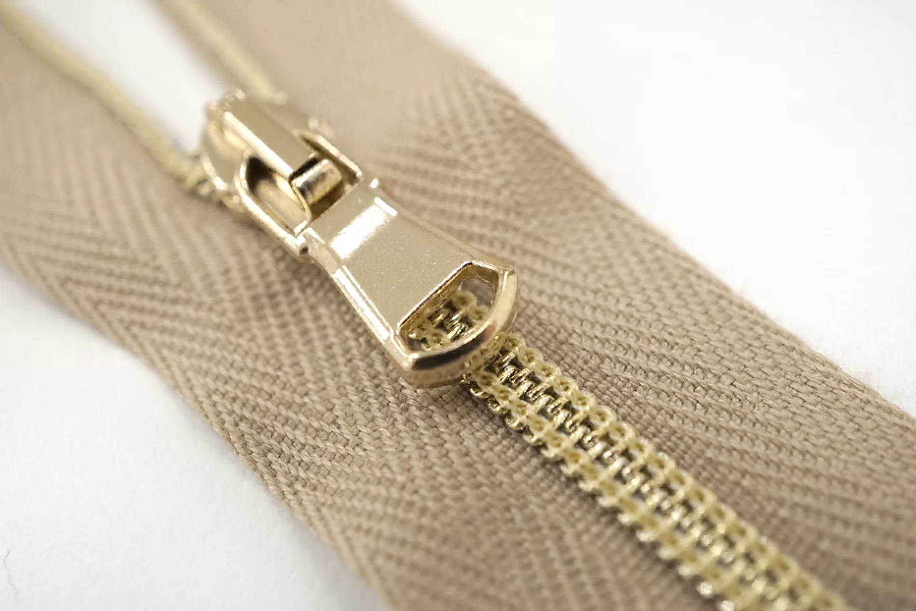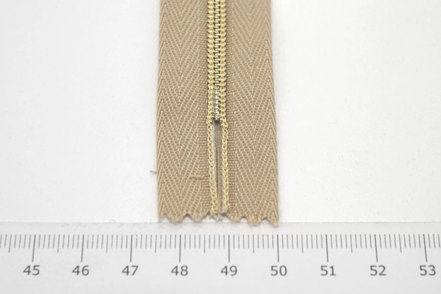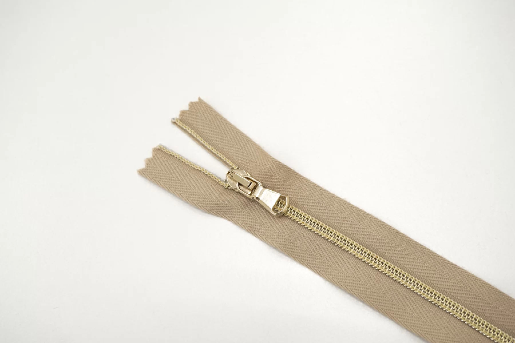 Молния от "Lampo" неразъемная, бежевая, цвет зубцов золотистый, пластиковая спиральная, слайдер и пуллер металлический золотистый . Длина 11 см.