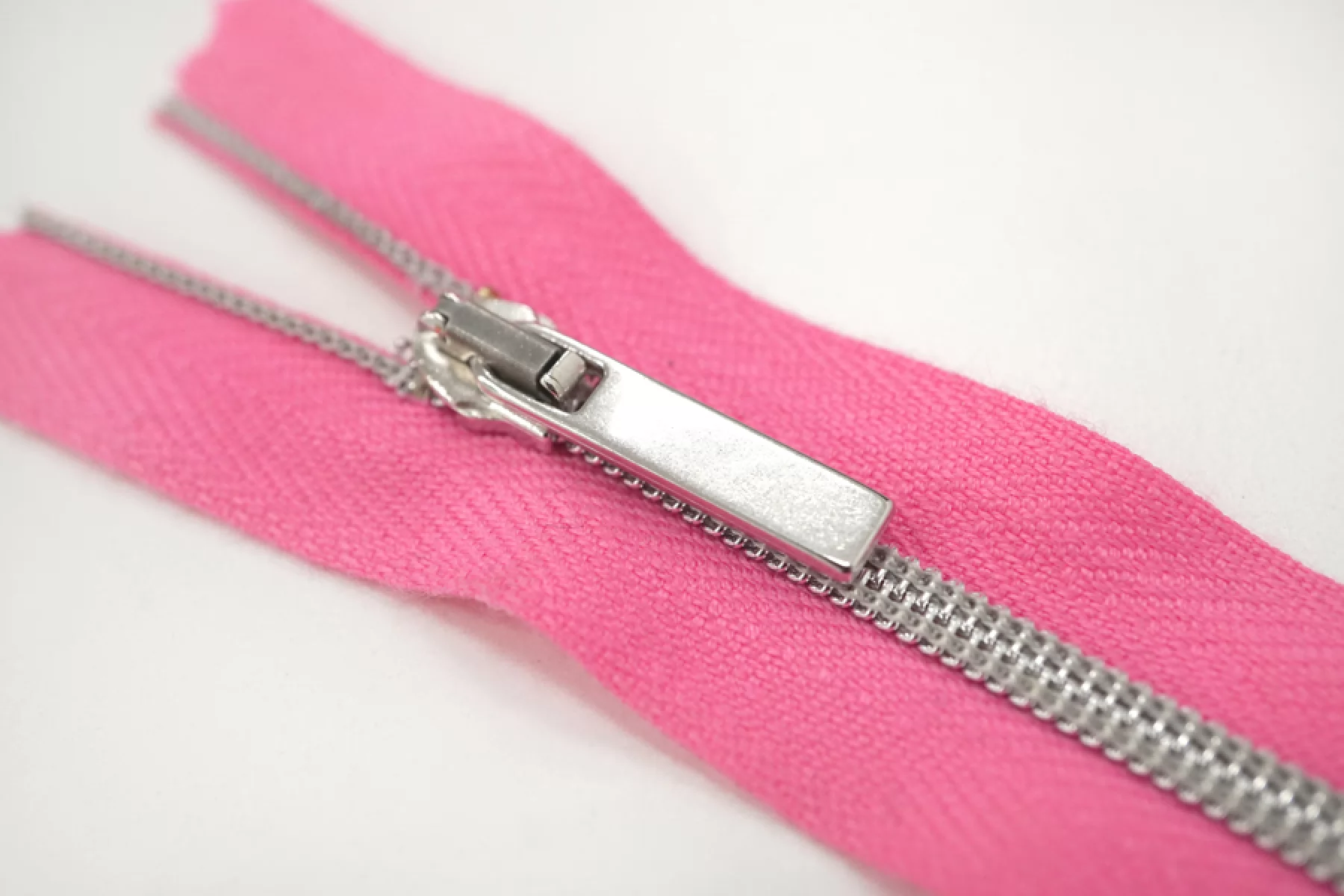 Молния от "Lampo" неразъемная, розовая, цвет зубцов серебристый, пластиковая спиральная, пуллер металлический серебристый. Длина 12 см.