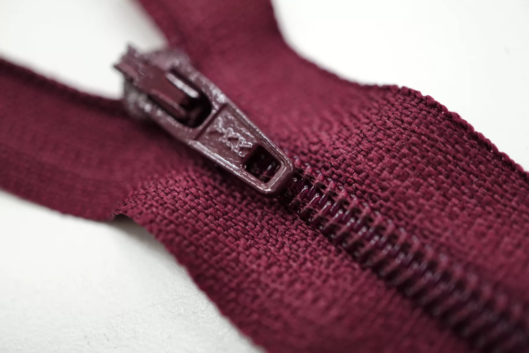 Молния спиральная неразъёмная, однозамковая, бордового цвета от YKK. Длина 45 см.