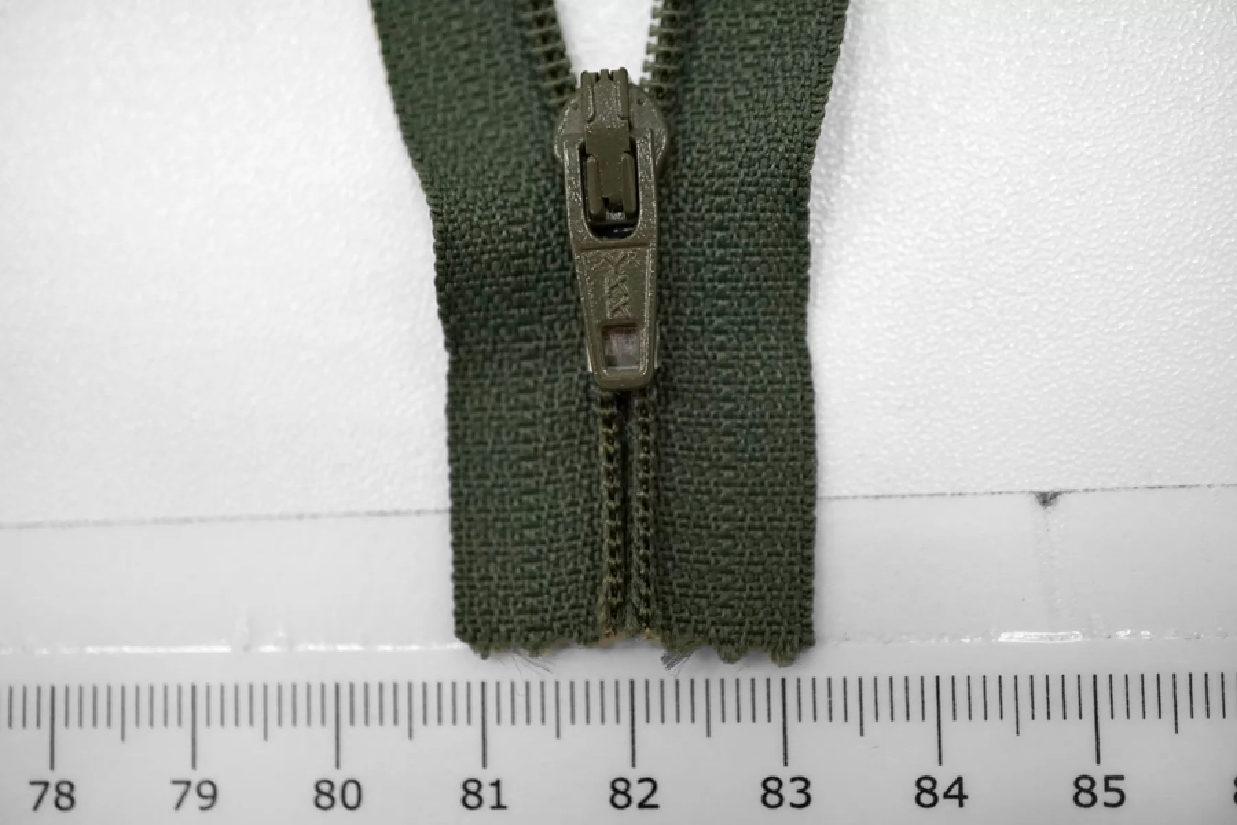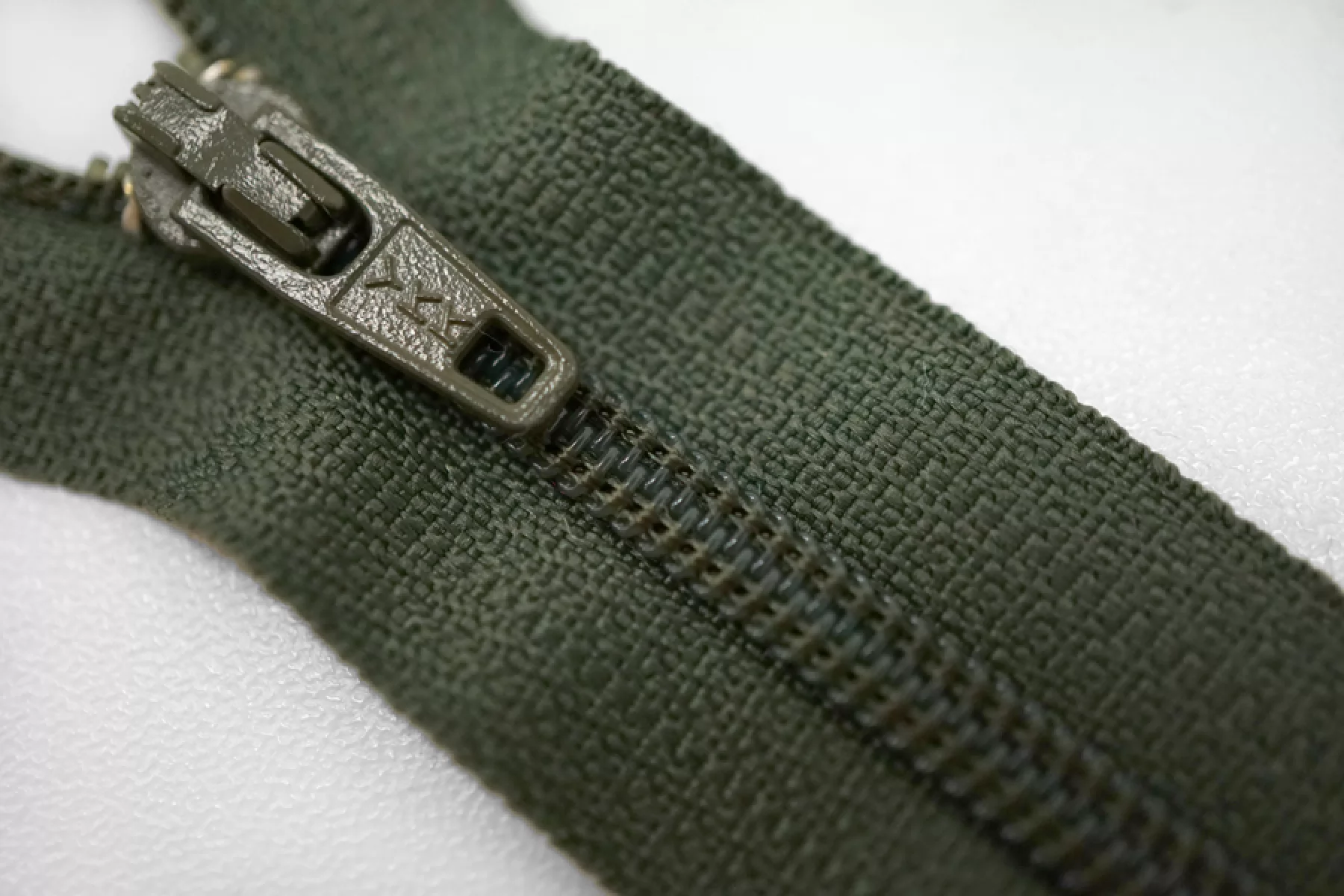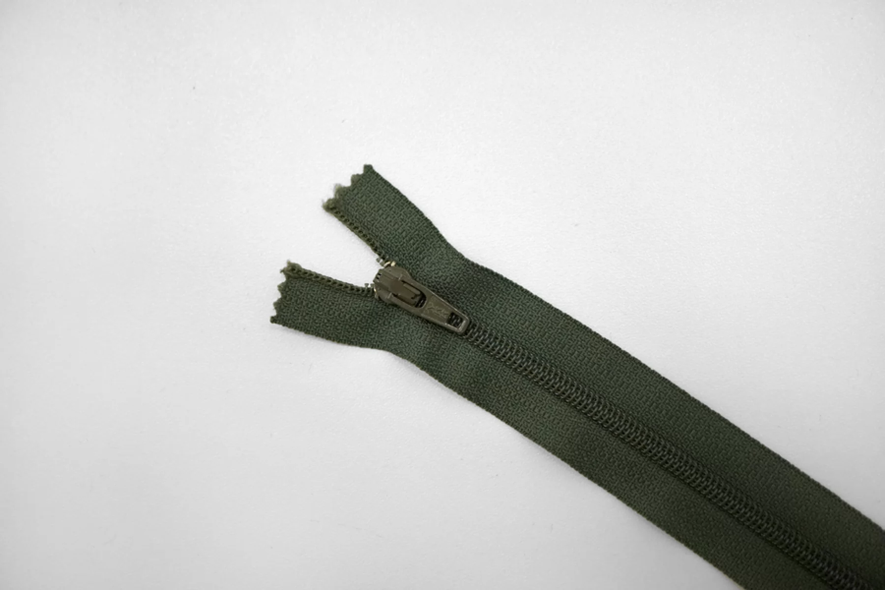 Молния спиральная неразъёмная, однозамковая, цвета хаки от YKK. Длина 40 см.