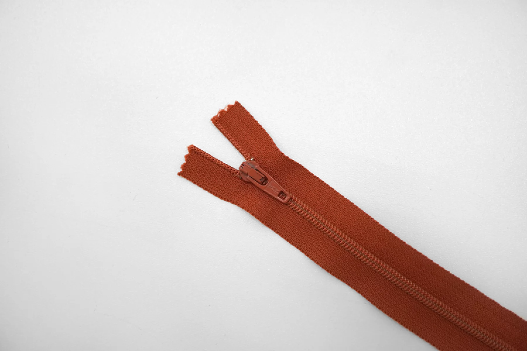 Молния спиральная неразъёмная, однозамковая, кирпичного цвета от YKK. Длина 35 см.