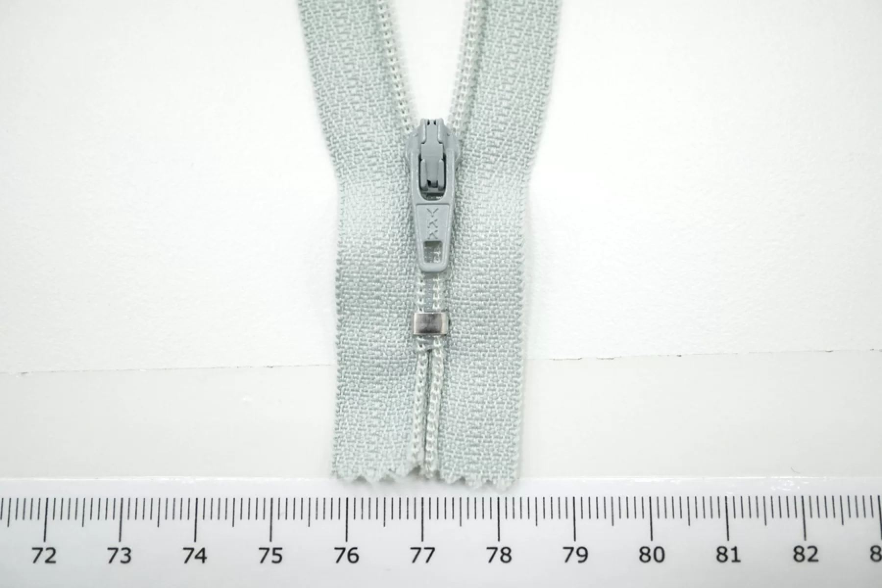 Молния спиральная неразъёмная, однозамковая, приглушенно-голубого цвета от YKK. Длина 30 см.