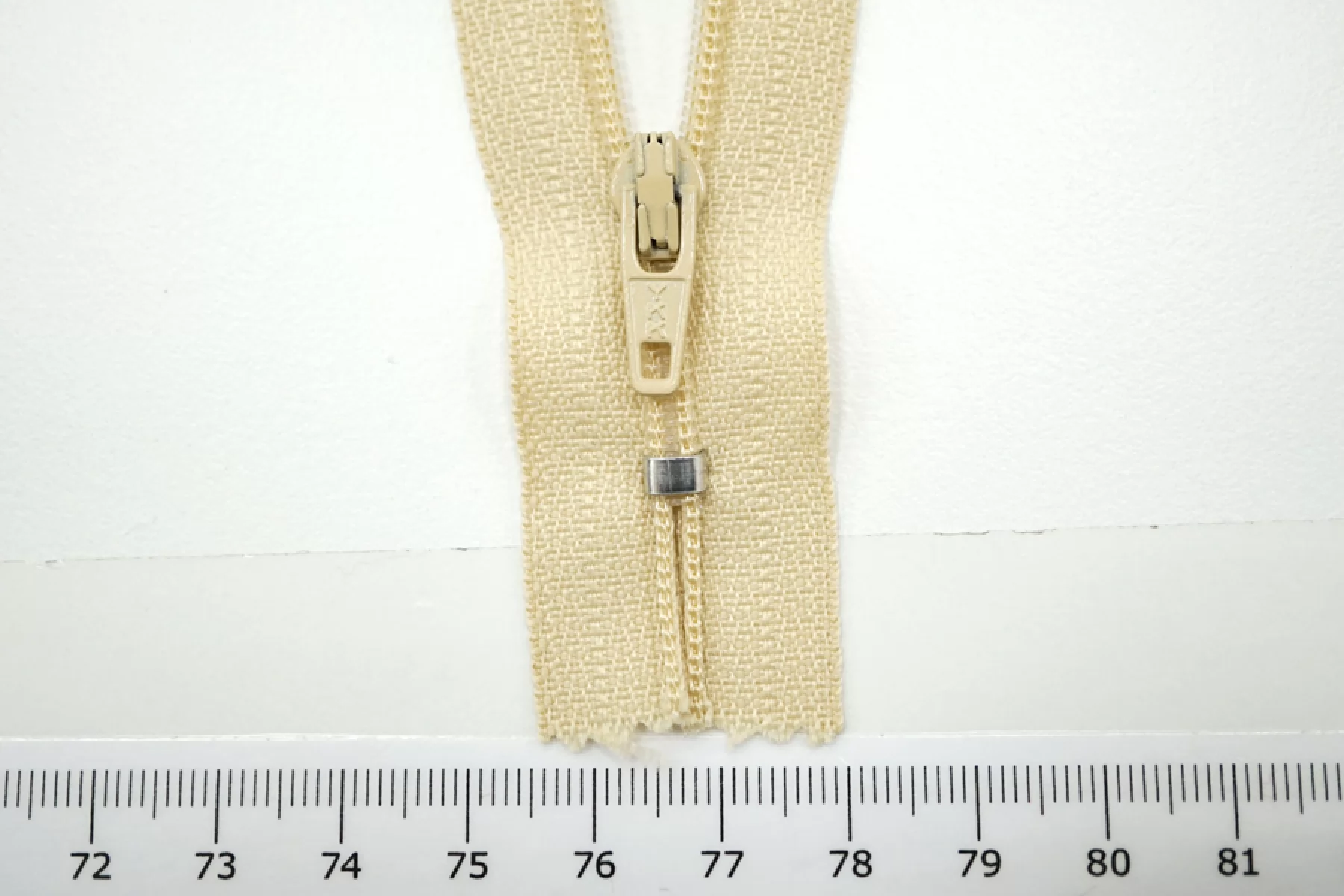 Молния спиральная неразъёмная, однозамковая, пыльно-желтого цвета от YKK. Длина 39 см.