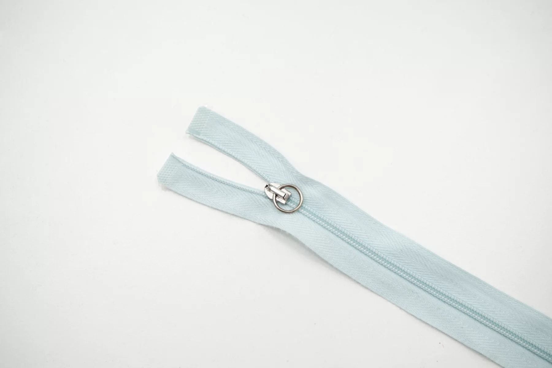 Молния спиральная разъёмная, однозамковая, светло-голубого цвета от YKK. Длина 26 см.