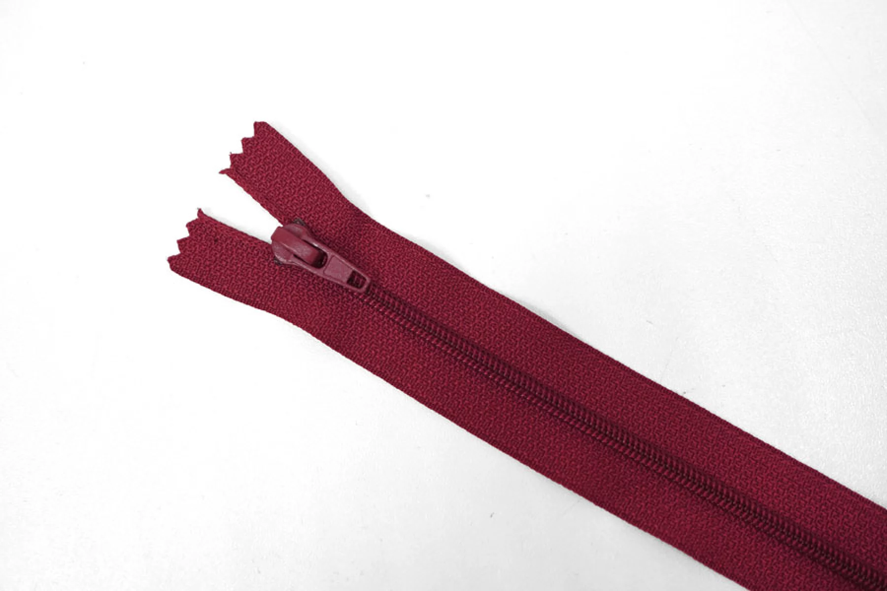 Молния спиральная неразъёмная, однозамковая, вишневого цвета . Длина 18 см.