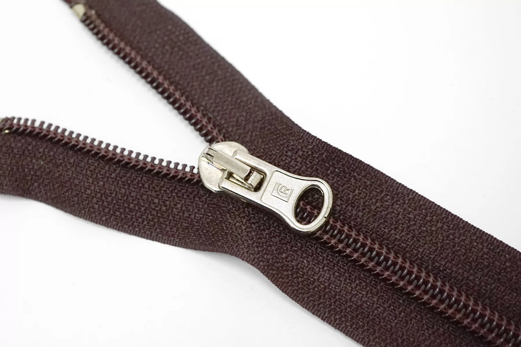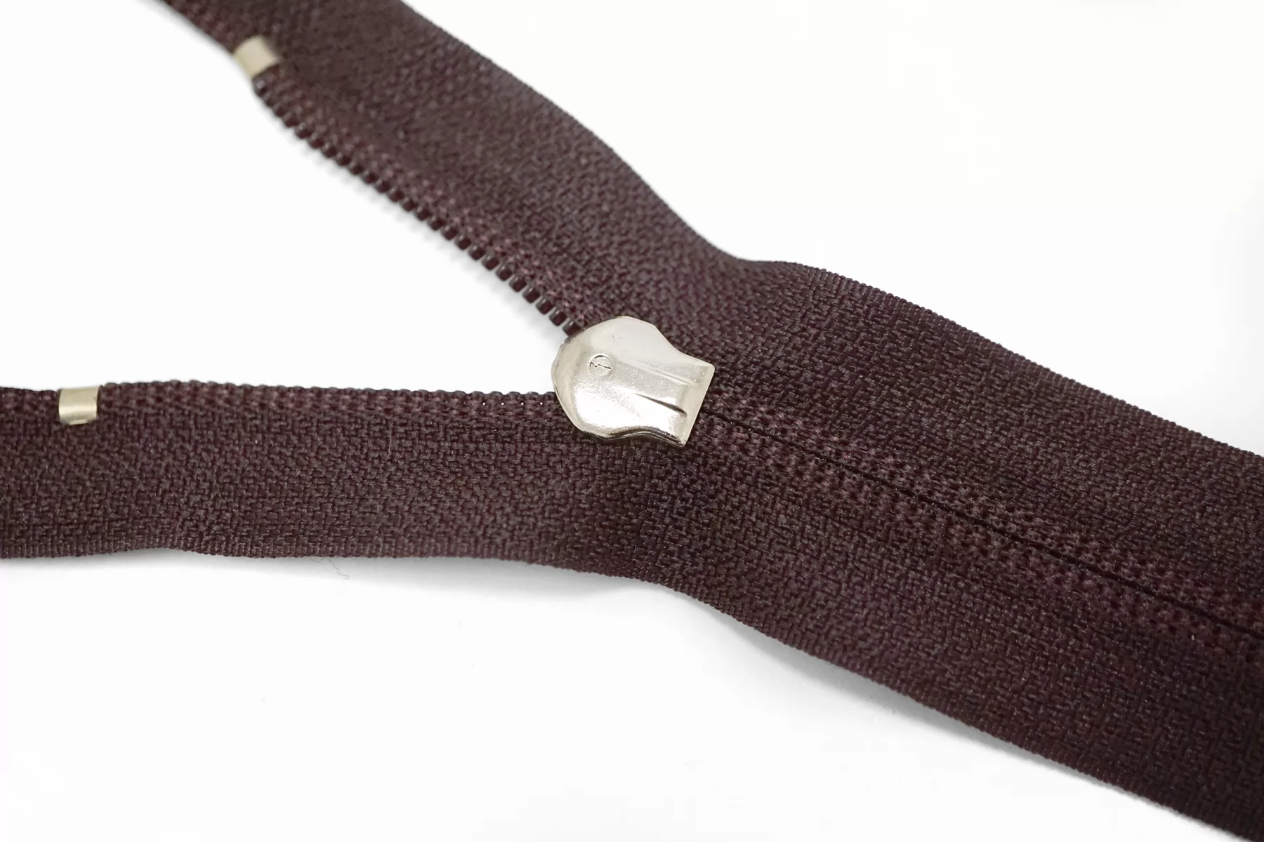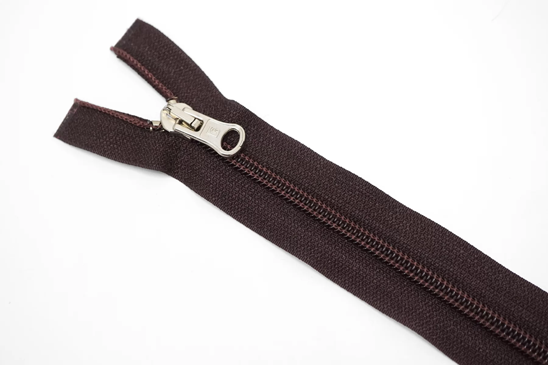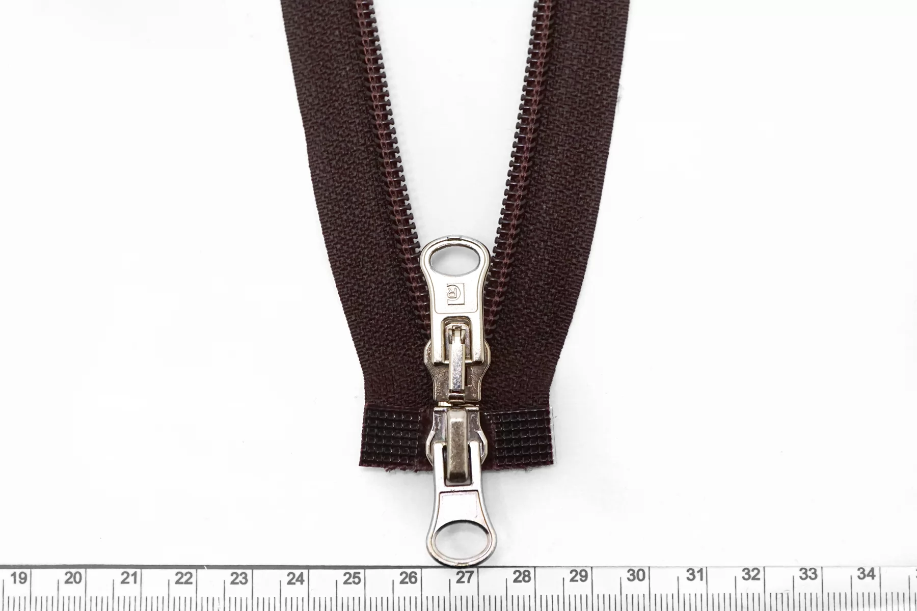 Молния спиральная неразъёмная, двухзамковая, оттенок спелой черешни, пуллеры в цвете серебристый никель. Длина 70 см.