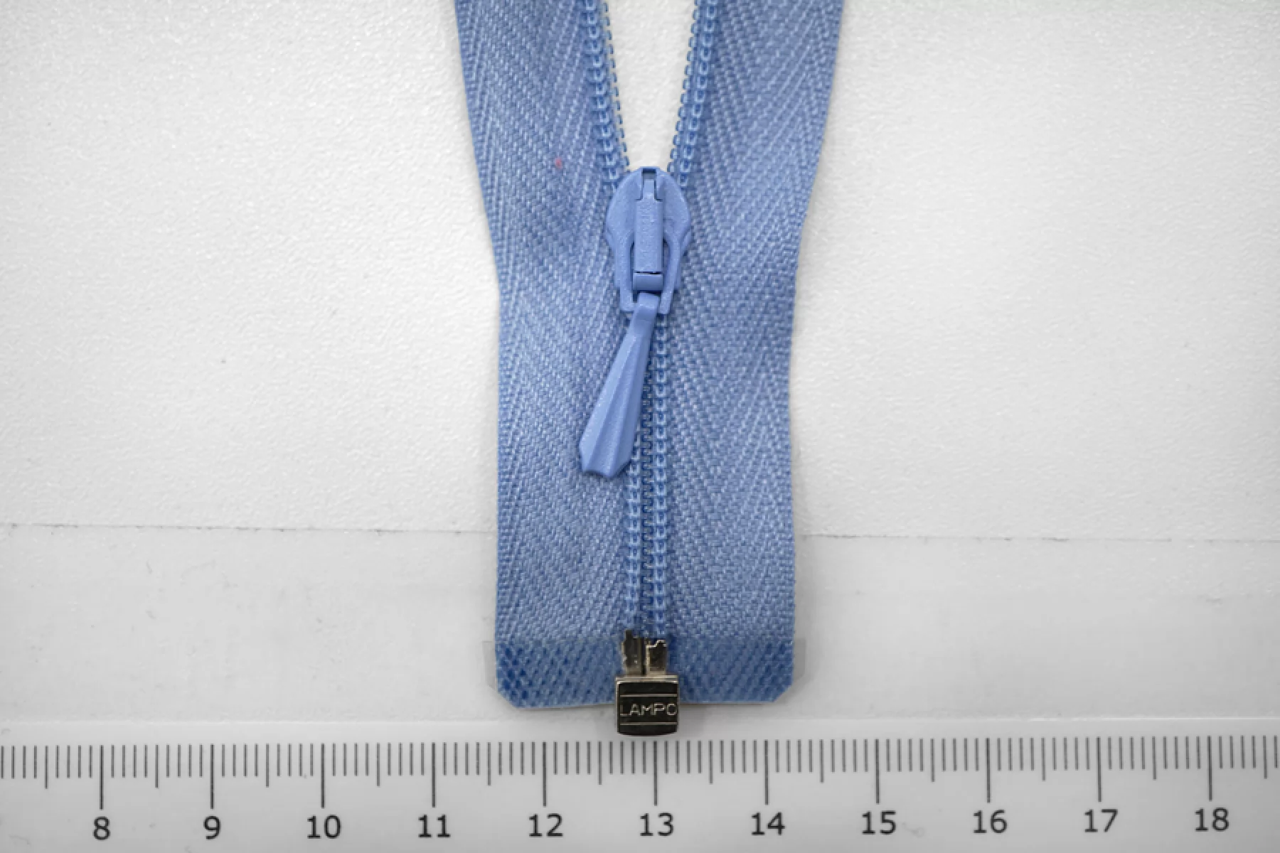 Молния спиральная разъёмная, однозамковая, голубого цвета от Lampo. Длина 53 см.